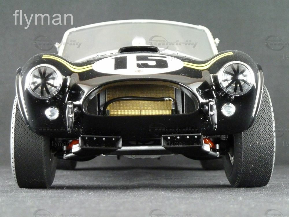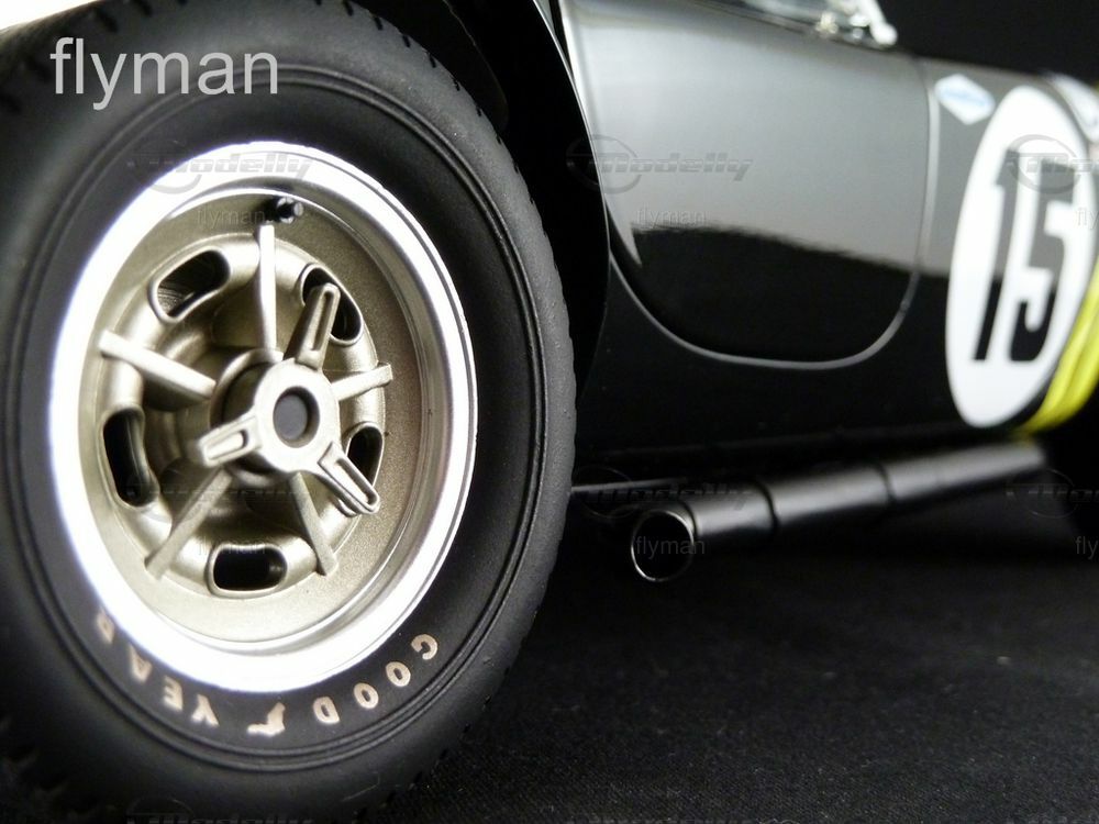 Special attention should be given to the paint job and decoration of the model. The model car is finished in a glossy black color and bears the distinctive number 15 on the doors and hood. The yellow accent stripes along the fenders and the meticulously replicated sponsor and manufacturer logos of Goodyear and Purolator add an authentic racing look to the model. This model, found in the collection of Modelly member "flyman," also showcases the authentic spoked wheels with Goodyear tires, further enhancing its accuracy.