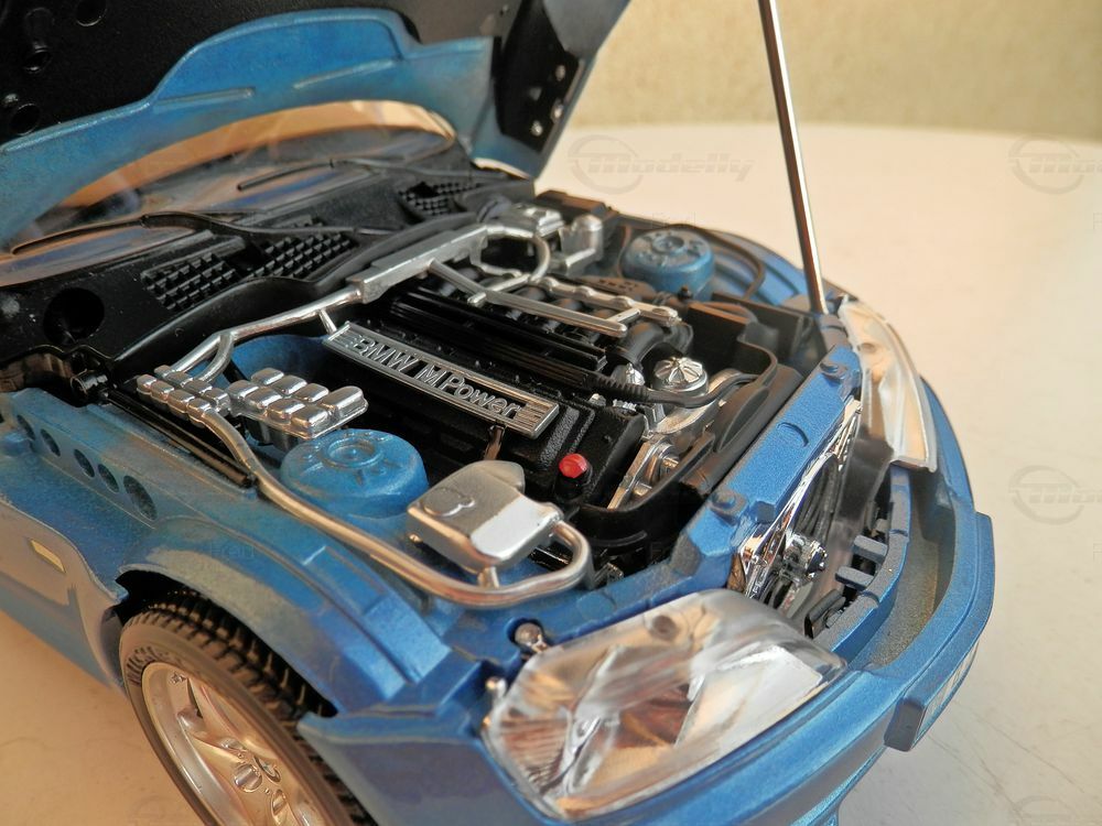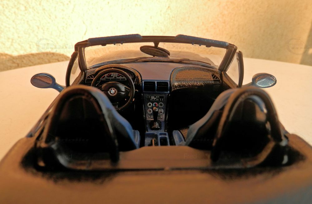 The Bburago model of the BMW Z3 M Roadster is not just a technical marvel but also an aesthetic masterpiece, appealing especially to model car collectors. The model's rims adhere to the design of the Z3 M series, emphasizing its sporty character. Noteworthy is the dual exhaust system, highlighting the Roadster's sporty approach. The interior of the model is also intricately detailed, showcasing seats, a dashboard, and controls faithful to the original. Various special badges and emblems, such as the M logo, are accurately reproduced as well.