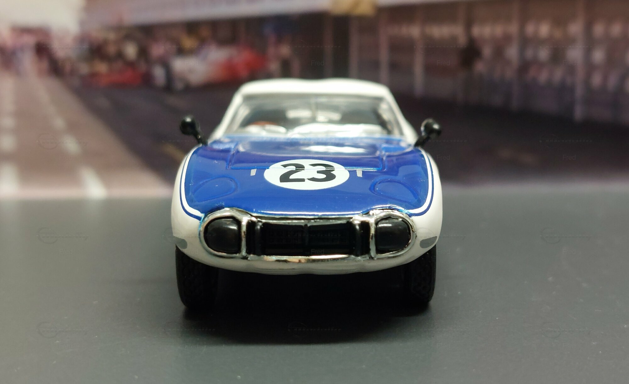 The 1/43 scale model of the Toyota 2000 GT by Del Prado, featured in the collection of Modelly member "Fred," impresses not only with its high level of detail but also the precise representation of the original vehicle. Made of diecast material, the model reflects the essential design features of the original, such as the aerodynamic shape, detailed reproduction of headlights and wheels, as well as the accurate painting and sponsor decals. The model's wheels bear the Goodyear logo, just like the original, and the number and placement of decals are precisely positioned. The interior of the model even showcases the steering wheel and seating in high detail. Collectors and enthusiasts of model cars will appreciate the accurate and high-quality design of this 1/43 scale model, making it a valuable piece for any collection.
