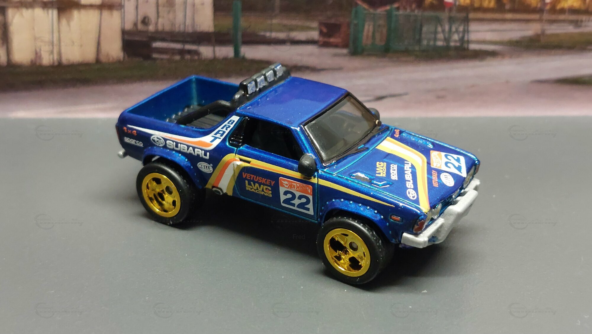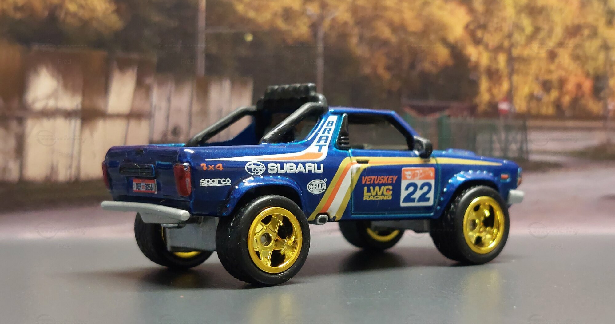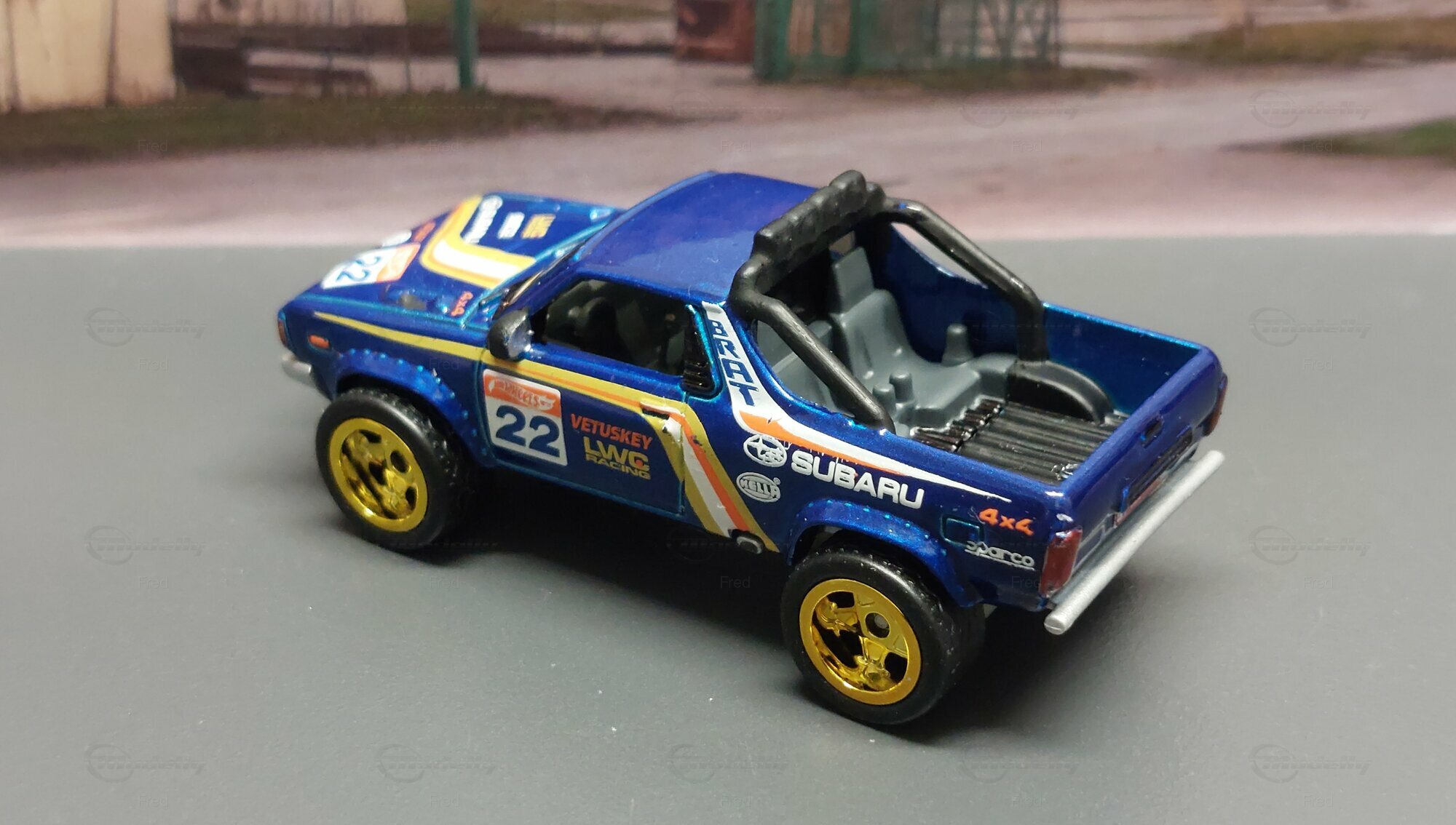 The depicted wheels may not be conclusively identified at first glance, but they seamlessly complement the sporty overall look of this model vehicle. Additionally, noticeable rally lights on the front bumper emphasize the adventurous character of the Subaru BRAT. Fred, a member on Modelly, has added this model to his collection, serving as a splendid example of the attention to detail that Hot Wheels puts into their models.