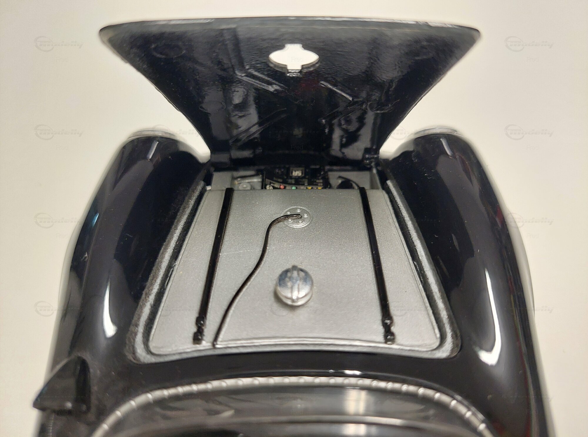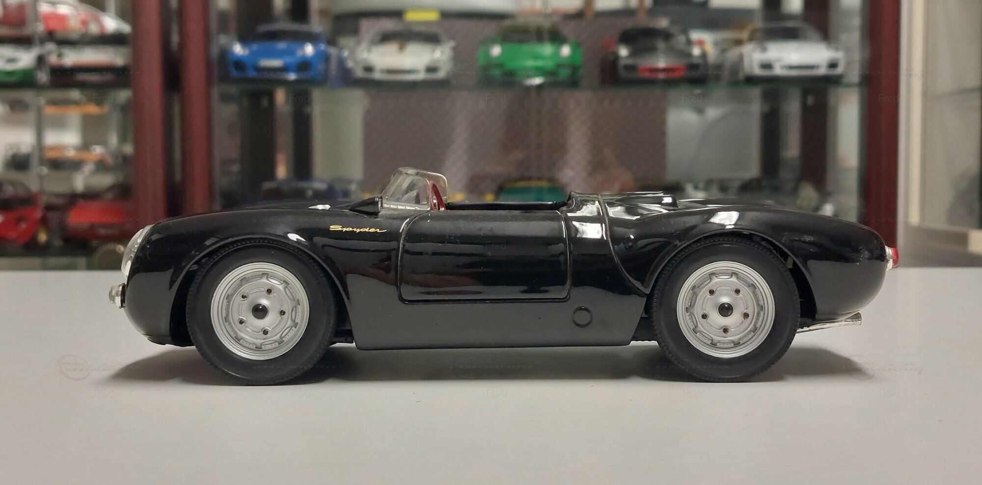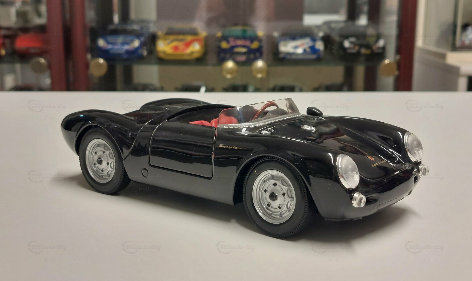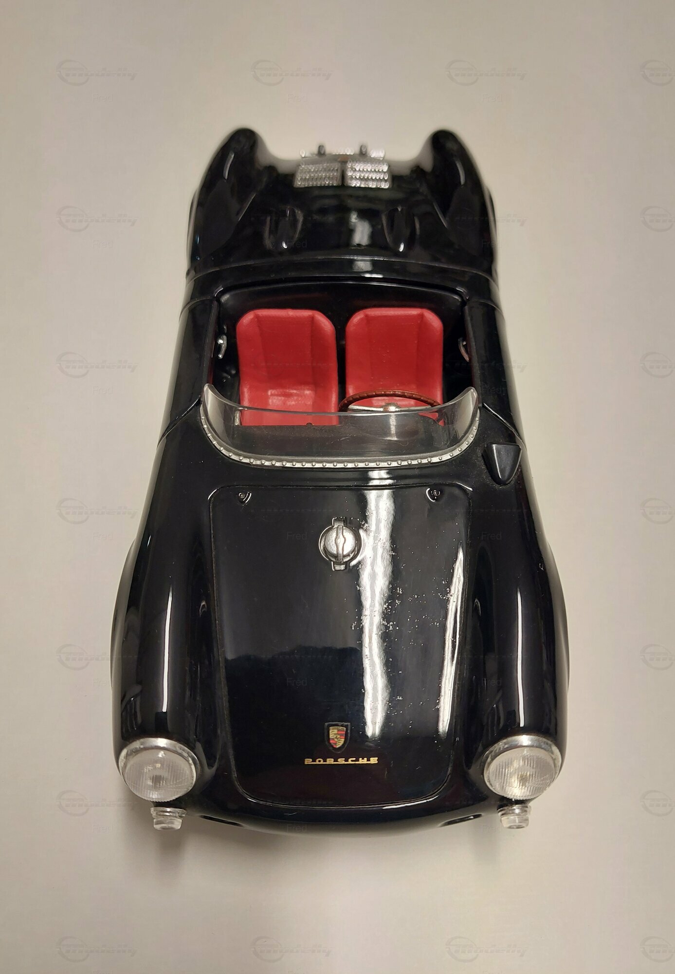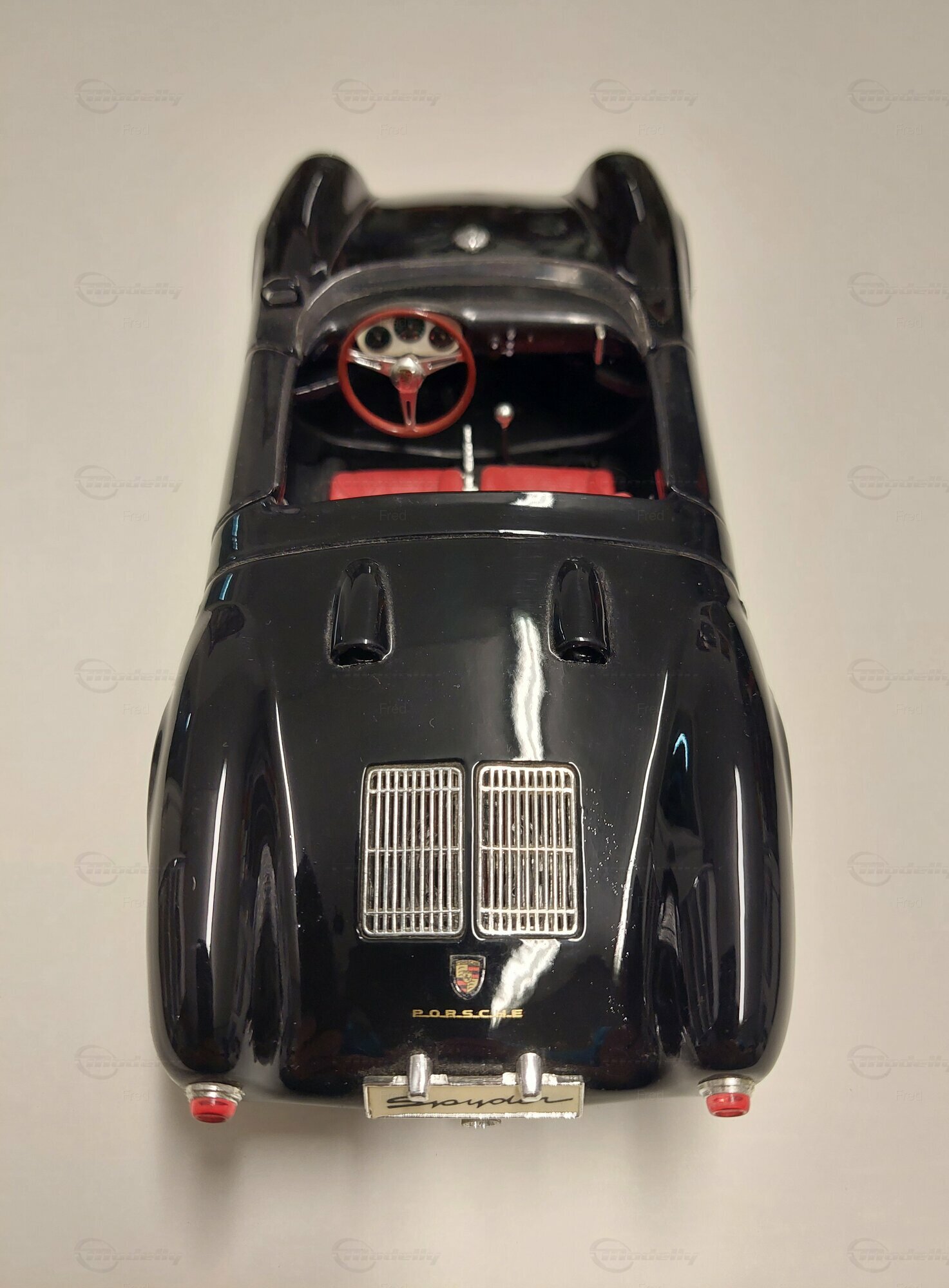 The 1/18 scale model of the Porsche 550 A is a collector's item that can excite any model car enthusiast. It is a detailed replica crafted by Maisto. This model is made from die-cast material, giving it a robust structure and a realistic weight. The intricately designed features of the miniature car include the detailed headlights, the iconic steering wheel, and the stylish fan rotor blades. The interior of the model is equipped with a highly detailed dashboard and red upholstered seats, closely resembling the original. The black paint finish of the model accentuates its sleek and elegant lines, emphasizing the sporty nature of the car. Enthusiastic collectors can look forward to a model that not only impresses visually but also stands out for its precise detailing and high-quality craftsmanship. The owner of this model on Modelly is the collector "Fred", who houses the piece in his collection.