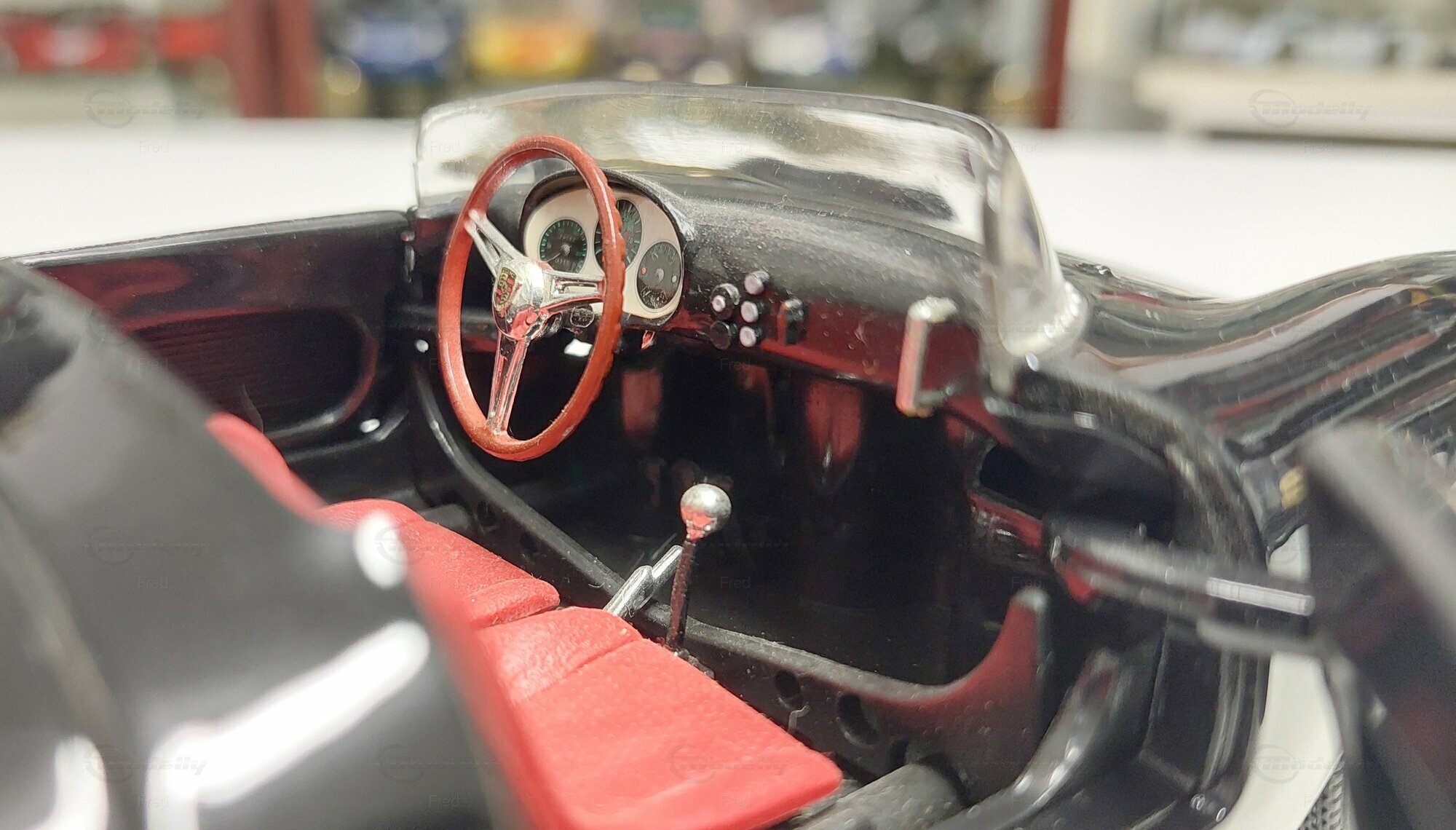 The Porsche 550 A was equipped with a 1.5-liter four-cylinder boxer engine, giving it a power output of 135 horsepower. Due to its lightweight construction and performance-oriented design, it achieved a top speed of around 220 km/h (137 mph). The aluminum chassis and carefully crafted aerodynamics contributed to its outstanding performance in races. In addition to the powerful engine, special attention was also given to the brakes and suspension of the Porsche 550 A to make it as agile as possible on the racing tracks. Not a single detail was left to chance, emphasizing the high standards and engineering prowess behind this car. It's no wonder that the Porsche 550 A became one of the most renowned and revered sports cars of its generation.