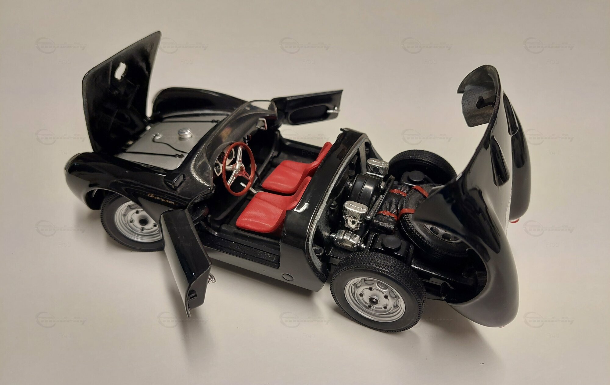 The Porsche 550 A, often known as the "Spyder", is a legendary sports car that was first introduced in 1956. The Porsche 550 A was an evolution of the previous 550 model and was specifically designed for racing. With a lightweight body and a sturdy chassis, it quickly gained a reputation for its excellent performance and cornering abilities. The car was powered by a 1.5-liter four-cylinder boxer engine producing 135 horsepower. A notable feature was its lightweight aluminum chassis, reducing the overall weight of the vehicle to just 550 kilograms (1,213 pounds). The Porsche 550 A was designed by engineers Dr. Ernst Fuhrmann and Wilhelm Hild, who played a significant role in optimizing the engine and chassis. An important aspect of the Porsche 550 A was its participation in various racing events. Famous races like the 24 Hours of Le Mans and the Targa Florio often saw the Porsche 550 A on the podium. The success in these races greatly contributed to the car's legendary status.