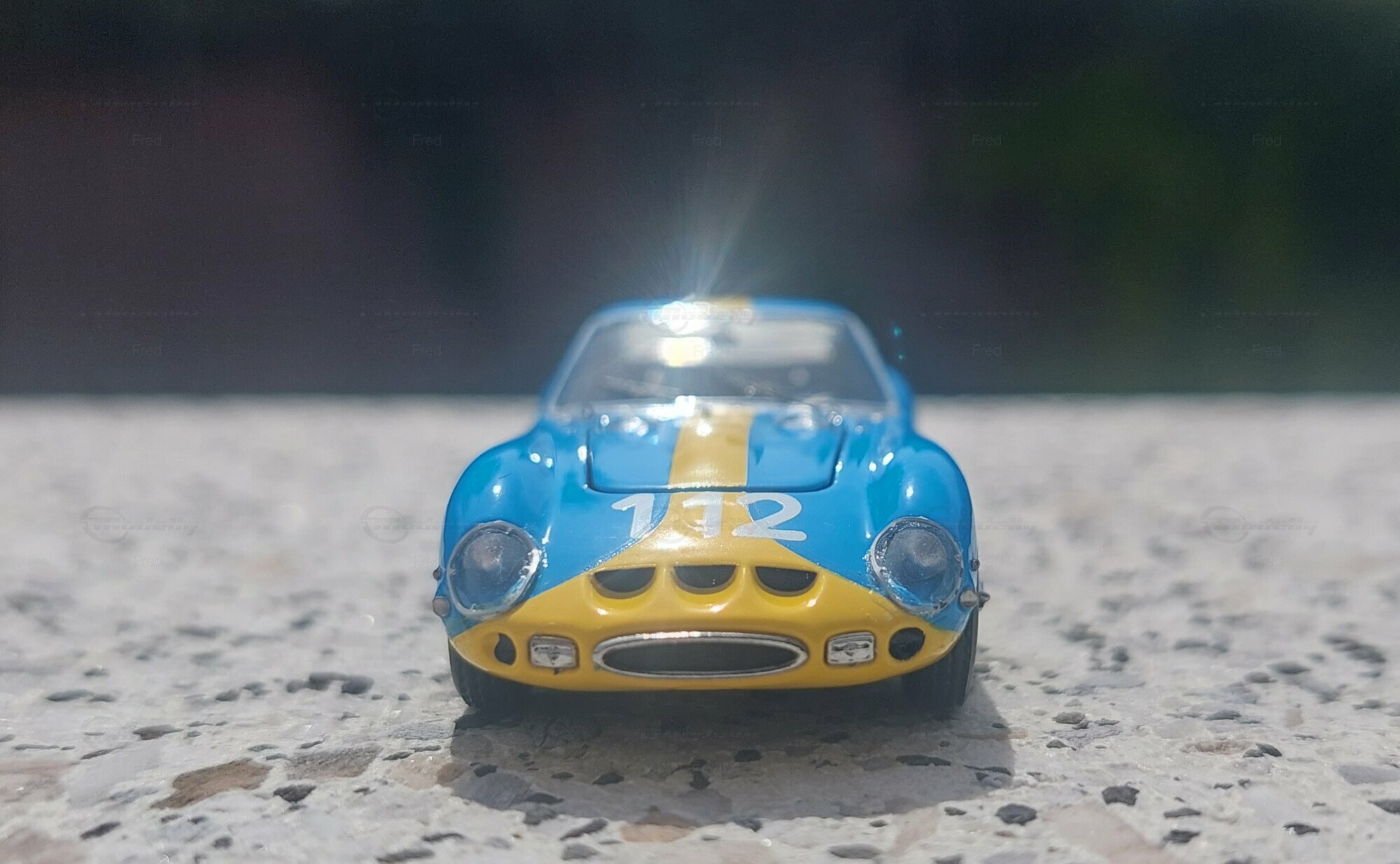 The 1/64 miniature by Peako is a true collector's item made of resin and produced in a limited edition – there are only 520 pieces worldwide. This underscores the rarity and value of this model. The combination of the blue and yellow colors and the distinctive number "112" make it truly special. The attention to detail in this miniature, from the precise sponsor decals to the detailed headlights and taillights, is simply remarkable. Fred's piece is a shining example of artistic miniature craftsmanship and a valuable addition to any collection.
