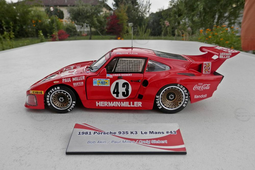 A scale model of the legendary Porsche 935 K3 now graces the collection of Modelly member Fred. This 1/18 scale model was crafted by TrueScale Miniatures and faithfully replicates the original. Made from high-quality die-cast material, the model showcases durability and meticulous detailing. The vibrant red paint, combined with sponsor logos from Herman Miller and Goodyear, as well as race number 43, faithfully reflect the original vehicle. The large wheels and precise replicas of the aerodynamic components at the rear of the car provide an accurate representation of the engineering prowess behind this vehicle.