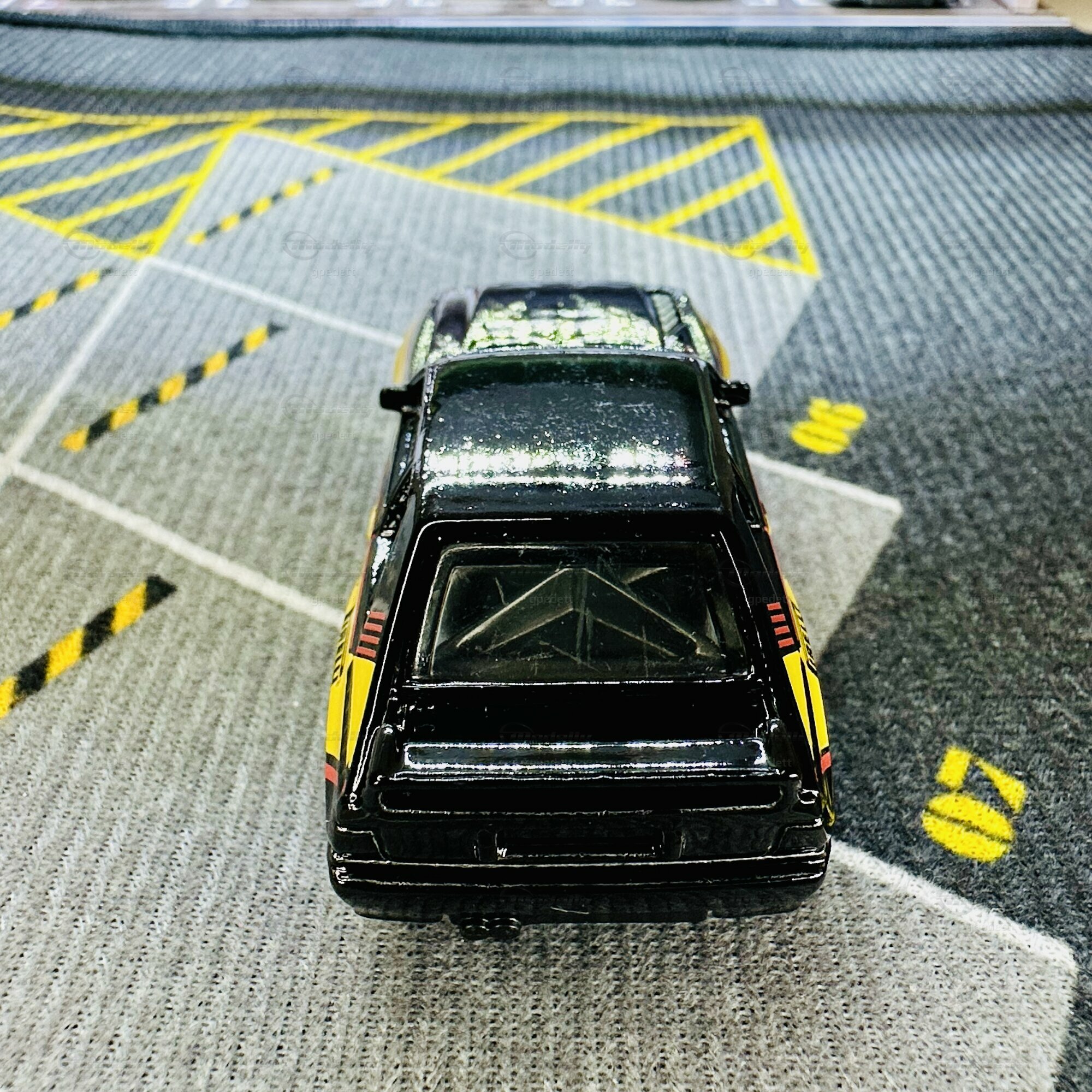 Color: Black Detailed headlamps and front grille, Yellow and Red racing stripes, "84" and various sponsor on sides
