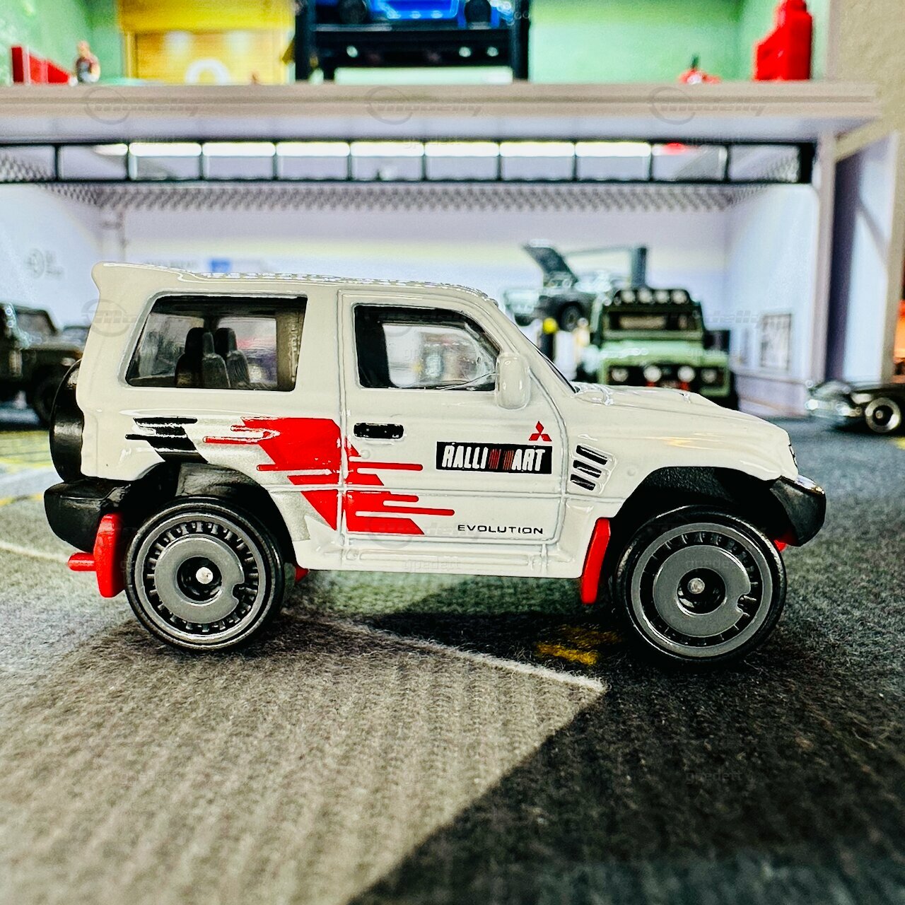 Color: White Detailed headlights, Ralliart racing livery, "EVOLUTION" on door