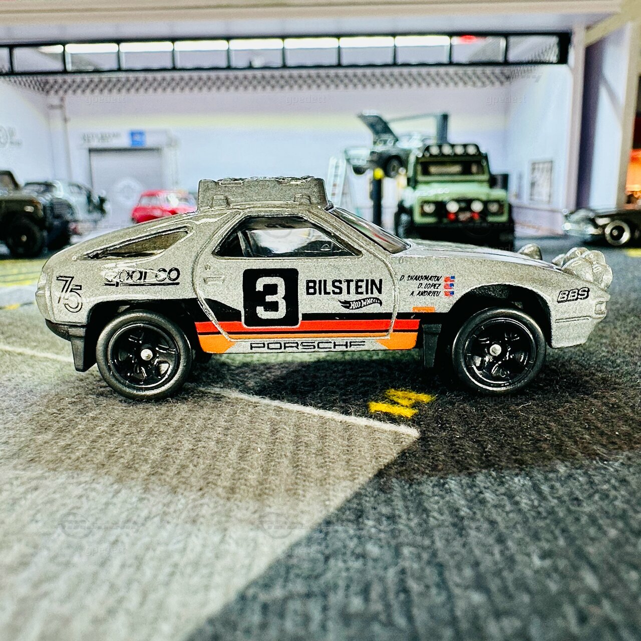 Color: Metalflake gray Inverted German flag deco, "D. SHAKHMATOV", "D. LOPEZ", "A. ANDREIU", Bilstein, Hot Wheels, Porsche, Porsche 75 logos on sides