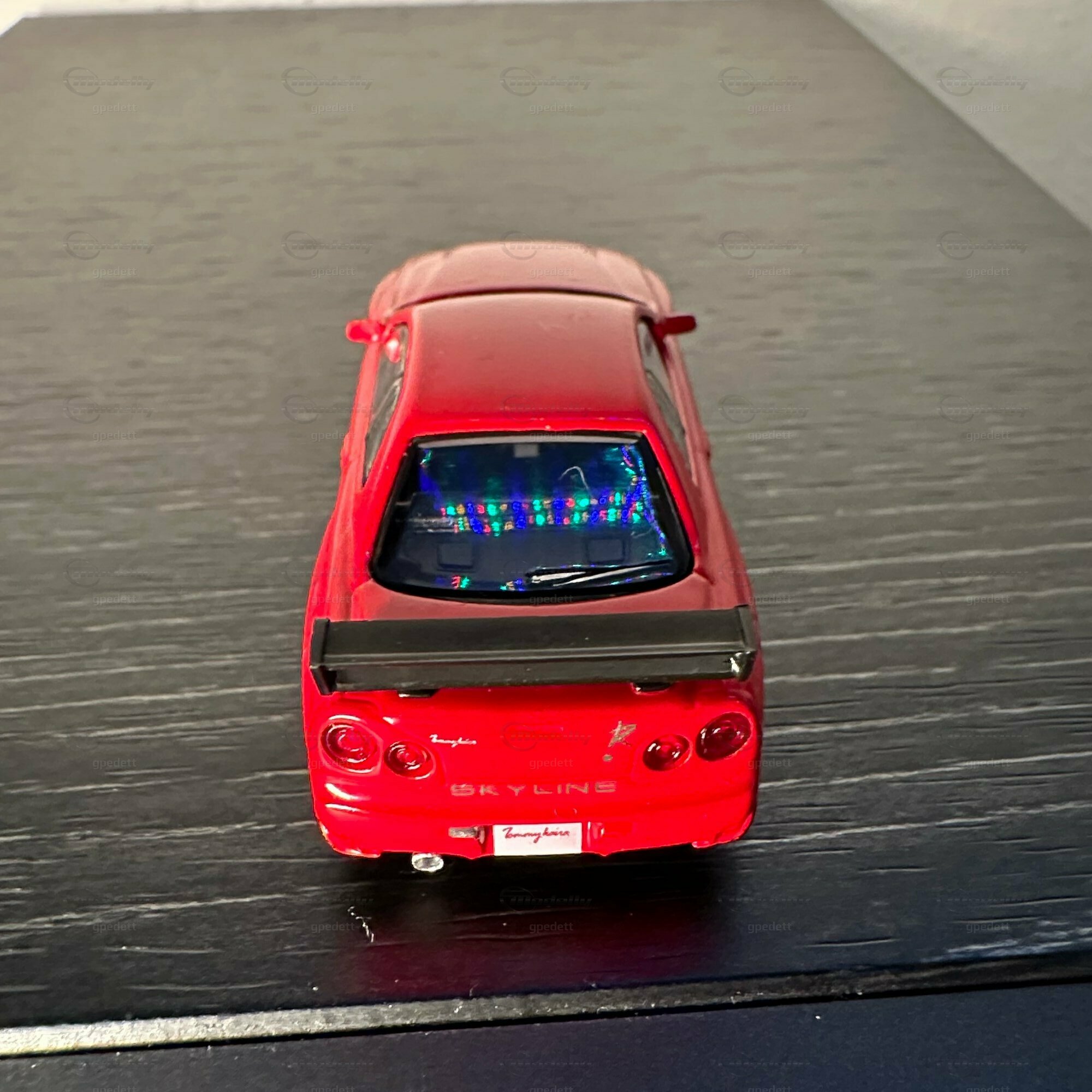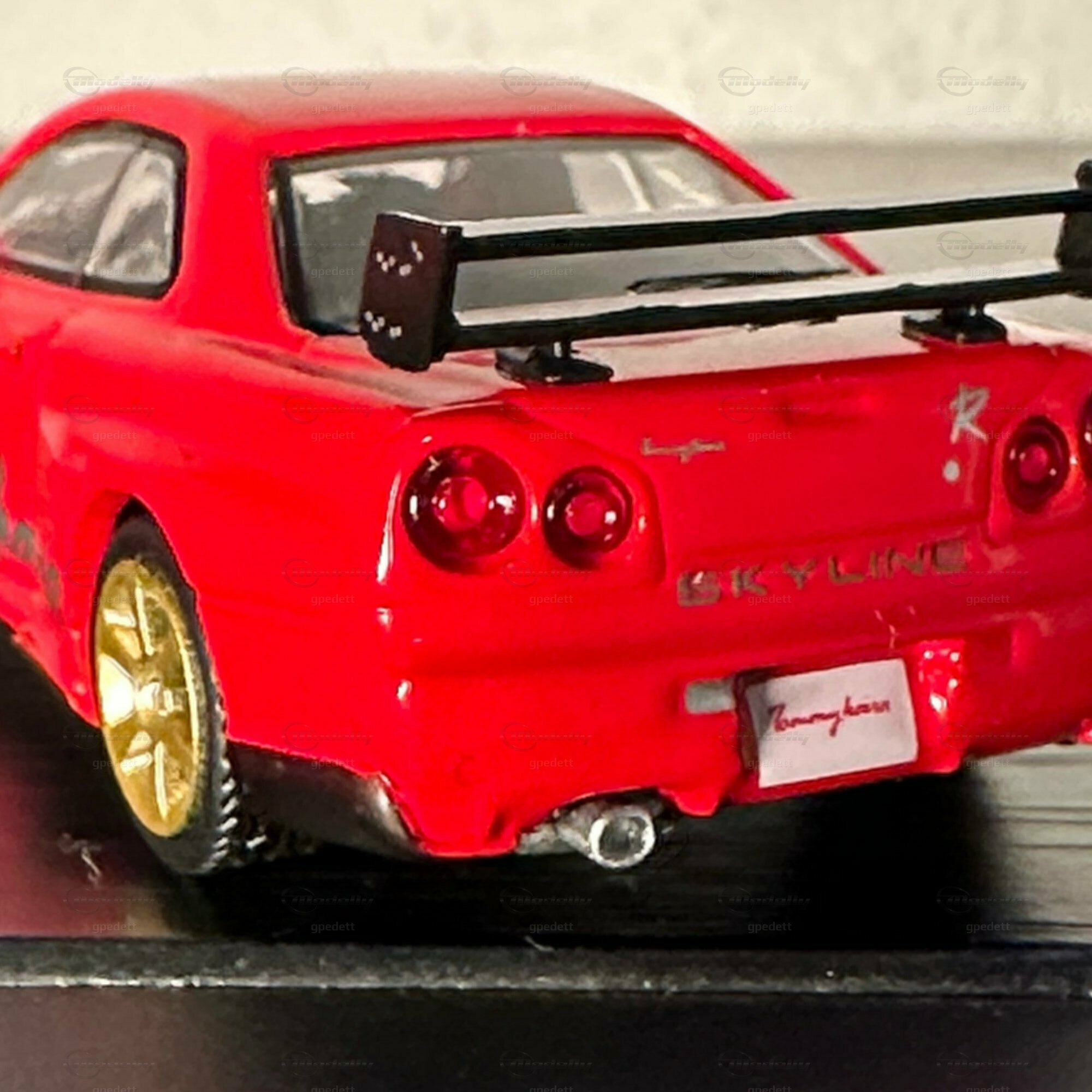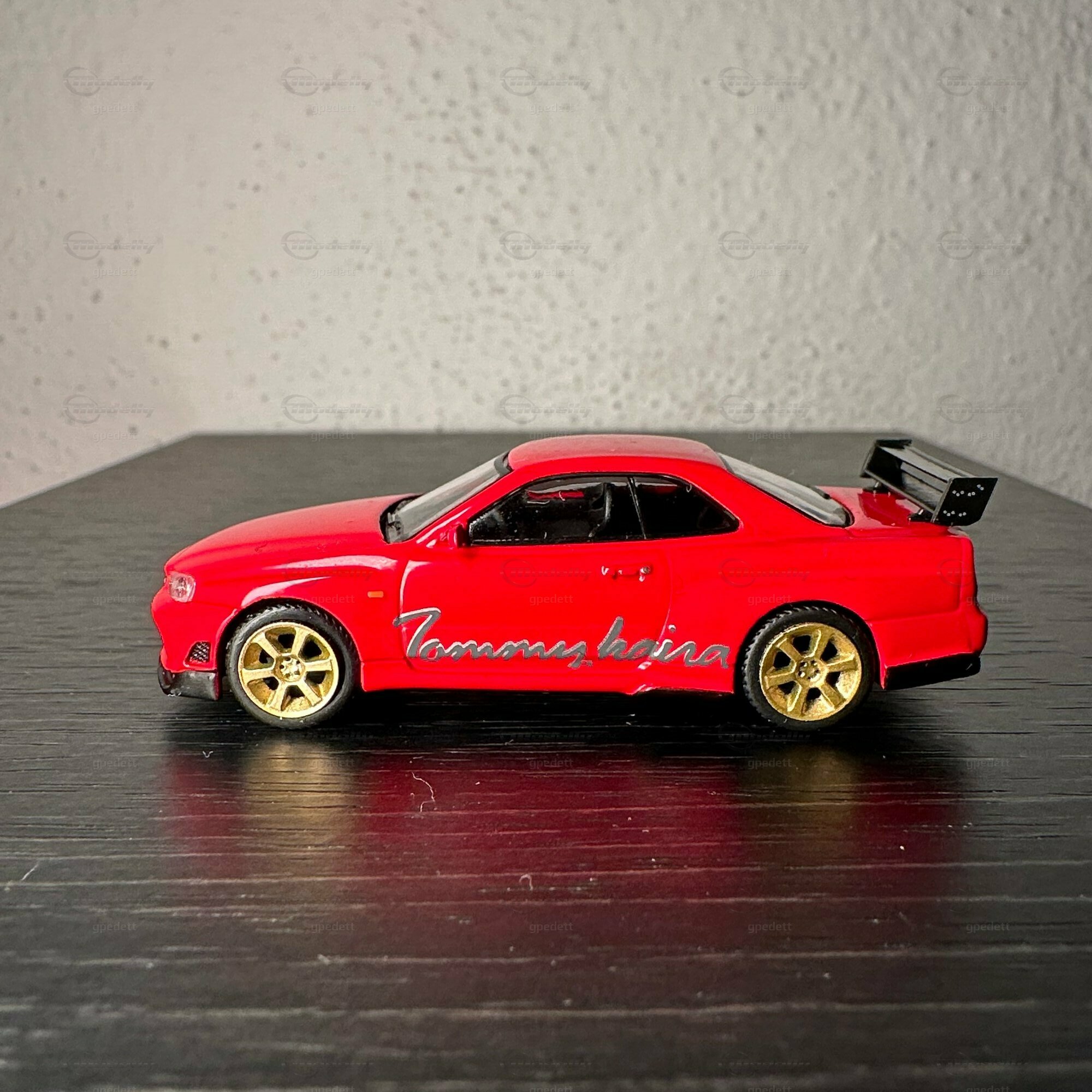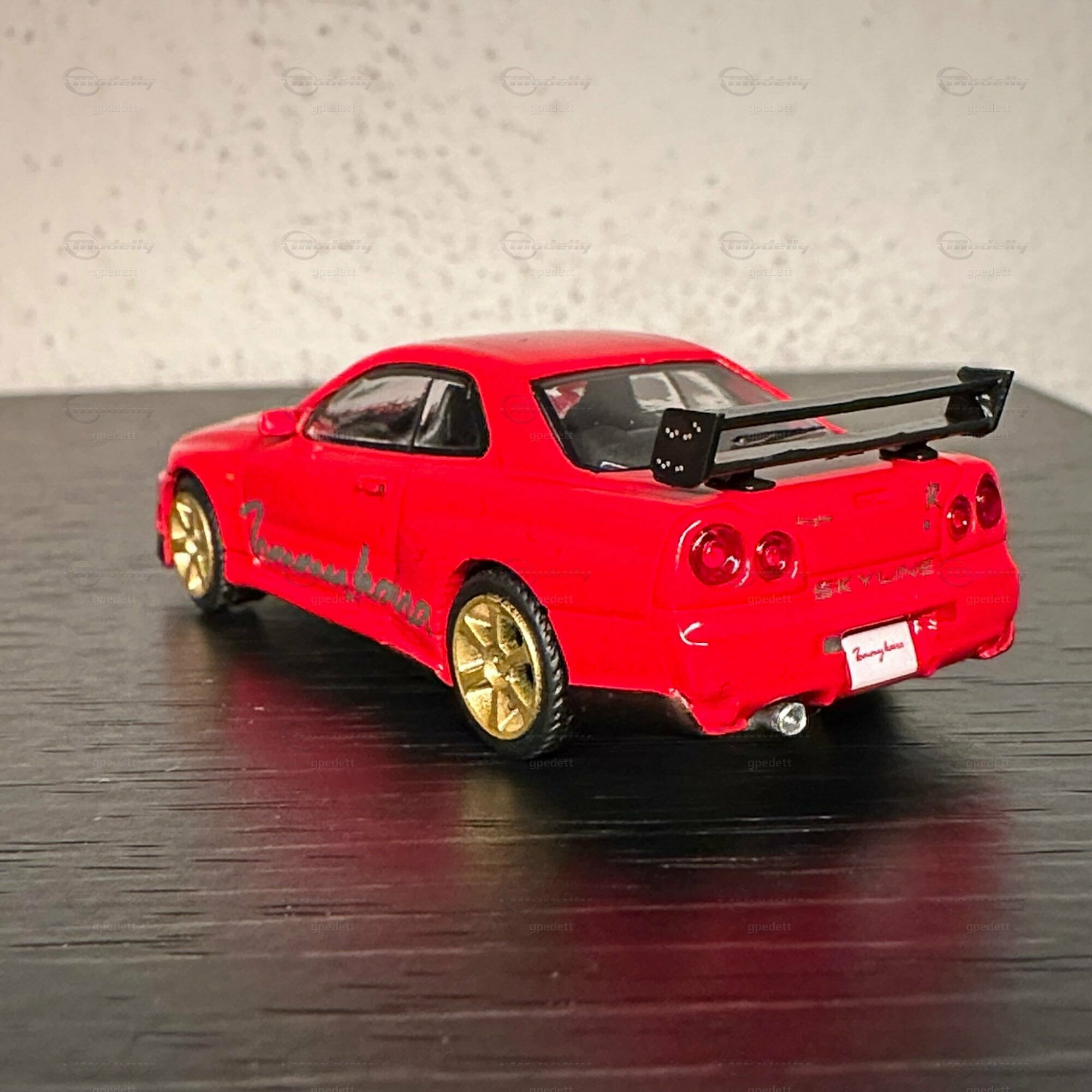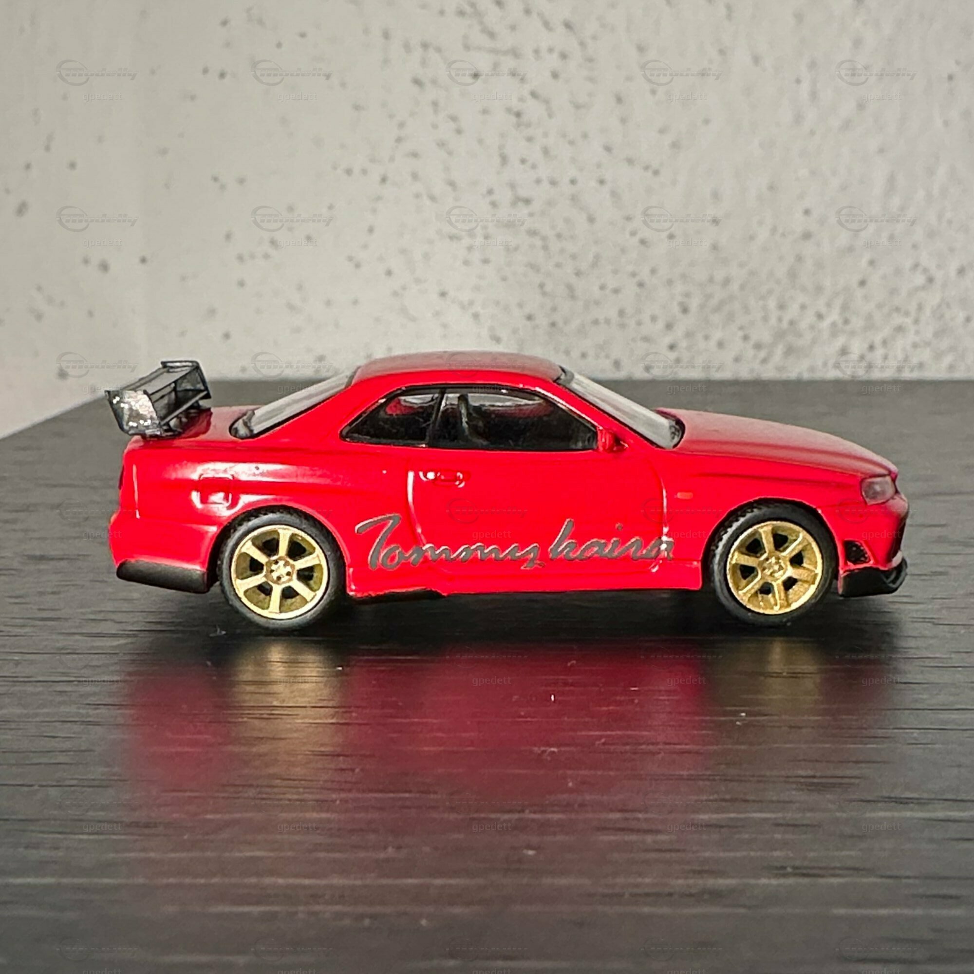"Check out this miniature masterpiece 🏎️ - the iconic Nissan Skyline GT-R (R34) in full glory! Renowned for its starring role in 'Fast and Furious' 🎬, this Japanese automotive legend packs a punch with its ATTESA E-TS all-wheel drive and the twin-turbo RB26DETT inline-6 engine 🌪️. Featuring golden wheels, a massive rear wing, and a fiery red paint job with 'Tommy kaira' scripting, a nod to the famed Japanese tuner that amps up Nissan's like no other 🇯🇵🔧. Dream big, drive small! #NissanGTR #MiniaturePerfection #Tommykaira #JDM"