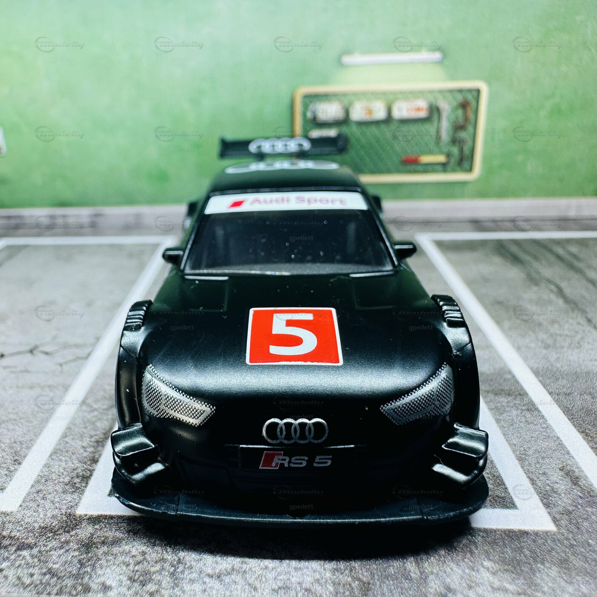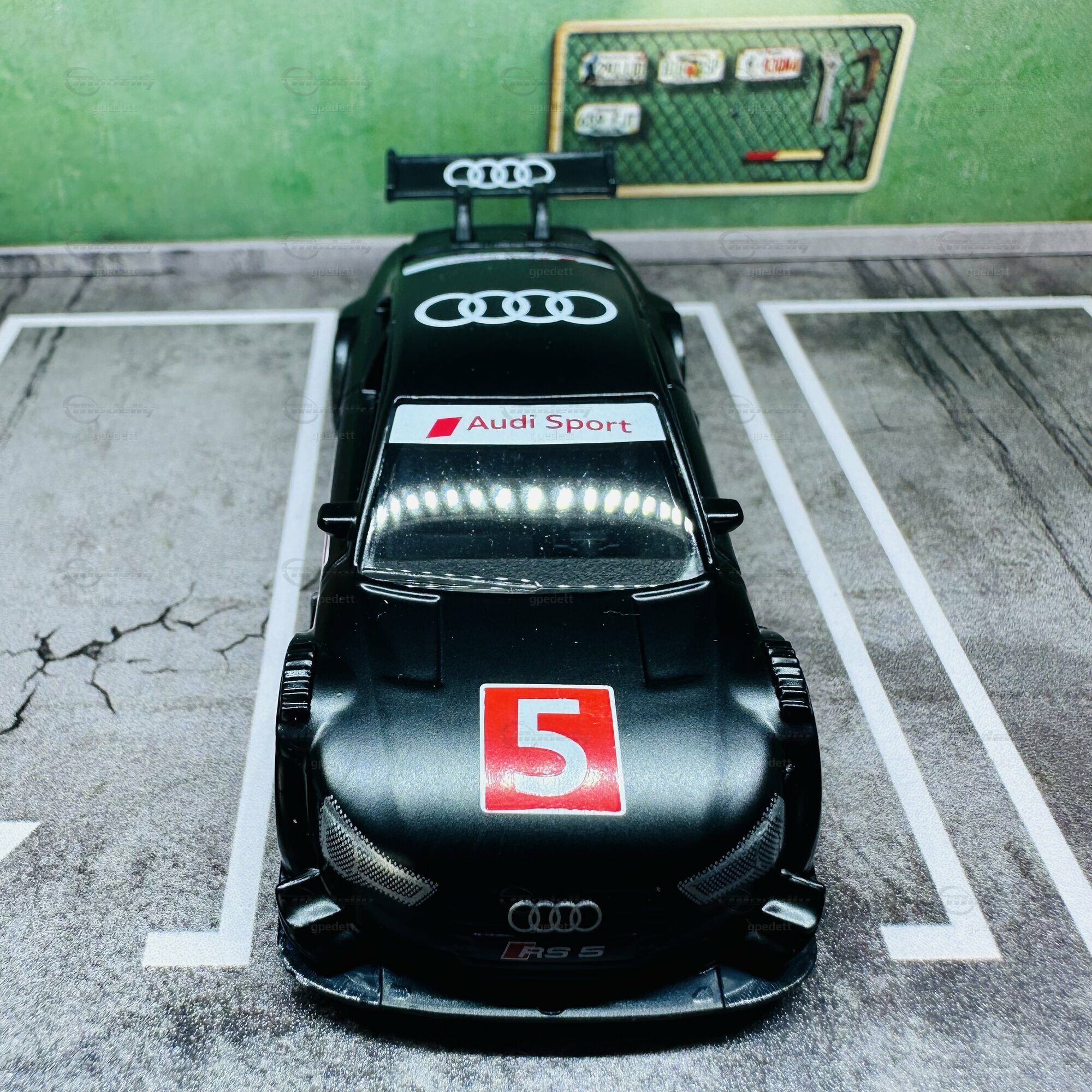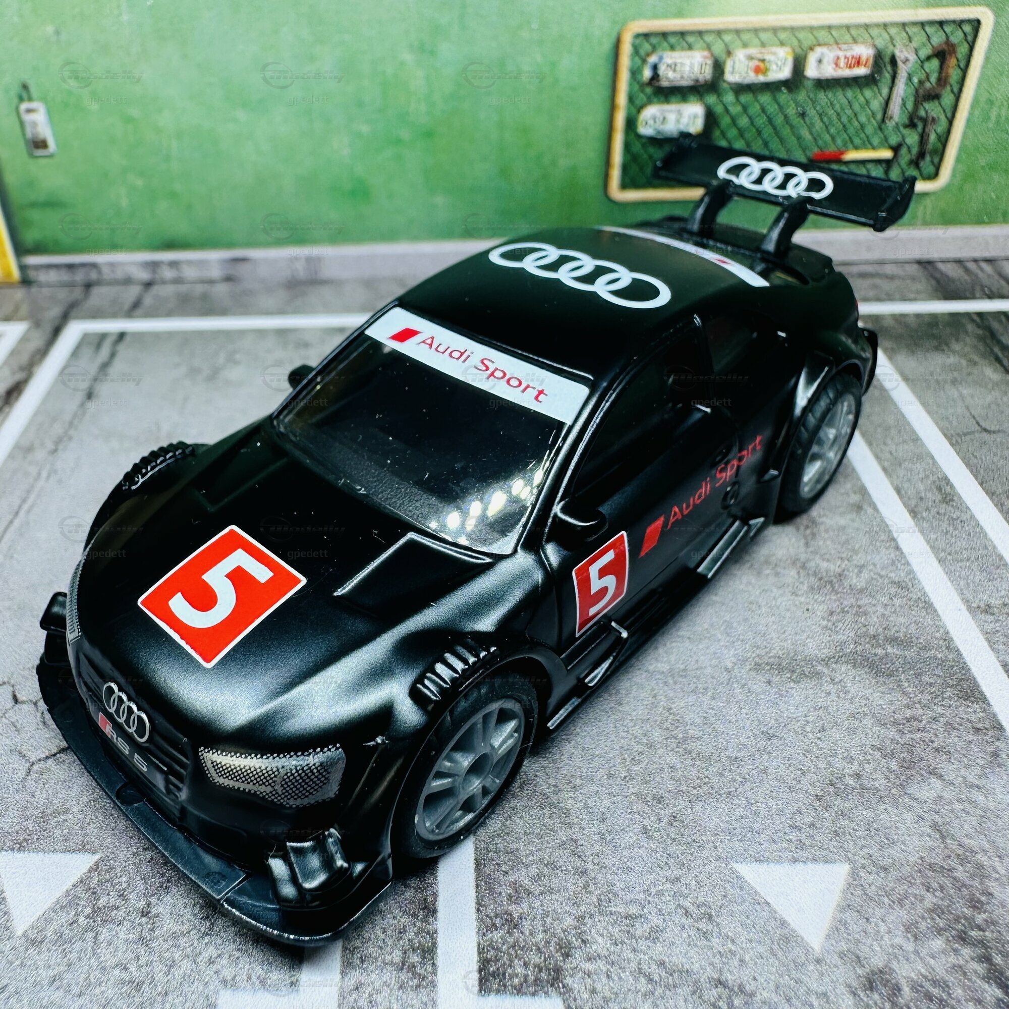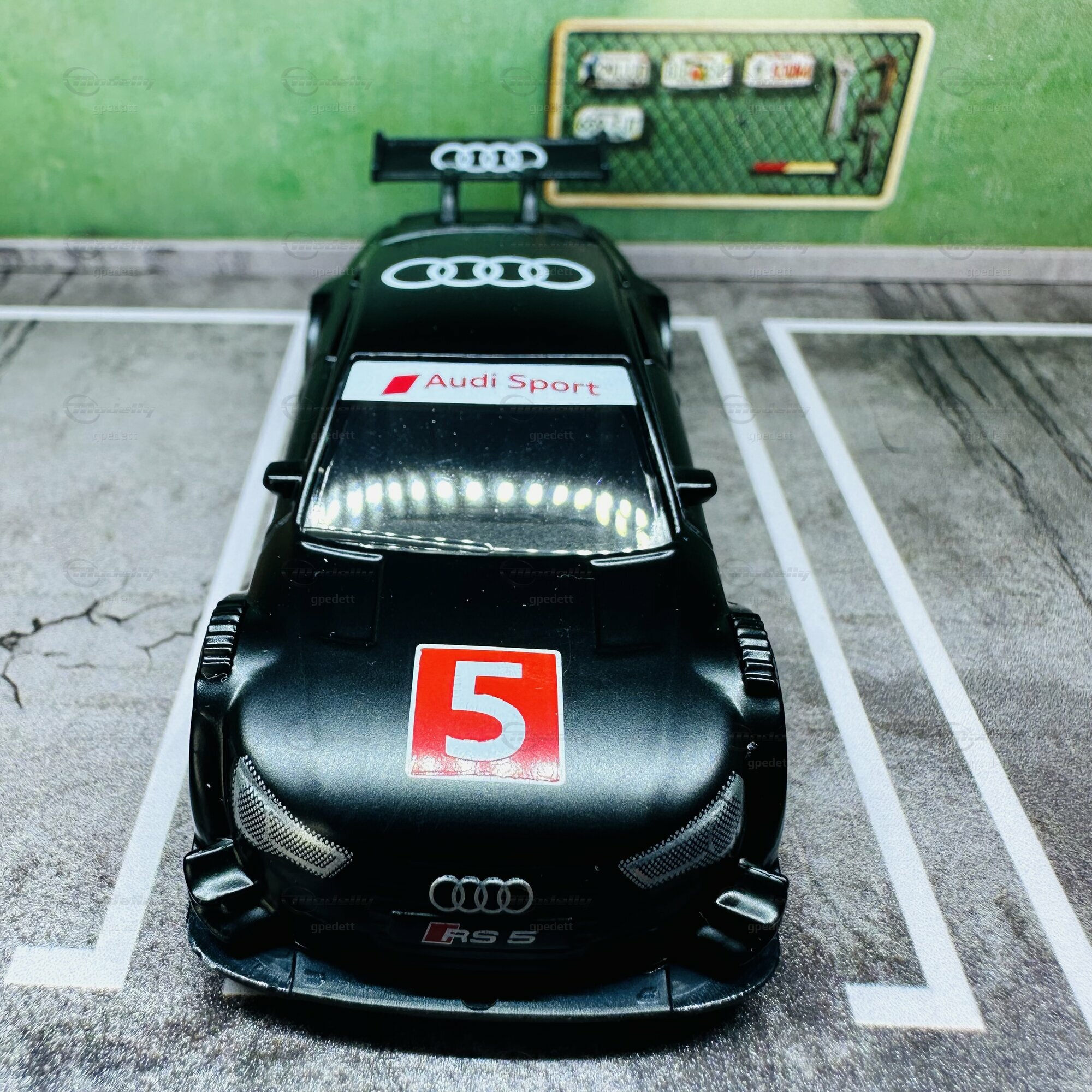 Color: Black with number 5 and Audi Sport decals on sides and front and back windscreen
