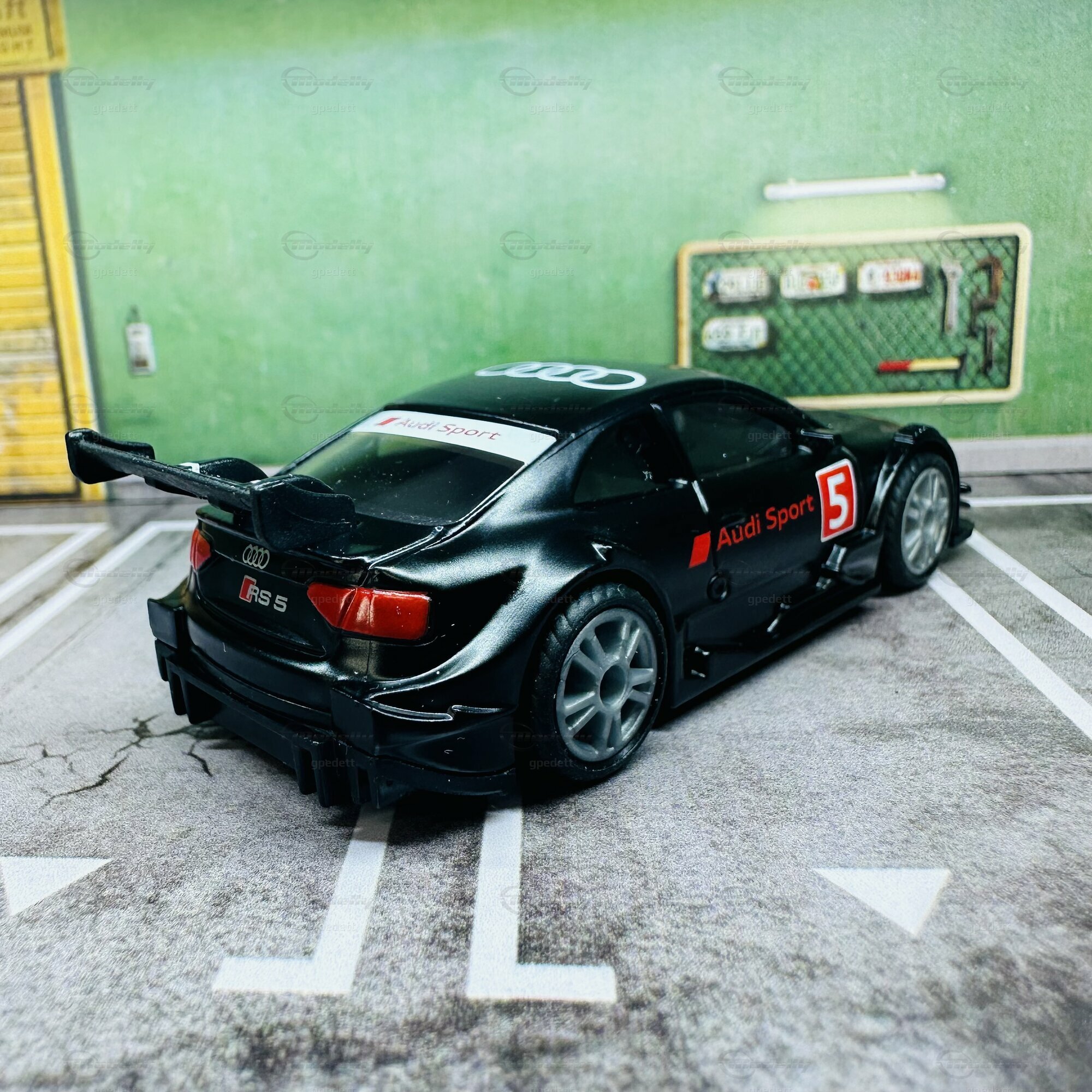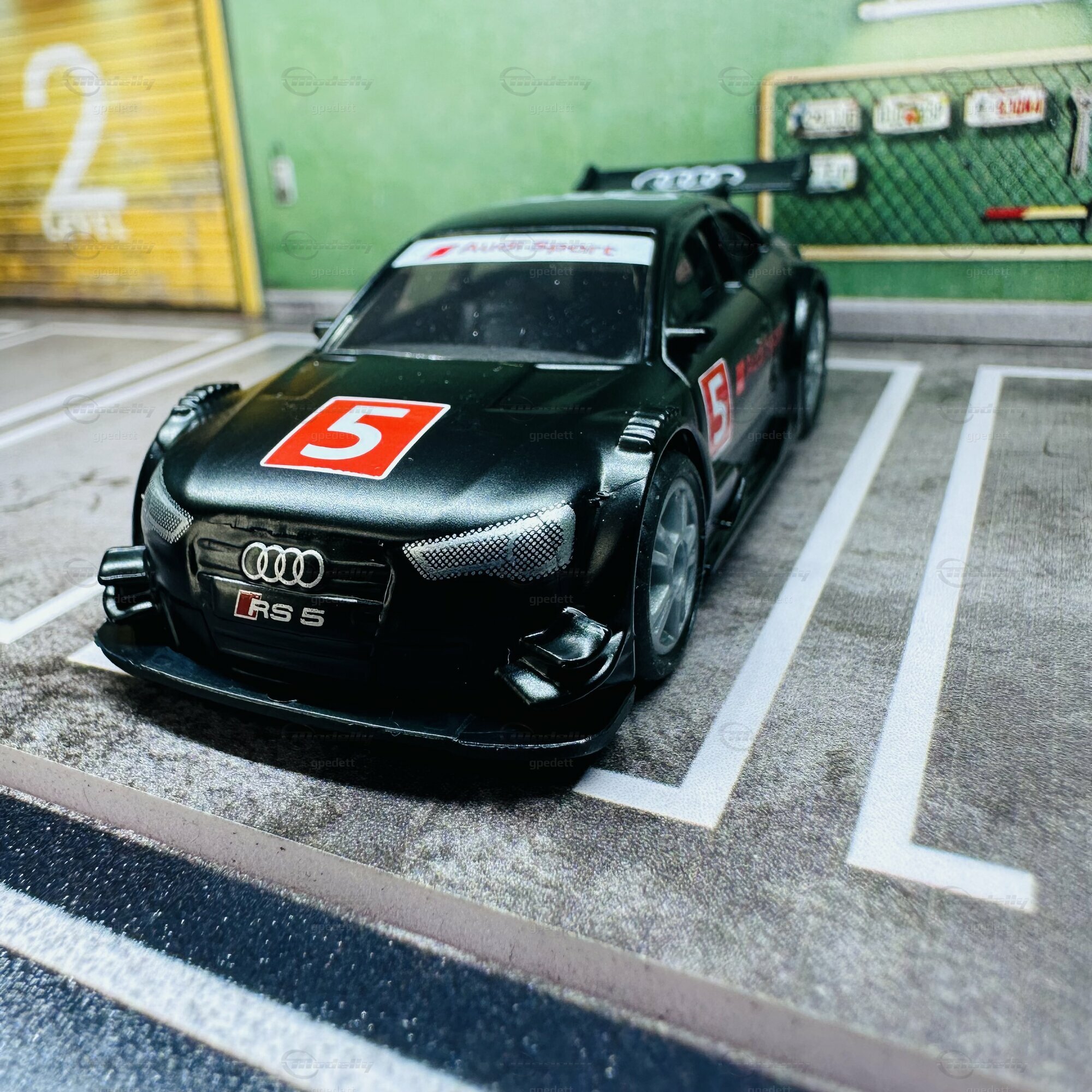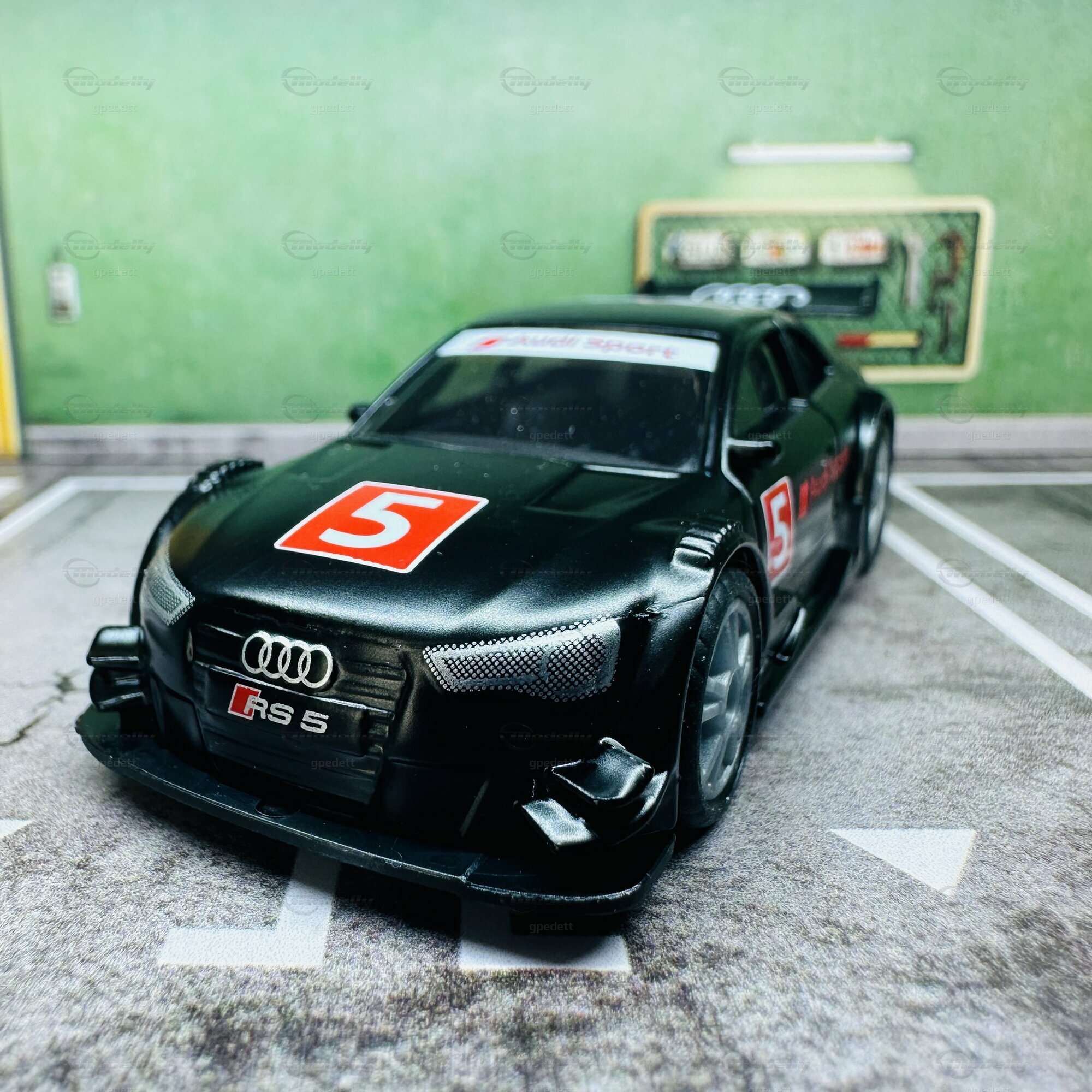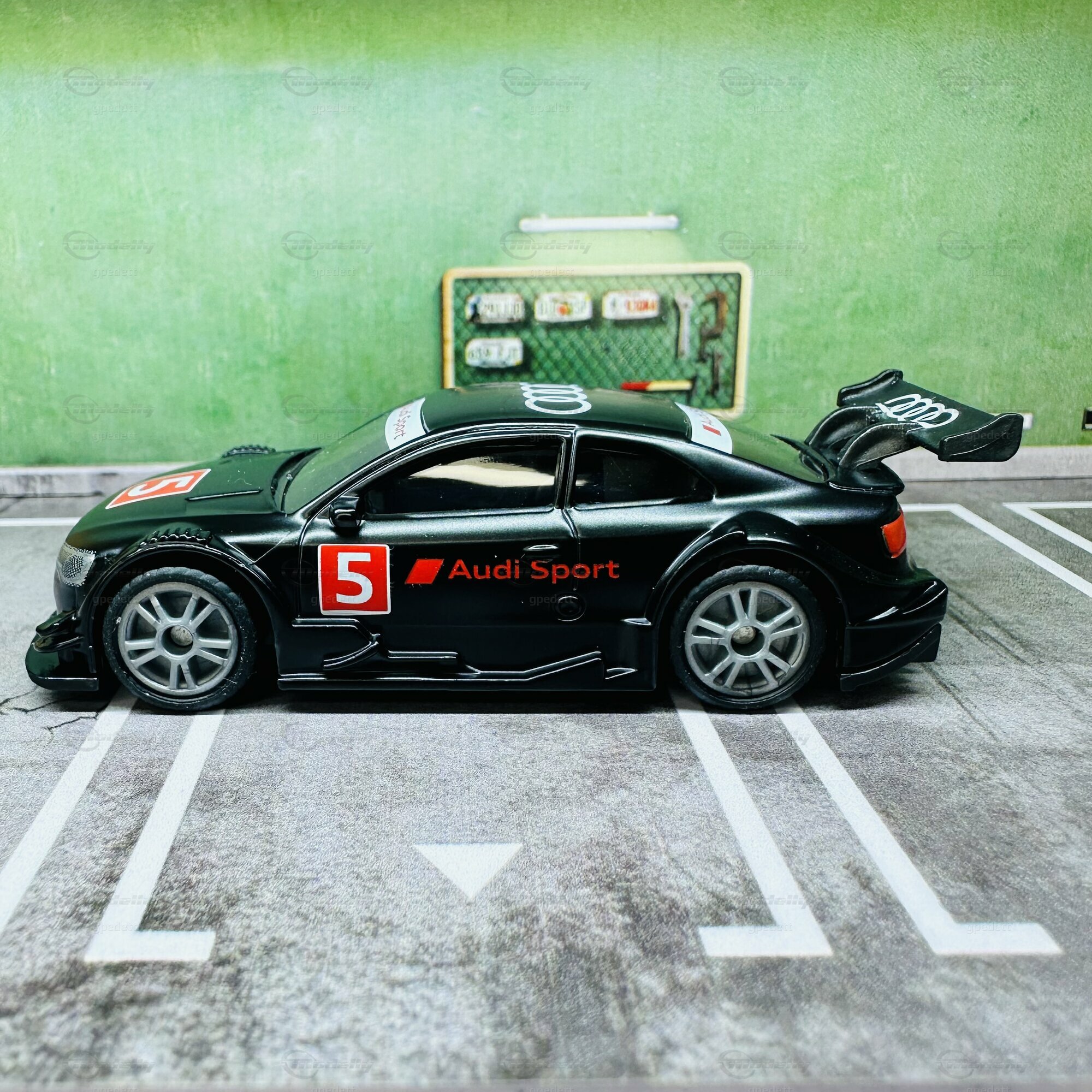 Color: Black with number 5 and Audi Sport decals on sides and front and back windscreen