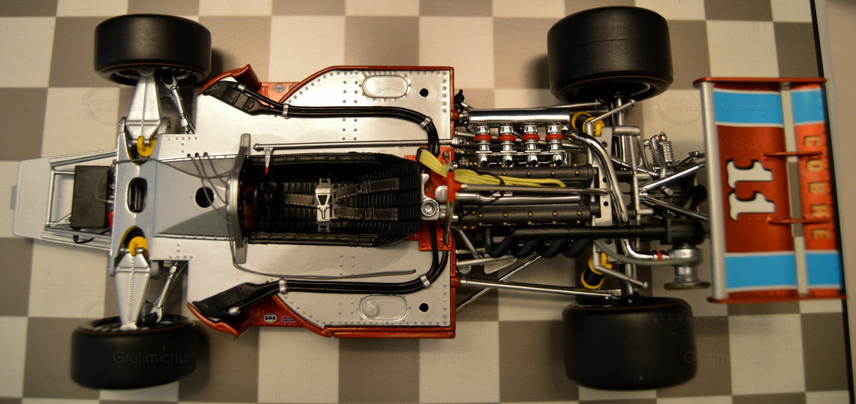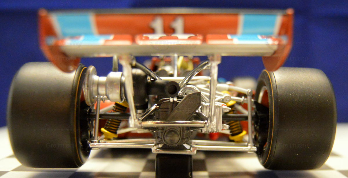 The production of this miniature from diecast material ensures remarkable stability and detail accuracy. Every component, from the engine replication to the suspension parts, is meticulously crafted and assembled. The recreation of the roll bars and depiction of the complex engine layout reflect the technical intricacies of the original. The detailed tires and rims, adorned with Firestone lettering, complete the overall look. This 1/18 scale model is a must-have for any collector, offering a realistic and impressive glimpse into one of the icons of motorsport. A special highlight in the collection of Modelly member "Grolimichu".