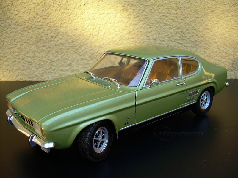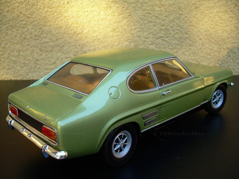 The model presented by Modelly member "guenter" is a precise replica of the first-generation Ford Capri in a 1/18 scale. This miniature, manufactured by Minichamps, stands out for its attention to detail. The green metallic paint job is very characteristic and reflects the style of the 1970s. The fine lines and contours of the model are particularly striking, as are the chrome bumpers and mirrors that perfectly capture the classic look of the original. The wheels of the model are also faithfully reproduced. These miniature model cars are not only collectors' items but also a piece of history that reflects the automotive and design understanding of that time.