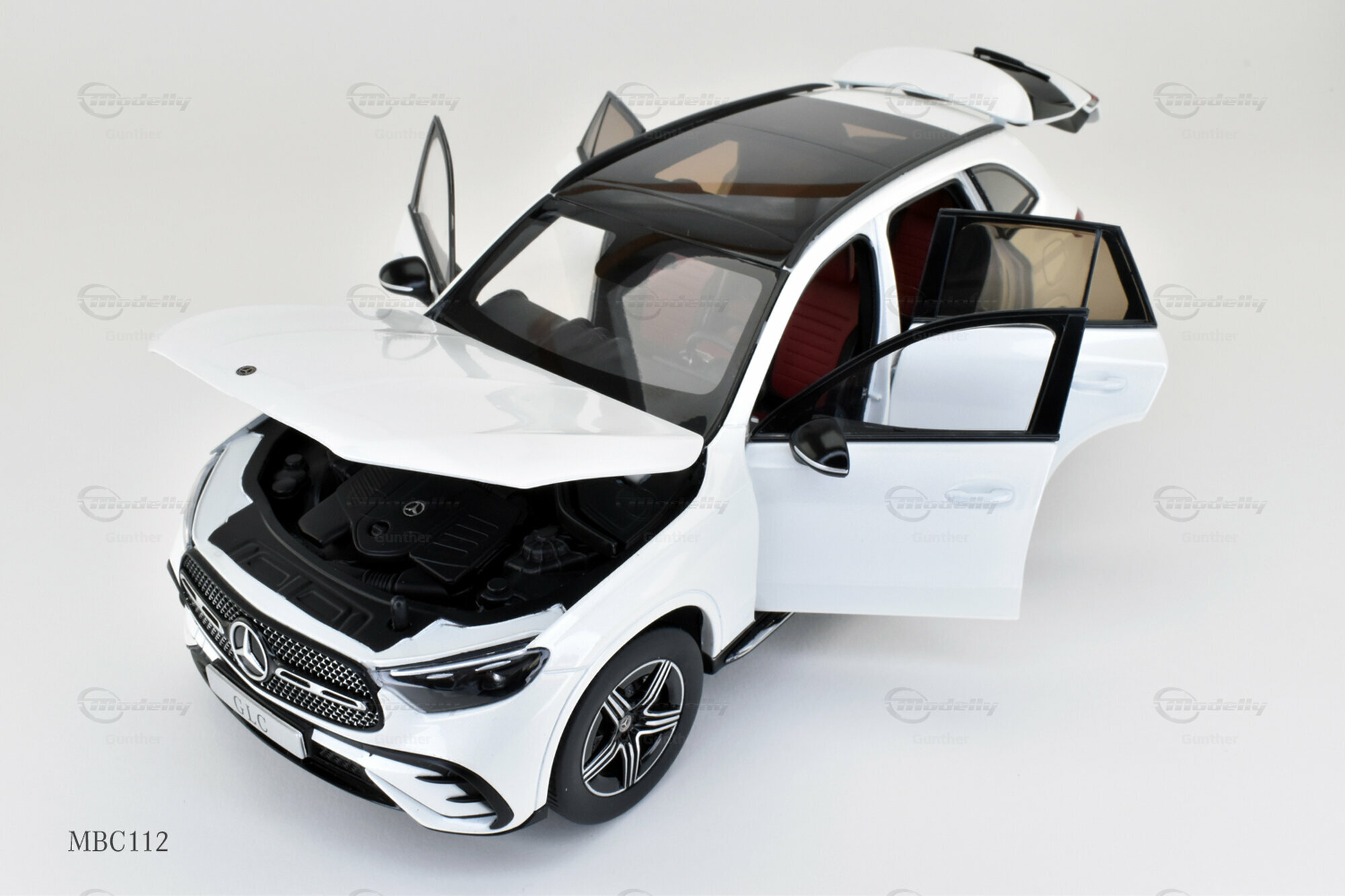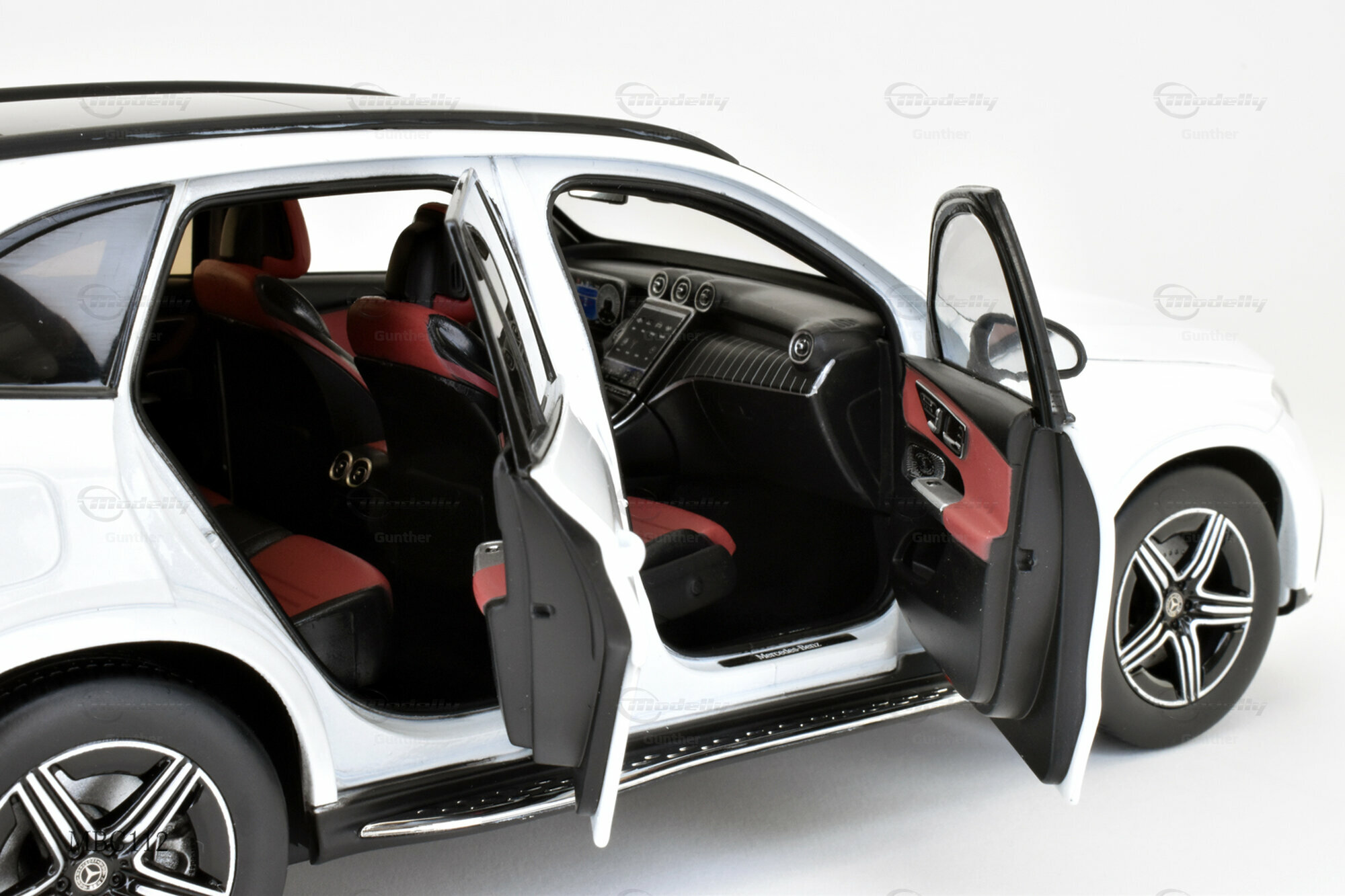For model car collectors, the 1/18 scale model of the Mercedes-Benz GLC (X254) from iScale Mercedes-Benz Dealer Edition offers an impressive replica of the original. This model in 1/18 scale is crafted from a high-quality mix of materials and remarkably represents the details of the original. From the precise reproduction of the LED headlights to the accurately replicated wheels, all the distinctive features of the GLC are included. Special attention is given to the paintwork, closely mimicking the gloss of the original. The black B-pillar and the black exterior mirror caps complement the overall design harmoniously. These models are a must-have for any collector and provide an excellent opportunity to closely examine the intricacies and elegant lines of the GLC.
