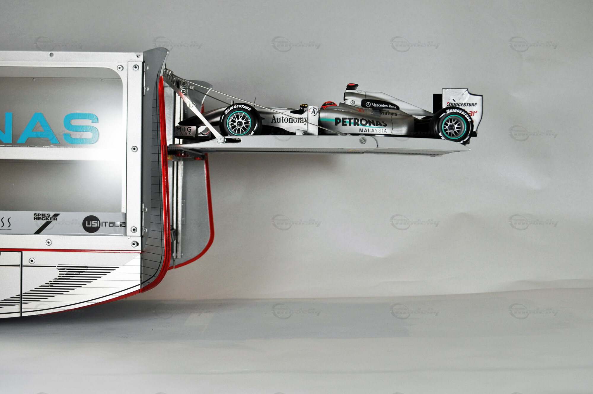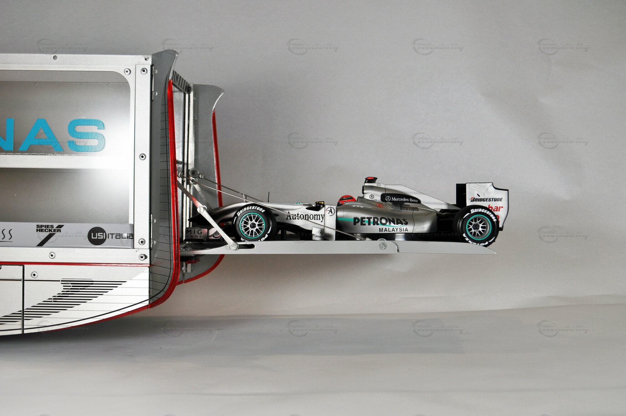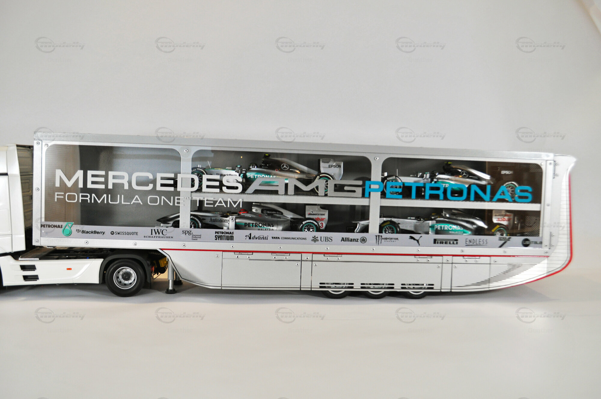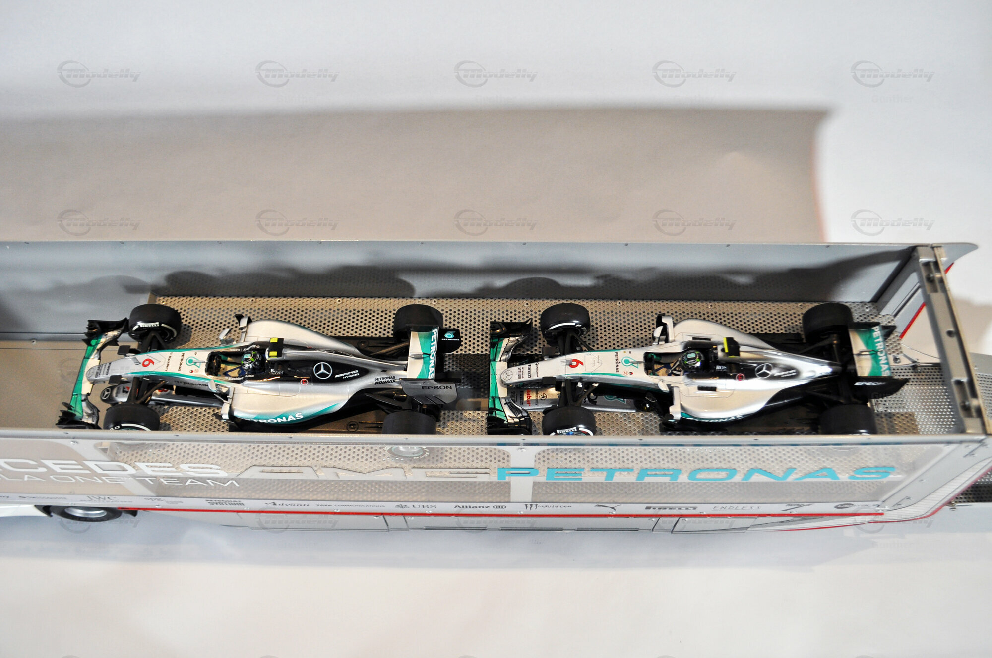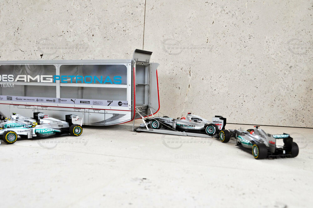 Mercedes-Benz Petronas AMG renntransporter (1:18)