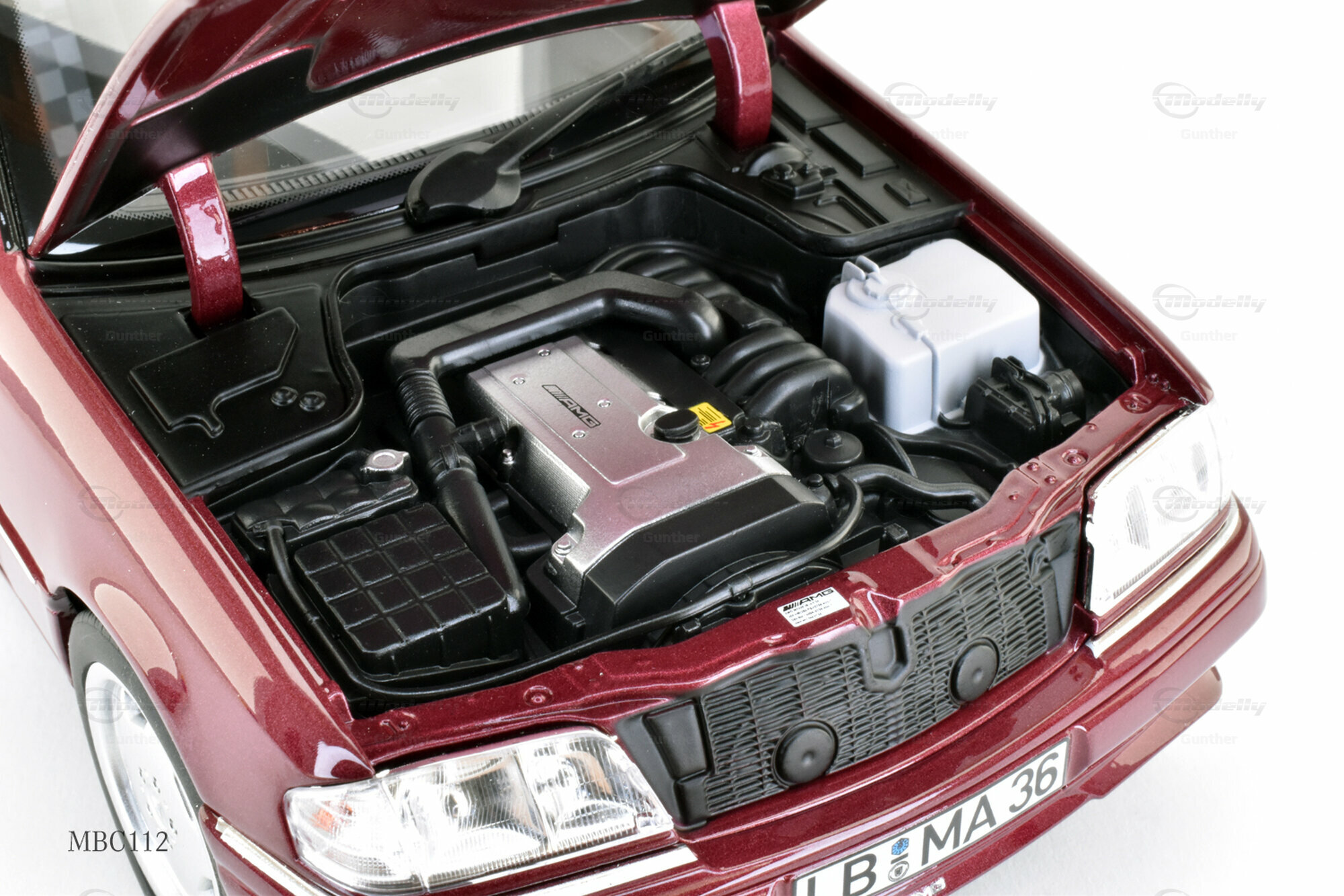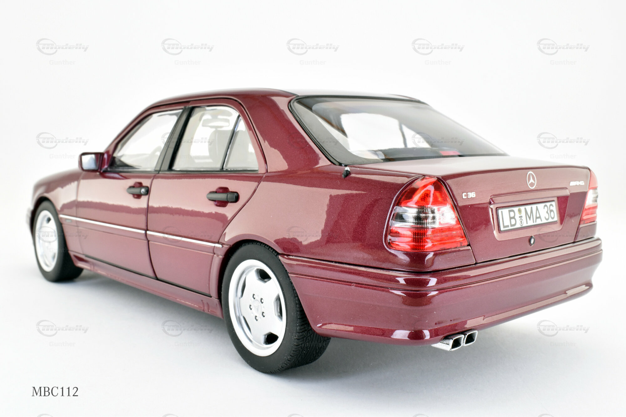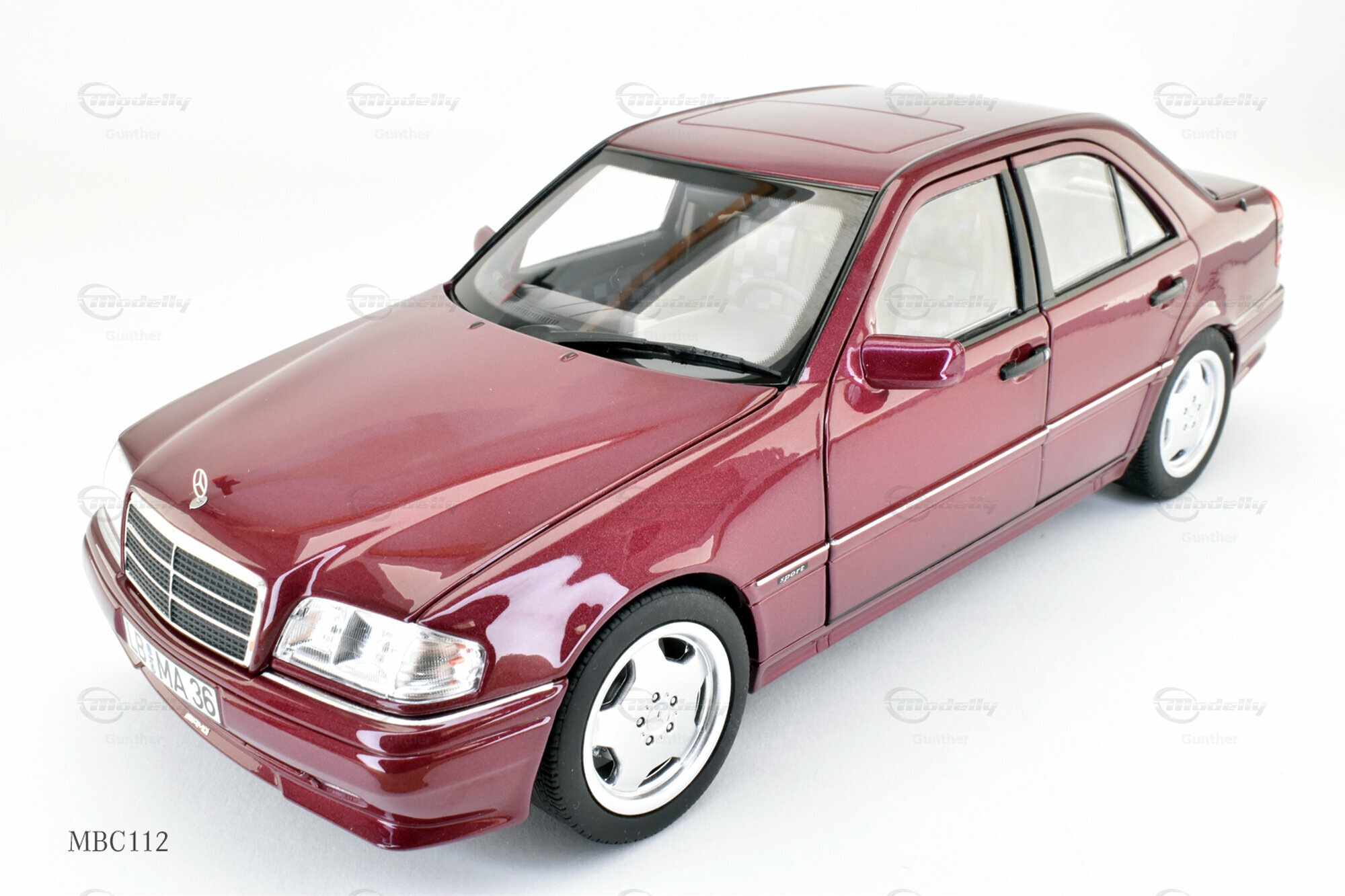 The model of the Mercedes-Benz C 36 AMG (W202) presented here was crafted by Norev using a blend of materials renowned for their durability and accurate detailing. This miniature is a limited edition, restricted to 2000 units worldwide. Collector "Gunther" from Modelly has acquired one of these exclusive series for his collection. The attention to detail in this model is evident in the faithful features such as the brand emblem and the accurately replicated AMG styling elements.