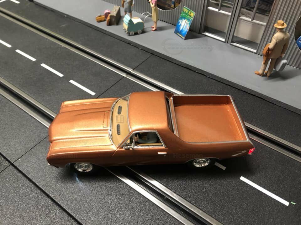 The model showcased here, part of the collection of Modelly member "Heseman," stands out for its attention to detail and masterful execution. The metallic bronze paint gives the model a premium look. All original embellishments, such as the chrome details on the bumpers and the characteristic body shapes, are accurately reproduced. The model's wheels look authentic but are not specific to any particular wheel manufacturer. For model and miniature collectors, this modified Carrera 1/32 slot car is a highlight in any collection. It vividly demonstrates how meticulously and accurately miniatures can depict historic venues and vehicles.