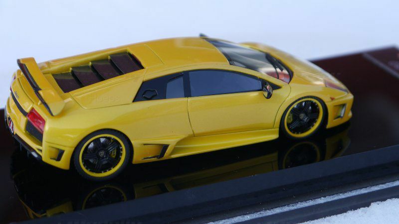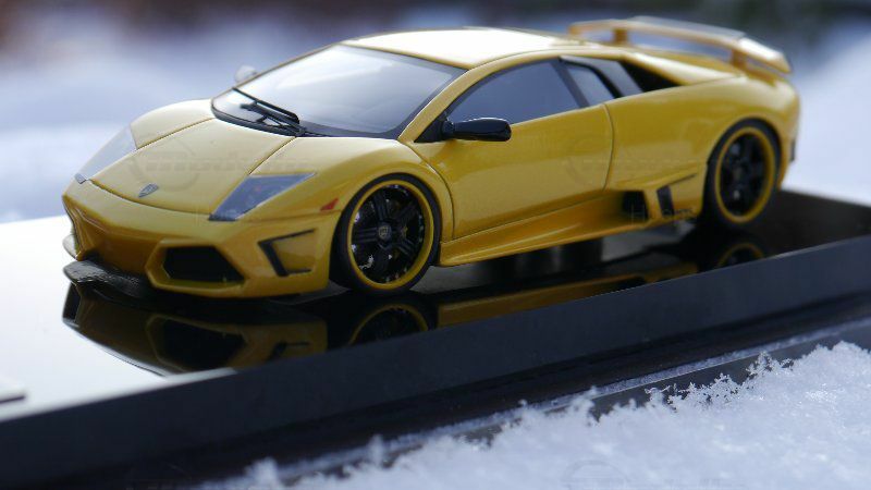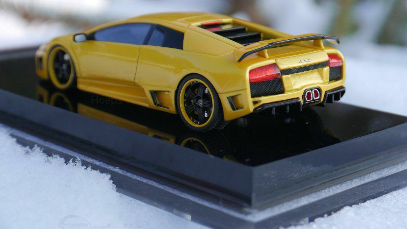 The model shown here is a precise replica of the Lamborghini Murciélago in a scale of 1/43, produced by AIMS. It belongs to the collection of Modelly member Hoeps and showcases the Lamborghini with impressive attention to detail. The model is displayed on a high-gloss platform, adding to its elegance. The model's livery in a rich yellow captures the essence of the original beautifully. The clear lines and accurate reproduction of the Murciélago's distinctive features make this model a special highlight for collectors.