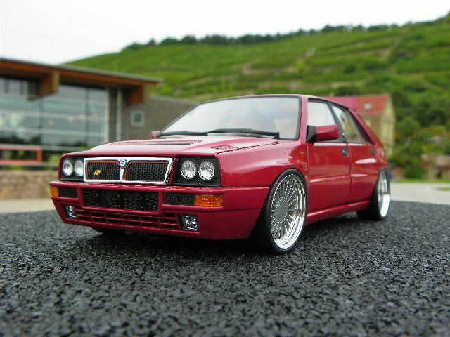 The model car crafted in the 1/18 scale is a special addition to any collection, especially for Modelly member "Hoeps". The red painted body mirrors the sporty aesthetics of the original, including the distinctive ventilation slits on the hood and the characteristic widebody design. The detailed headlights and taillights are also notable features indicating the high manufacturing quality of the model. The interior of the model also impresses with realistic details such as the sport seats and the detailed dashboard. This diecast-based model car provides the collector with an authentic impression of the real Lancia Delta Integrale Evoluzione and remains a highlight due to its modified elements.
