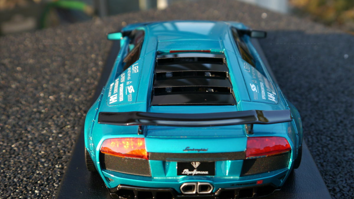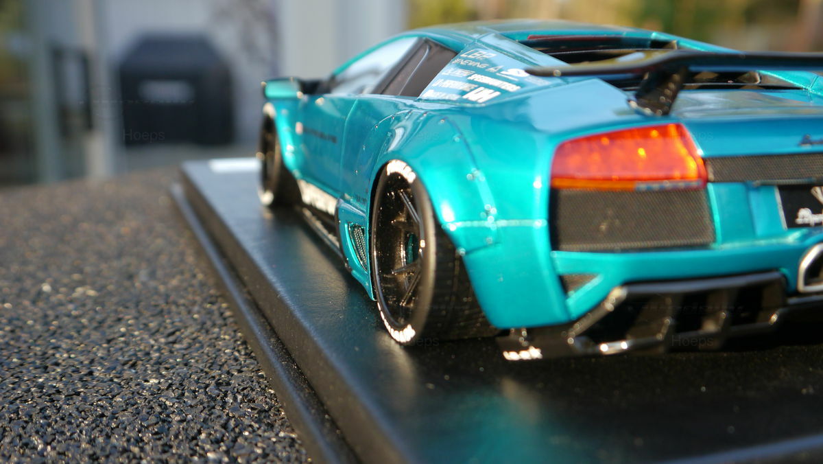 This 1/18 scale model of the Lamborghini Murciélago crafted by MG Model Plus is part of the collection owned by Modelly member "Hoeps". The detailed craftsmanship and faithful recreation of famous tuning parts make this model a sought-after collector's item. The front bumper, side skirts, and imposing rear spoiler are modeled after the real car. Additionally, the model features Liberty Walk decals, the renowned Japanese tuning company founded in 2009 by Wataru Kato. The attention to detail and high-quality construction make this model a highlight in any collection of model-building enthusiasts and car aficionados alike.