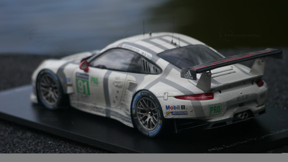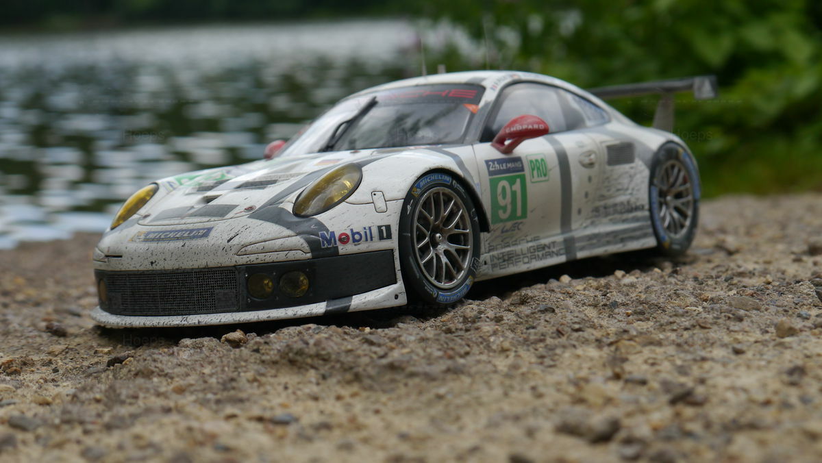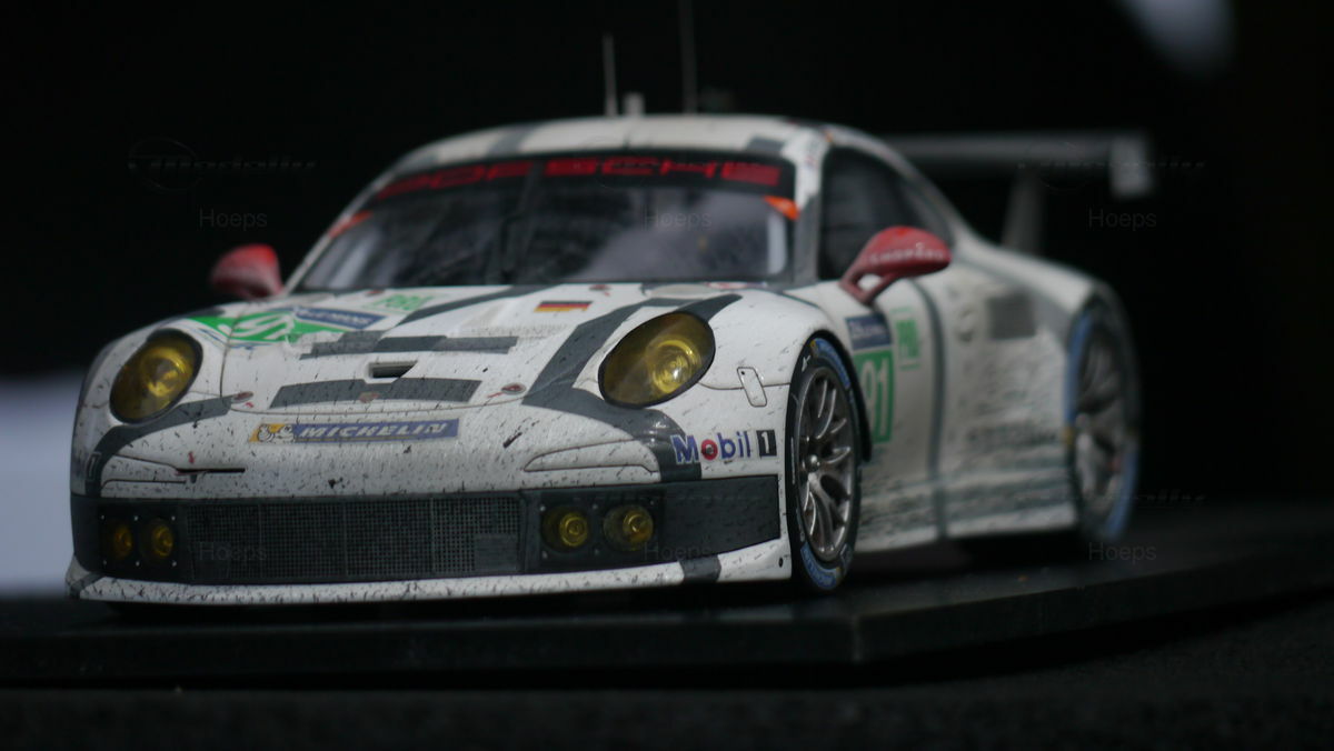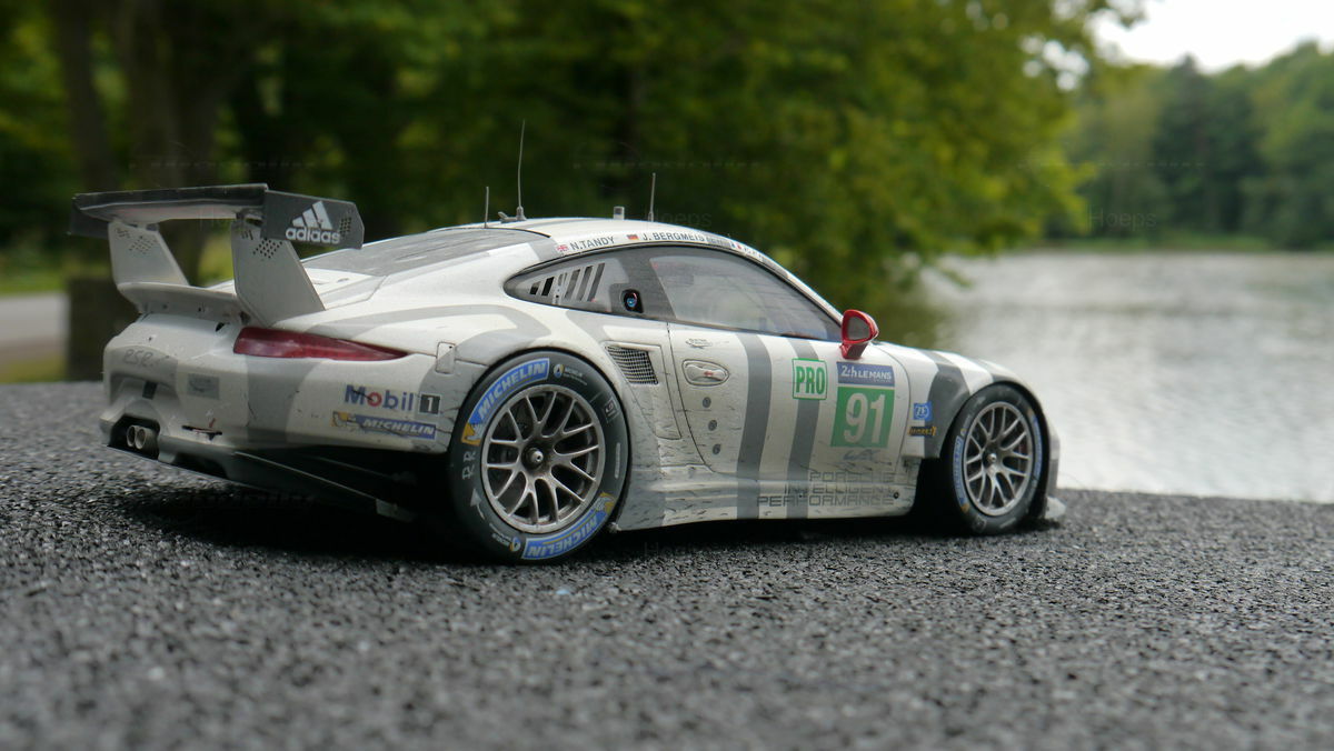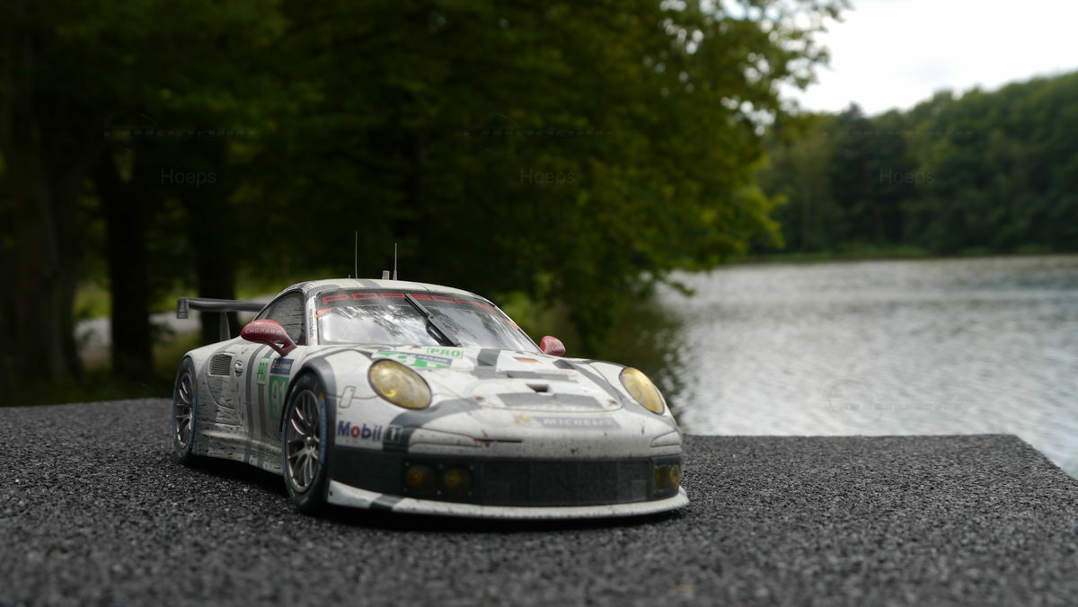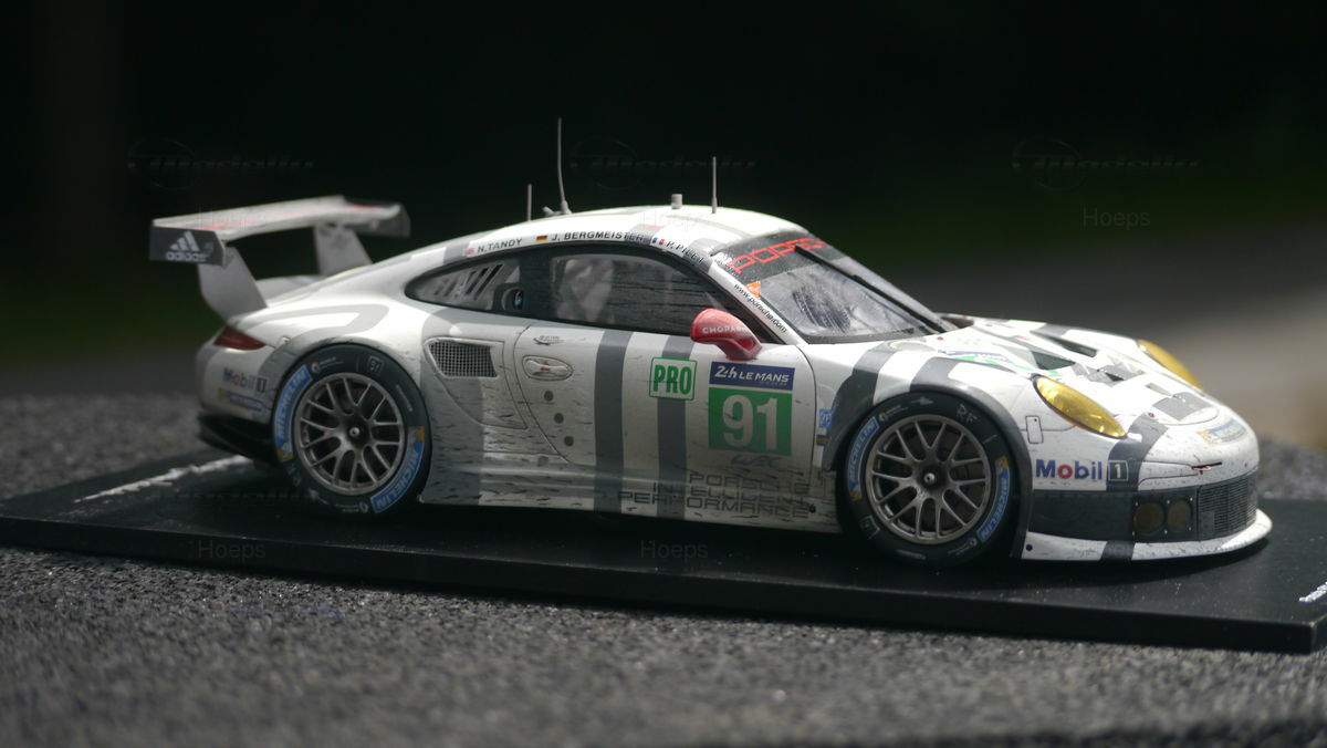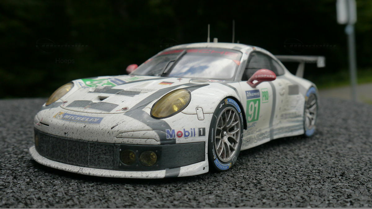 The model car collection of Modelly member "Hoeps" includes a 1/18 model of the Porsche 911 (991) RSR. This model, made by Spark/Cartima, is crafted from resin, ensuring high detail accuracy. Every detail of the original has been meticulously replicated, from sponsor logos like Mobil 1 and Michelin to the characteristic racing liveries. Particularly striking is the authentic reproduction of the alloy wheels and aerodynamic wings that make the original an icon on the track. The model exhibits a precision in design that captures even the smallest nuances of the racing car, making it especially valuable for collectors.