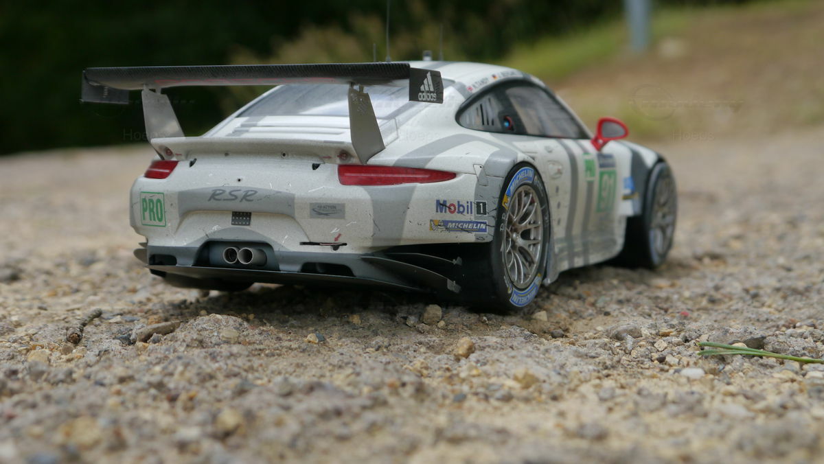 The Porsche 911 (991) RSR features a 4.0-liter six-cylinder boxer engine delivering around 510 horsepower (503 hp). This immense power paired with a specifically tuned six-speed sequential gearbox ensures agile and swift gear-change performance. The body is predominantly made of aluminum and carbon, significantly reducing weight. The adaptation of the ventilation system to minimize aerodynamic drag and optimize cooling is a crucial factor in the car's remarkable competition successes. With a complete redesign of the suspension and an improved braking system, the RSR impressively showcases Porsche's cutting-edge technology on the asphalt.