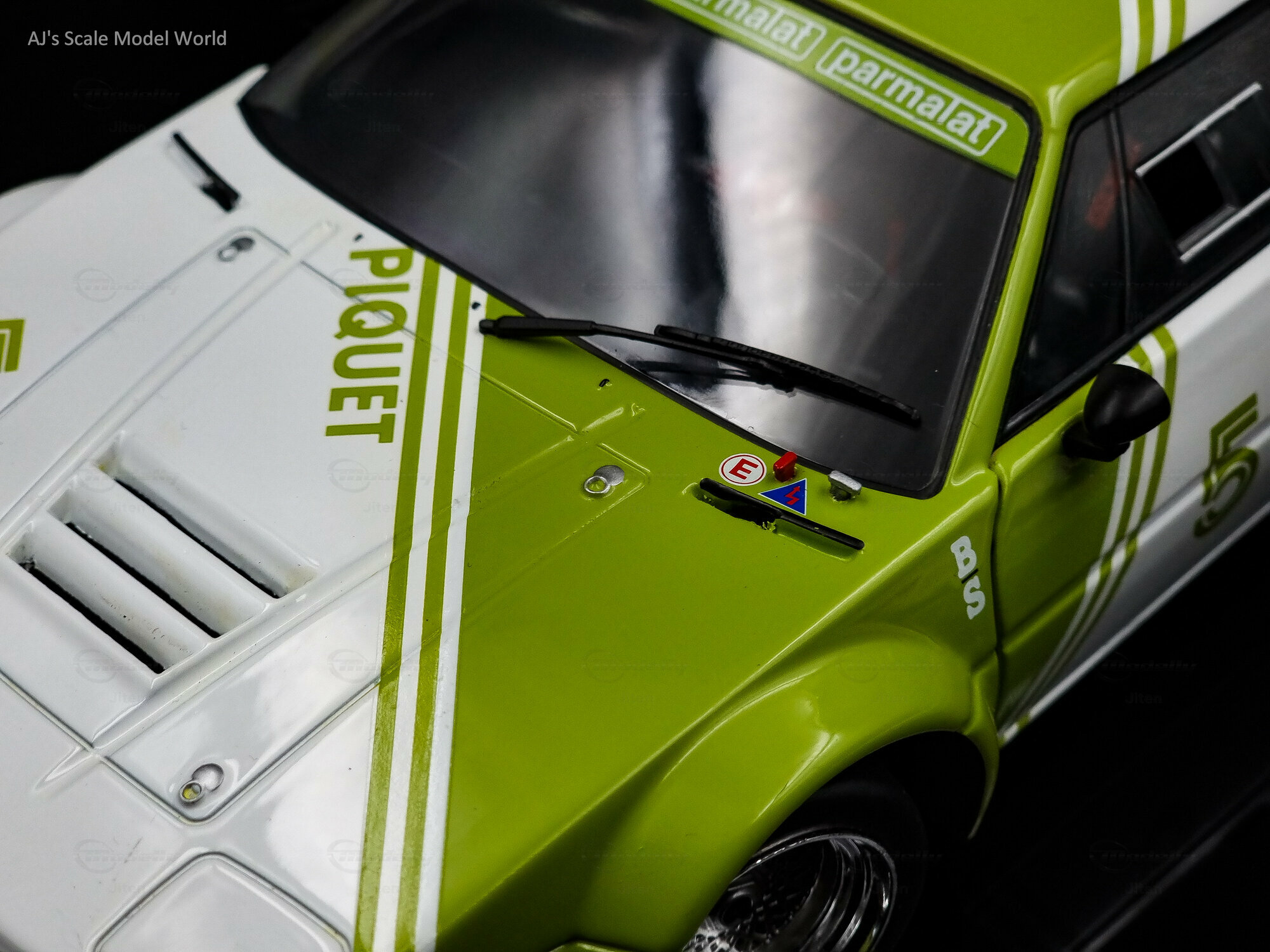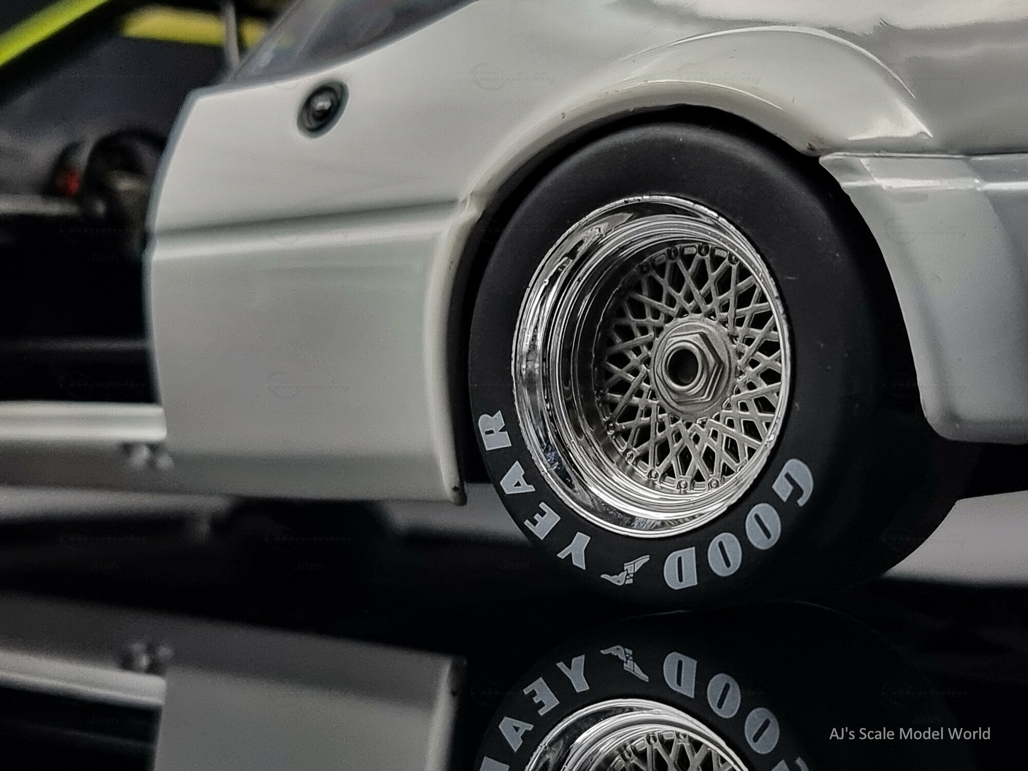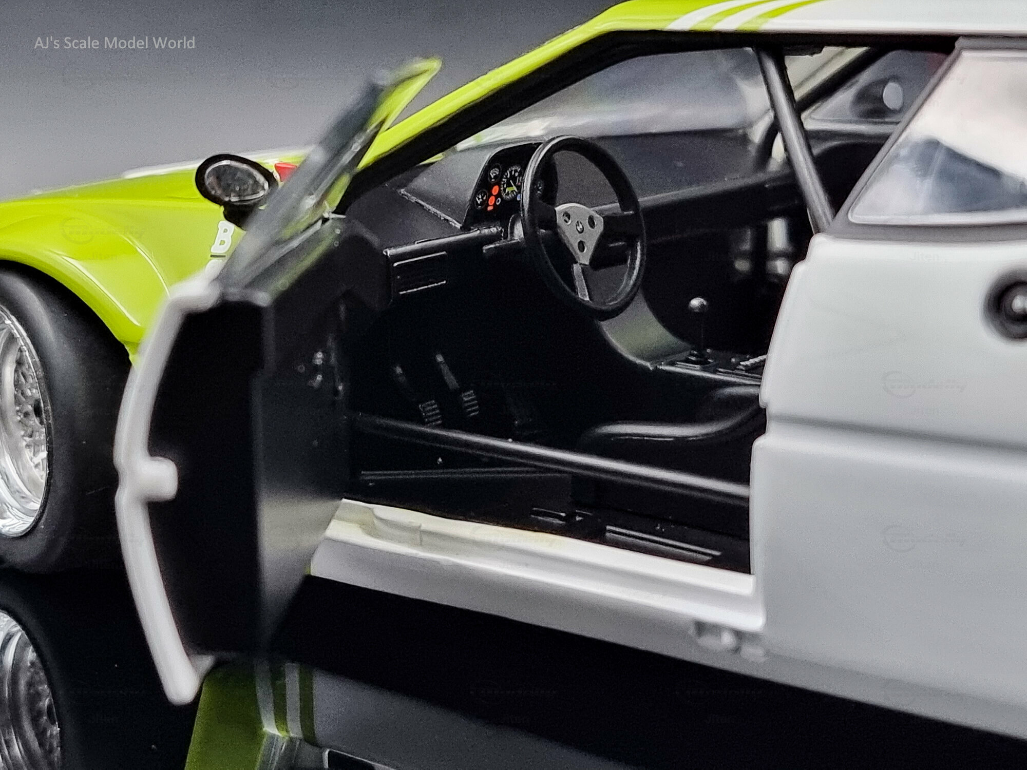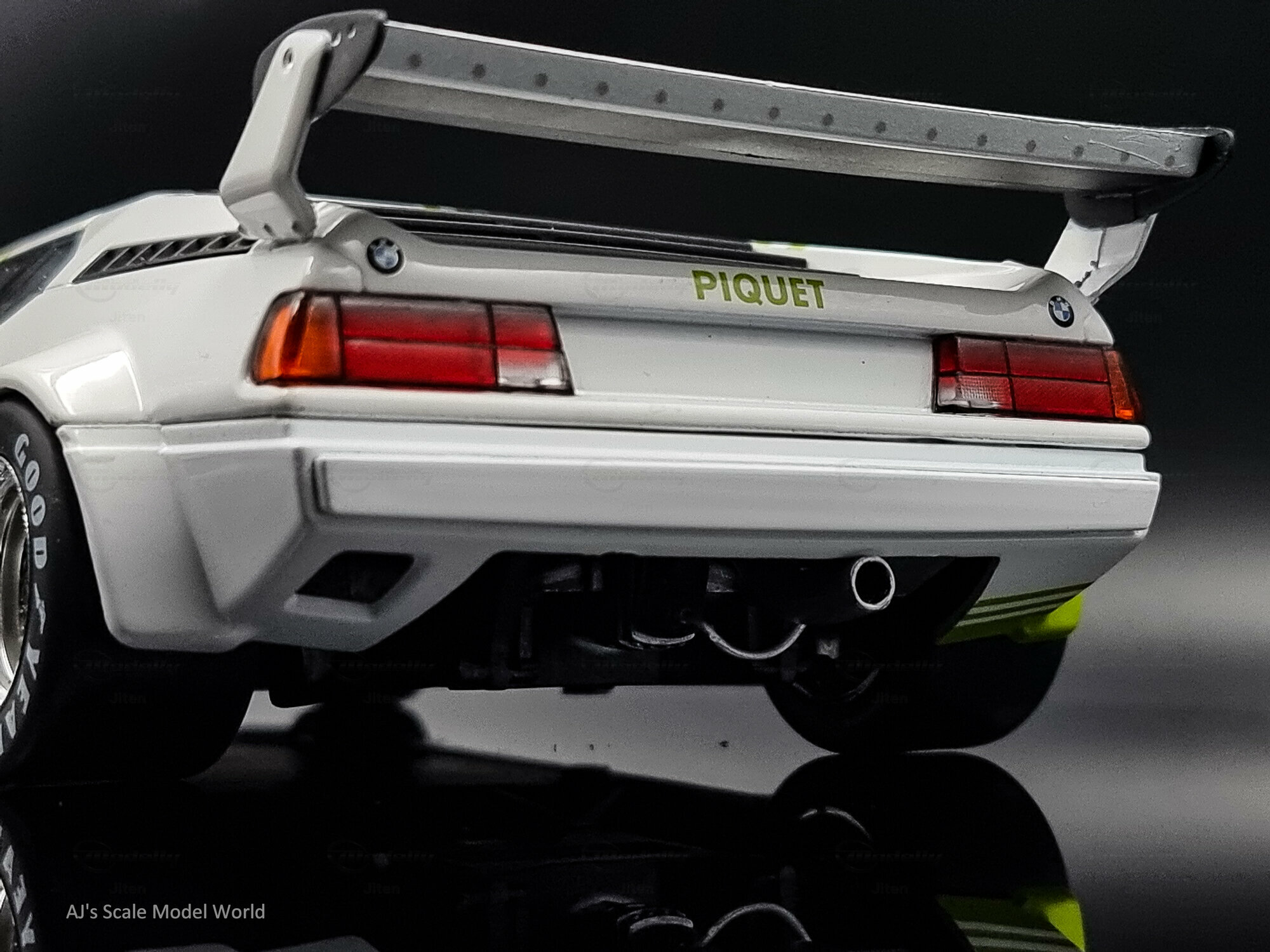 The showcased model, crafted by Werk83, is a detailed replica of the iconic BMW Motorsport M1 in a 1/18 scale. Made from Diecast material, this model impresses with its precise craftsmanship and accurate details. The model's paintwork displays a two-tone combination of white and green, adorned with dynamic stripes and the number 5. Sponsor logos like Goodyear are clearly visible, adding to the authentic racing scene. The miniature, owned by Modellly member "Jiten," is a perfect example of the high craftsmanship and dedication that go into creating collector's models in the 1/18 scale by Werk83.