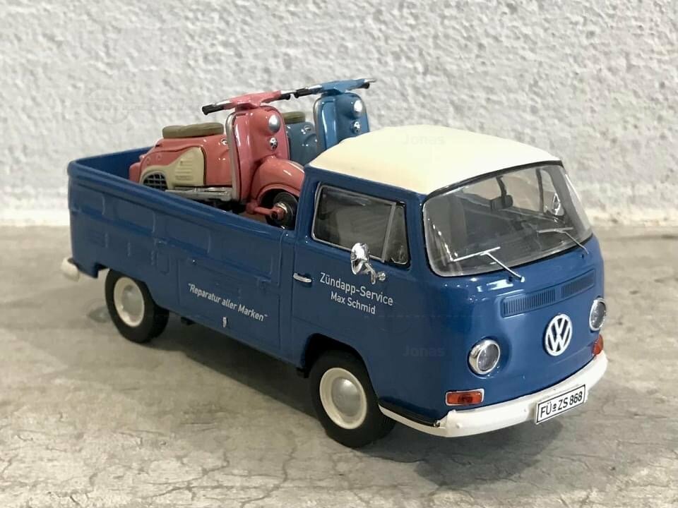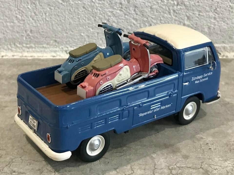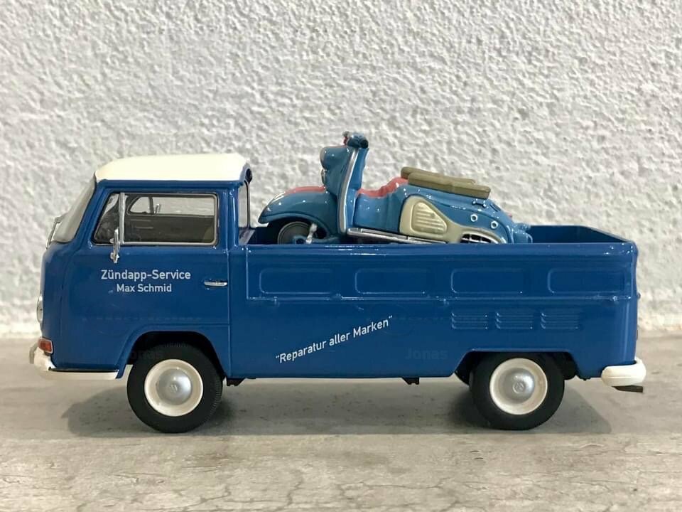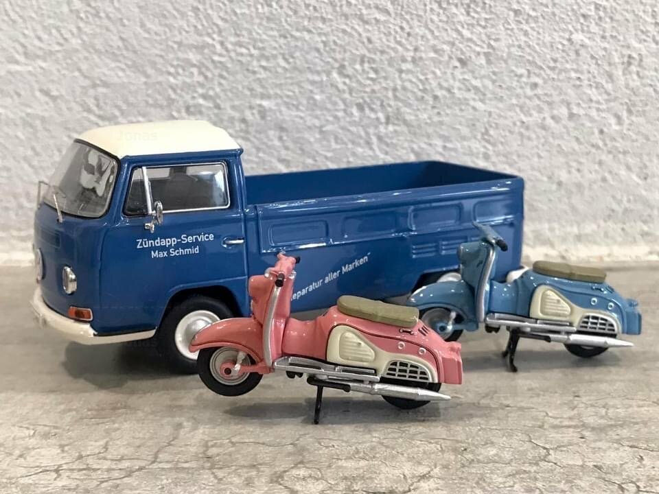 Volkswagen T2a Pritsche „Zündapp Service“ mit 2 Zündapp Bella (1:43)