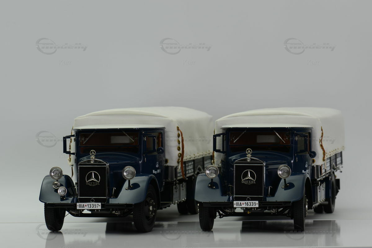 The 1/18 scale model, manufactured by CMC, showcases the Mercedes-Benz Mercedes LO 2750 in impressive detail. This diecast model car is meticulously crafted with attention to detail. Upon closer inspection of the photos, numerous loving details are visible: from the delicate mirrors to the authentically designed headlights and taillights. The interior is also faithfully reproduced, with clearly identifiable instruments and an accurately recreated driver's cabin. The canvas is made of fine fabric and adorned with tiny yet functional fastenings. Member "Karr" has a real highlight in his collection, showcasing the authentic replication and historical significance of this truck. The 1/18 scale model from CMC offers an excellent addition to any collection specializing in historic commercial vehicles.