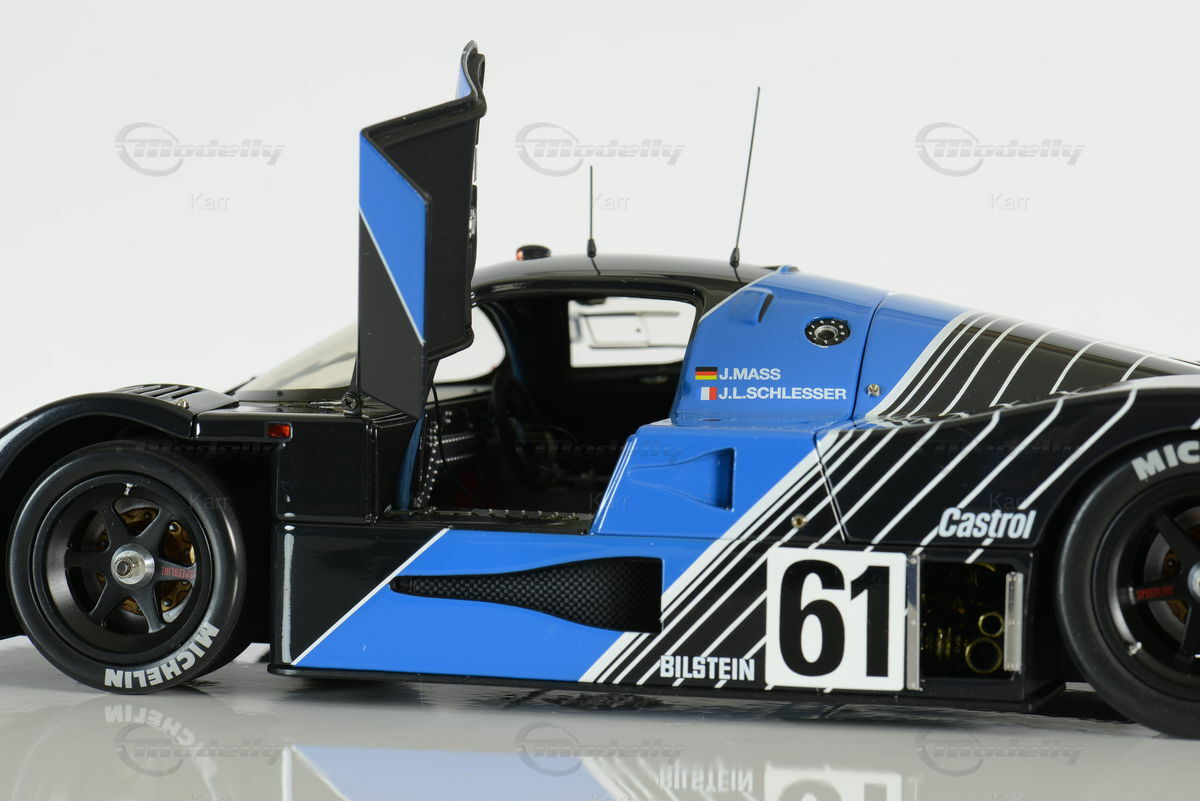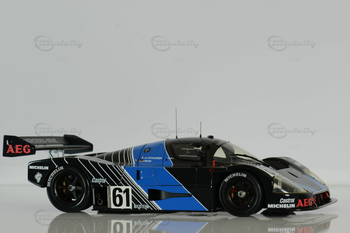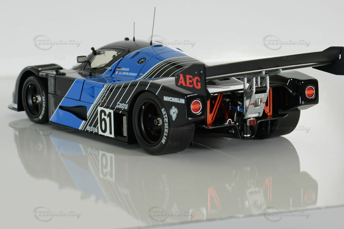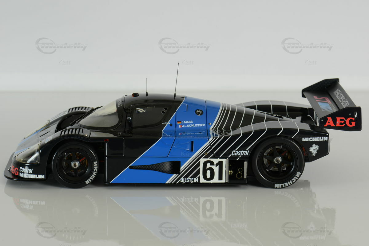 The 1/18 scale model shown here, part of Modelly member "Karr's" collection, is a detailed representation of the historic race car and was crafted using diecast material. When looking at the miniature model, several details stand out: The black paint with blue accents and the characteristic sponsor decals from AEG, Castrol, and Michelin are faithfully recreated. The precise replication of the cockpit and the correct proportions demonstrate the high level of attention to detail that Exoto Racing Legends pursues in making these models.