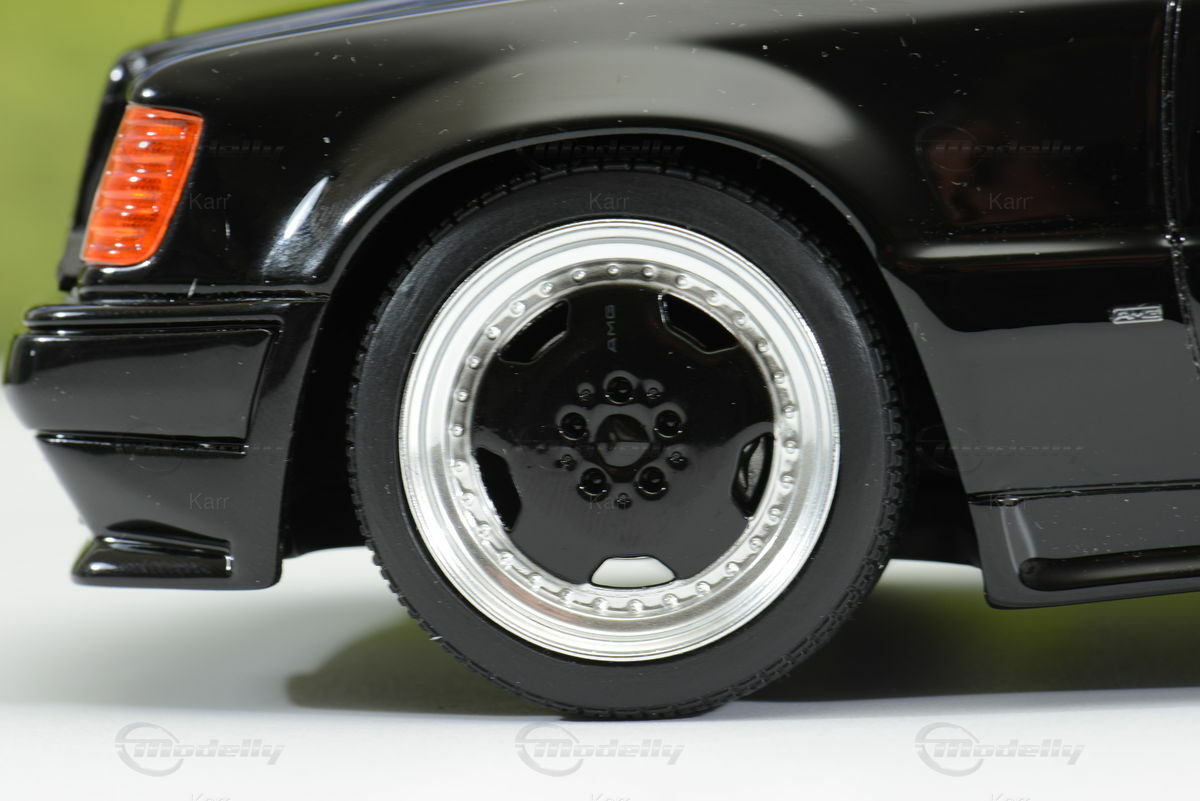 This miniature, a scale model at 1/18, crafted by Ottomobile, beautifully captures the fascination of the original. Made of resin, a material known for its exceptional detailing and precision, this model belonging to the collection of Modelly member "Karr," faithfully reproduces the distinctive features of the vehicle. This includes the commanding front end with the large grille and rectangular headlights, as well as the sleek body lines. Noteworthy are the wheels, which stand out with their distinctive look. They are complemented by the detailed replication of the AMG components like the front bumper and rear spoiler.