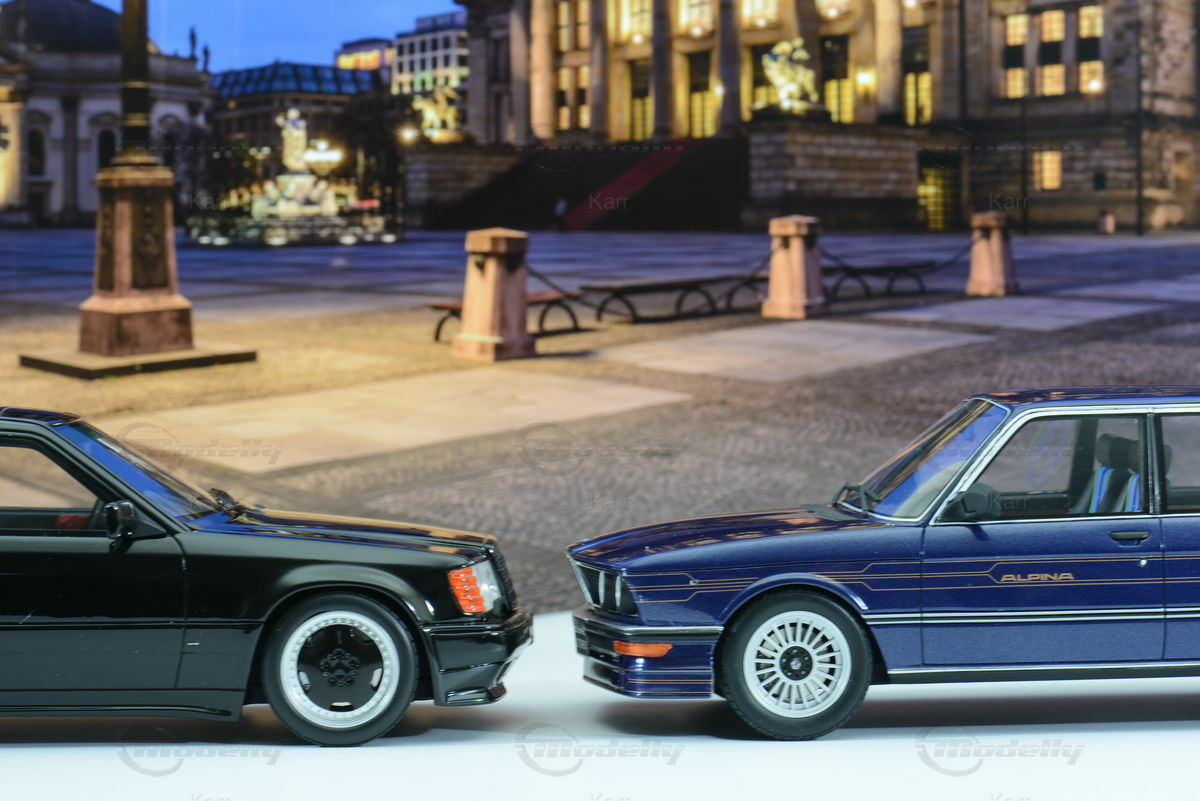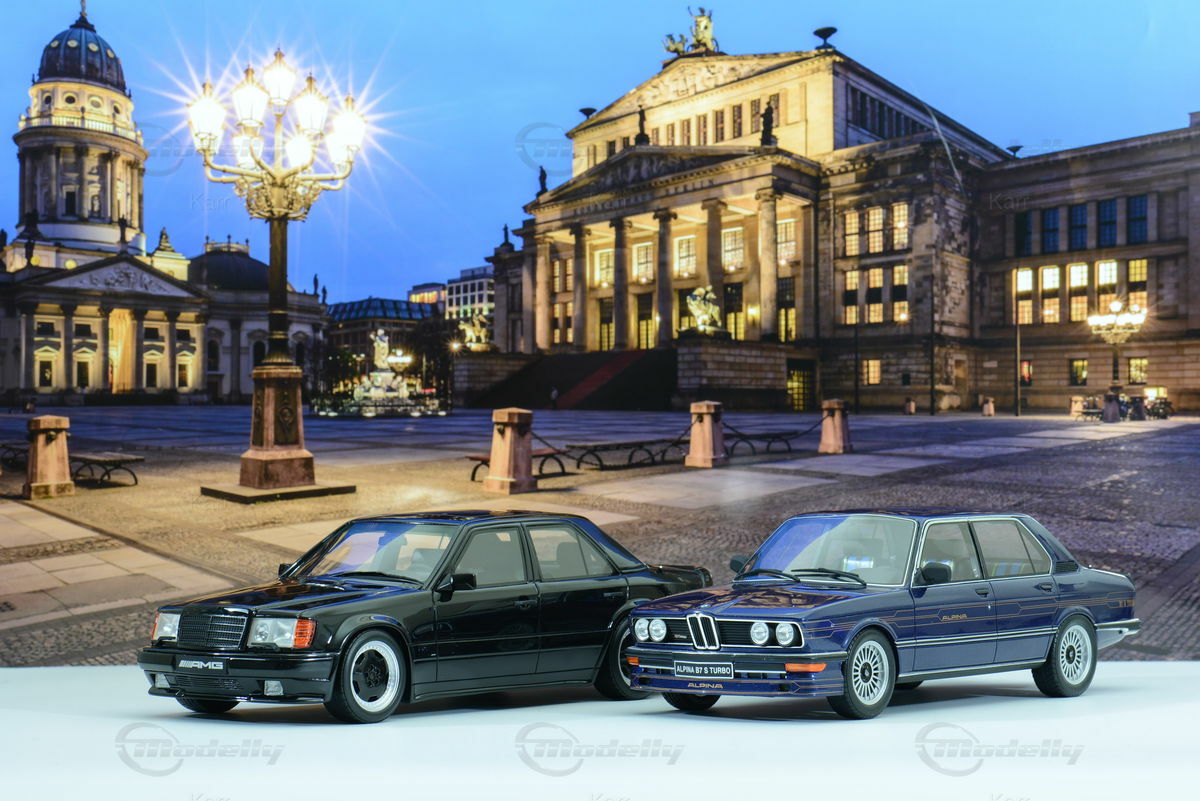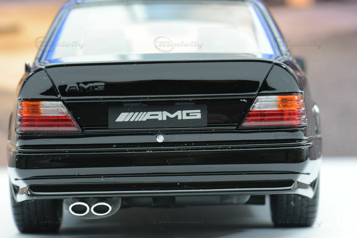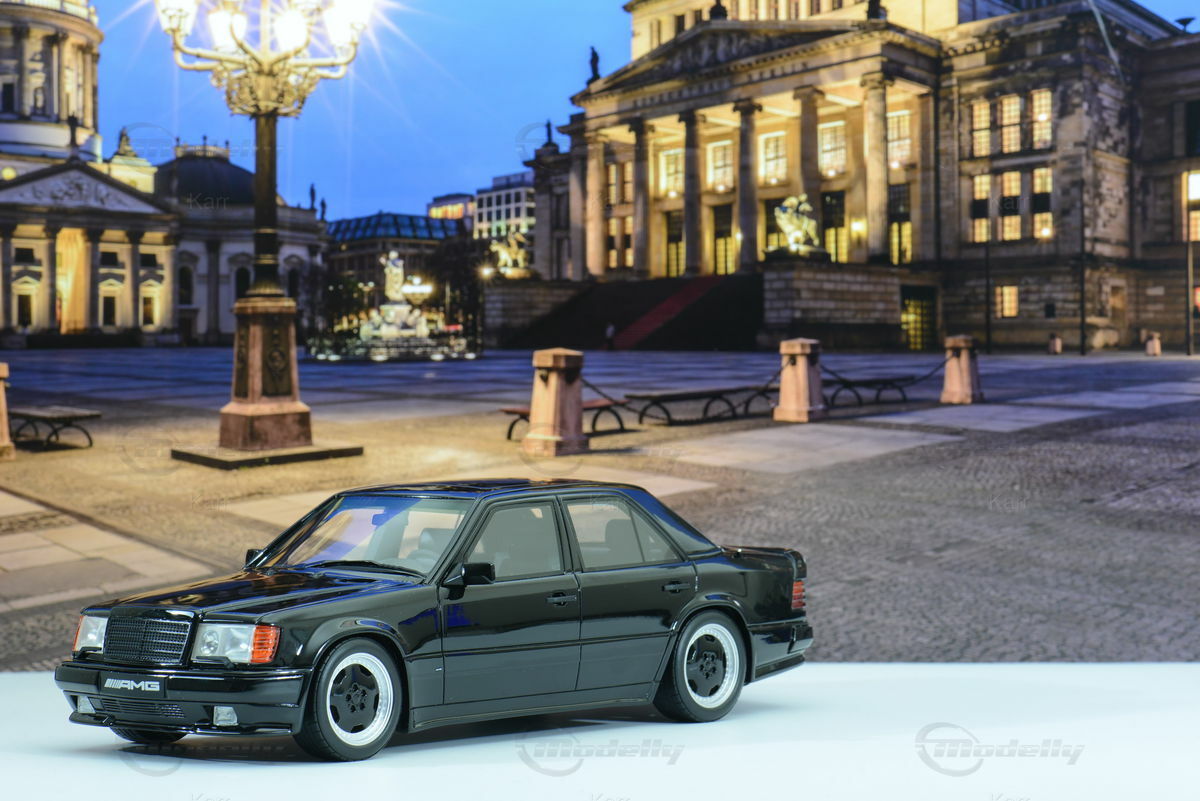 This 1/18 scale model car, manufactured by Ottomobile, is a detailed replica of the Mercedes-Benz 300 E 5.6 based on resin material known for its precision and finesse in model making. The colors of the model are a deep, glossy black that stays true to the original, highlighting its luxurious character. Standout features include the AMG emblems and the distinctive "AMG" lettering on the grille. The model's wheels are faithful reproductions of the Penta wheels made by Rial. These models are excellent for precision enthusiasts and collectors, offering an accurate glimpse into automotive history.