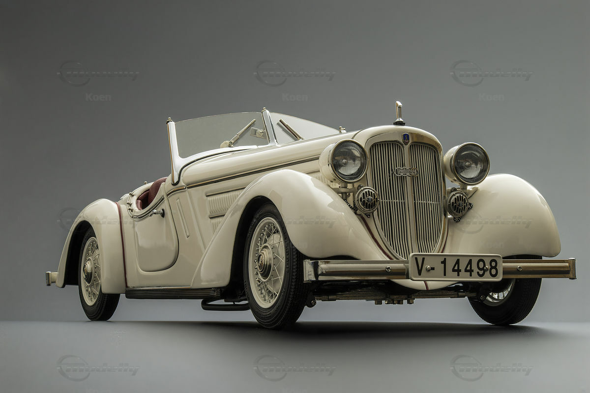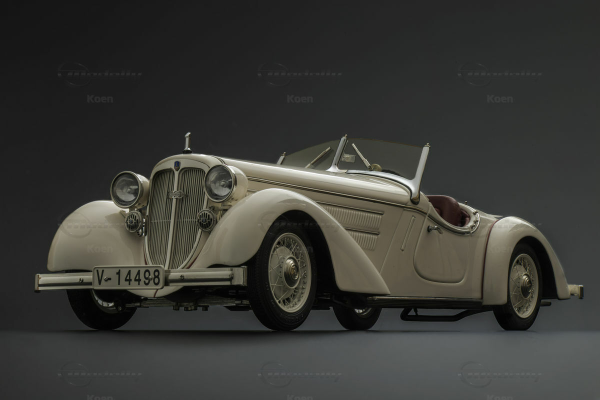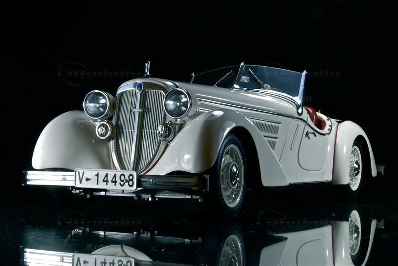 2009 feiert Audi seinen 100. Geburtstag. CMC reiht sich in die Schar der Gratulanten ein und präsentiert zu diesem besonderen Anlass einen besonderen Klassiker: den Audi Front 225 Roadster, 1935 der Öffentlichkeit vorgestellt, war er für die damalige Zeit eine Sensation – eine echte Augenweide, die durch ihre ausgesprochen sportliche und ästhetische Karosserie mit der dynamisch langgestreckten Linienführung begeisterte. CMC bietet diese traumhaft schöne, aus über 1.600 Teilen handgefertigte Miniatur in vier Farbvarianten an – zeitgenössische Zweifarbenlackierungen, die den Modellen eine besondere Strahlkraft und Eleganz verleihen und die Faszination der Modelle unterstreichen.