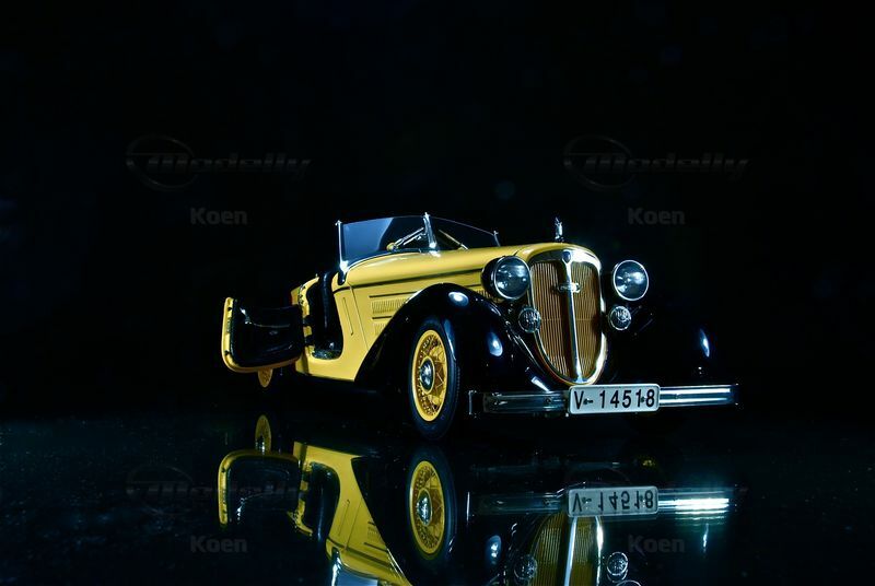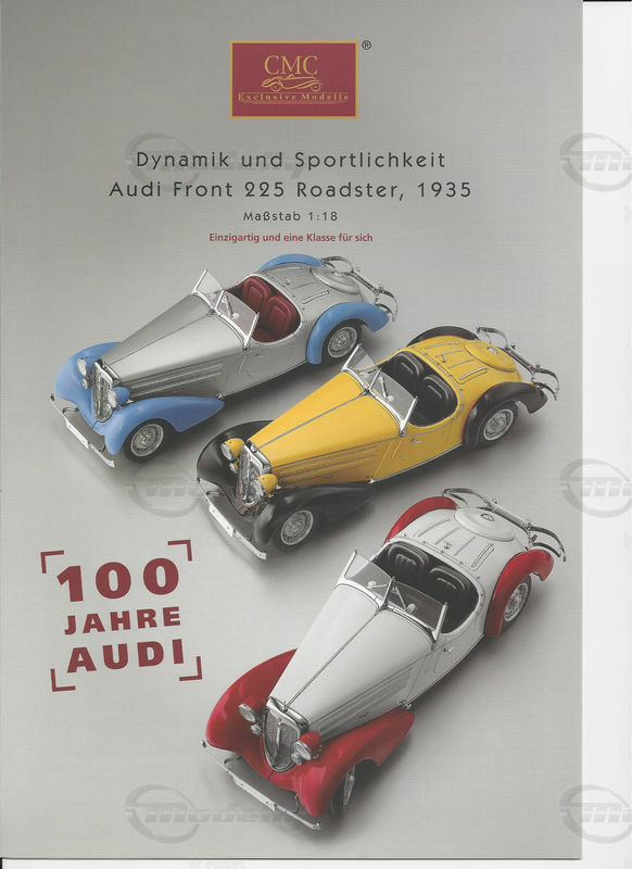 2009 feiert Audi seinen 100. Geburtstag. CMC reiht sich in die Schar der Gratulanten ein und präsentiert zu diesem besonderen Anlass einen besonderen Klassiker: den Audi Front 225 Roadster. 1935 der Öffentlichkeit vorgestellt, war er für die damalige Zeit eine Sensation – eine echte Augenweide, die durch ihre ausgesprochen sportliche und ästhetische Karosserie mit der dynamisch langgestreckten Linienführung begeisterte. CMC bietet diese traumhaft schöne, aus über 1.600 Teilen handgefertigte Miniatur in drei Farbvarianten an – zeitgenössische Zweifarbenlackierungen, die den Modellen eine besondere Strahlkraft und Eleganz verleihen und die Faszination der Modelle unterstreichen.