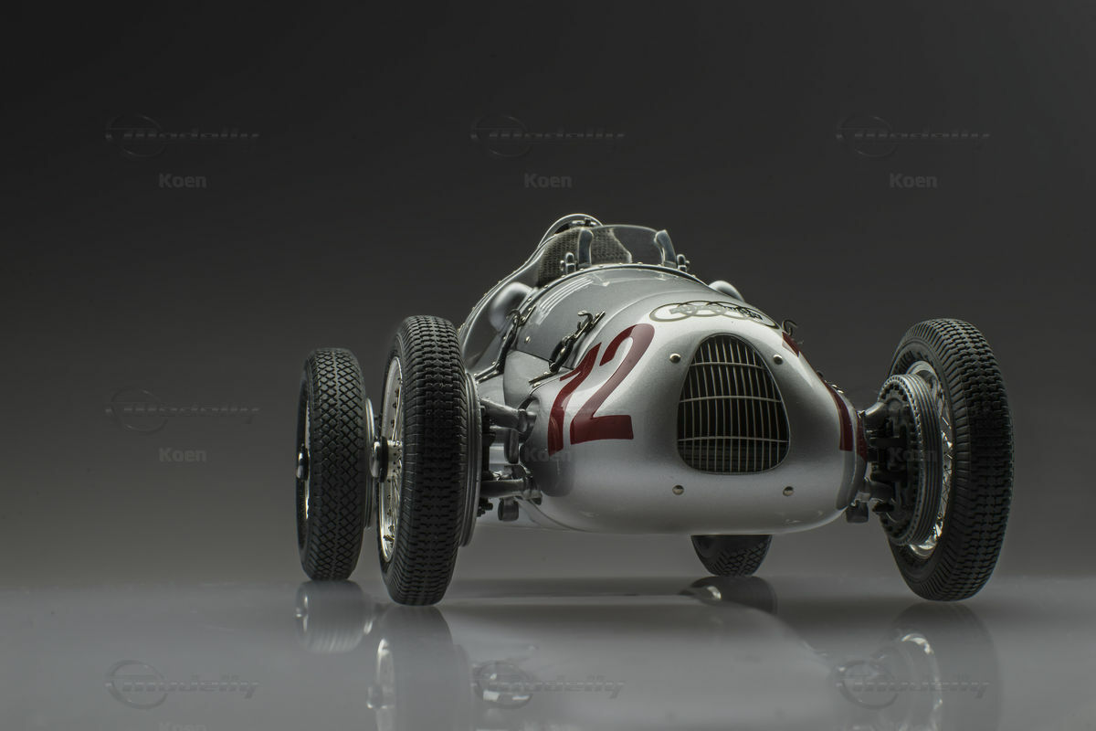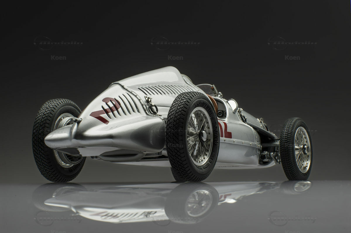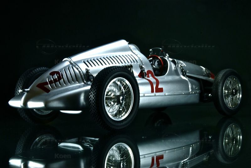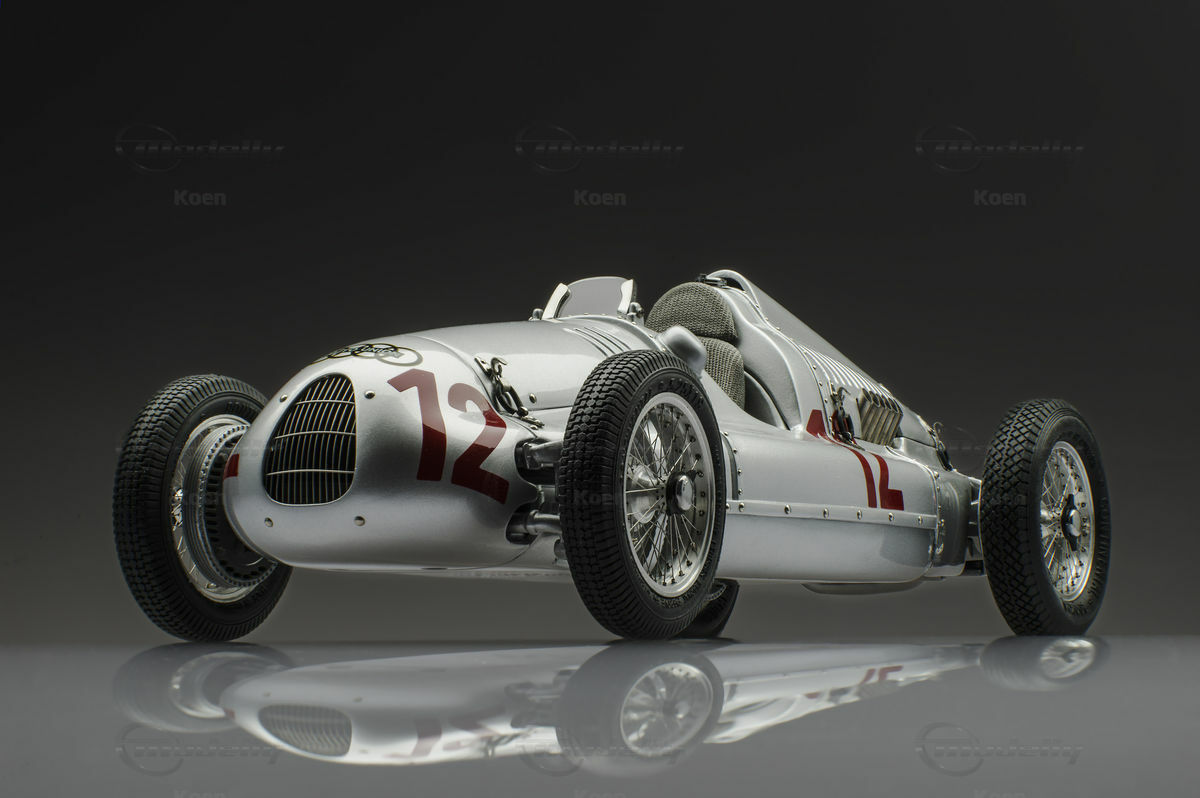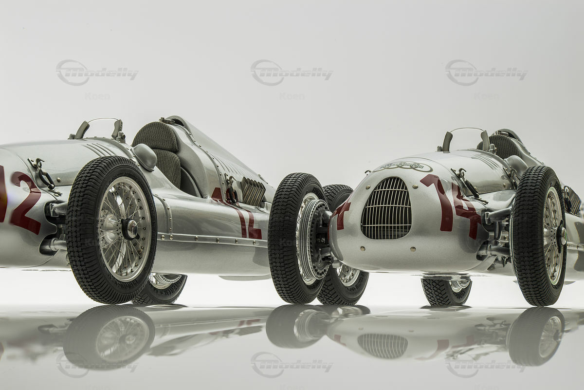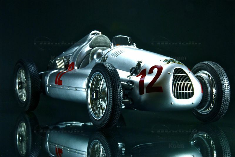 Einen Höhepunkt verzeichnete Auto Union in der Rennsaison 1939 mit dem erfolgreichen Abschneiden beim Großen Preis von Frankreich am 09. Juli 1939. Der Auto Union Fahrer H.P. Müller konnte mit Start-Nr. 12 einen sensationellen Sieg erringen und gewann damit seinen ersten Grand Prix. Sein Teamgefährte Georg „Schorsch“ Meier errang mit der Start-Nr. 14 (Modell M-090) den zweiten Platz und sorgte so für einen grandiosen Doppelsieg für die Marke mit den 4 Ringen. CMC hat die beiden erstplazierten Boliden als limitierte Auflage von je 1500 Stück nachgezeichnet.