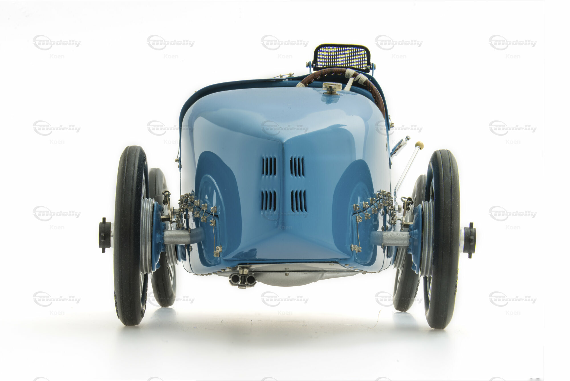 926 Teile, viel Sachkenntnis und Liebe zum Detail waren notwendig, um den Typ 35 in der vorliegenden Grand-Prix-Rennversion, also ohne seitliches Reserverad, in Handarbeit als Kleinkunstwerk nachzubauen - mit seinem schon zur Legende gewordenen hufeisenförmigen Kühler, den aluminumgegossenen Speichenrädern und seinem quaderförmigen, glattflächigen Motor.