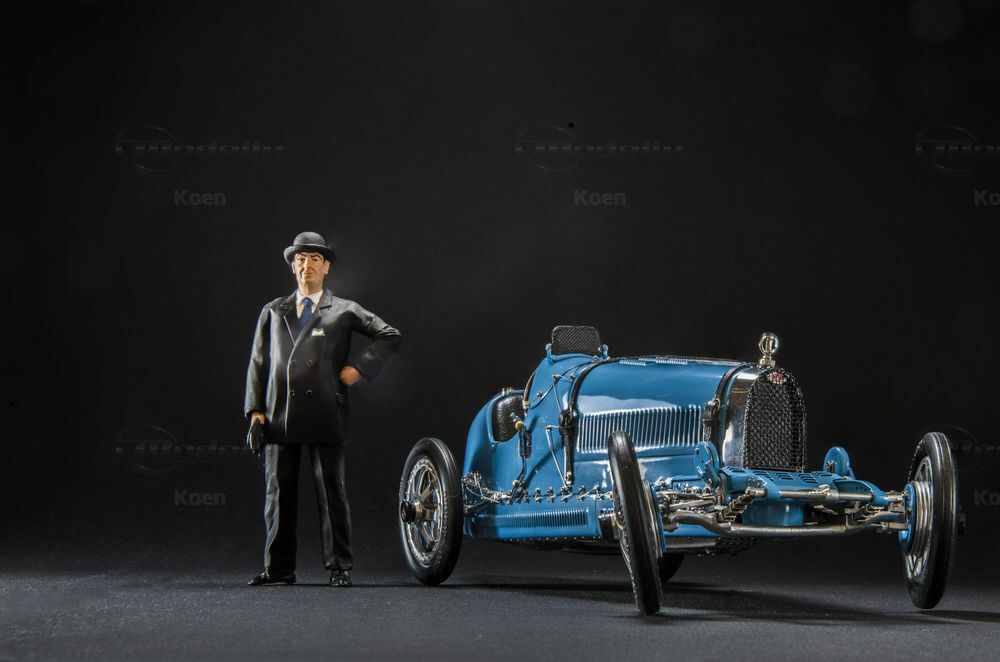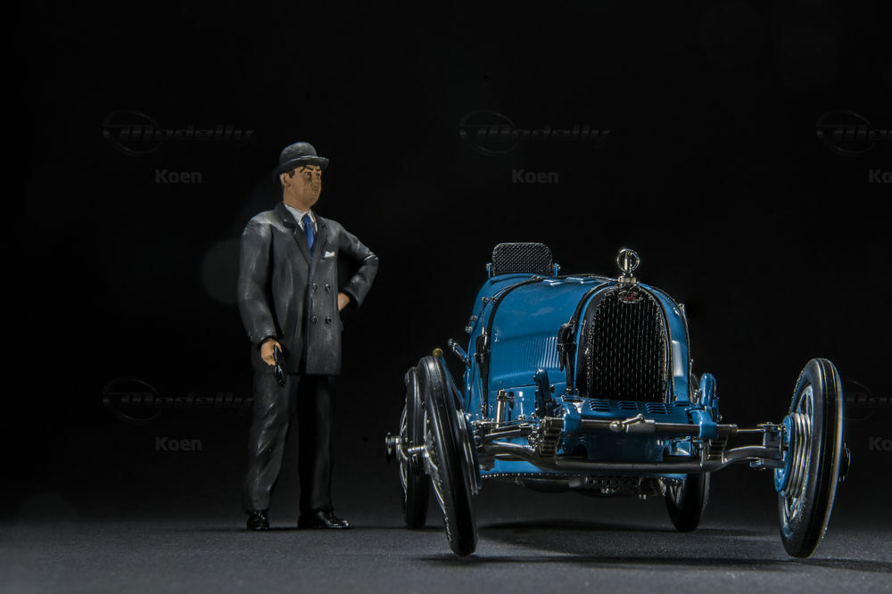 Allerdings hatten auch die sogenannten Herrenfahrer, die Bugattis Fahrzeuge lenkten, ihr Flair und ihre ganz besondere Ausstrahlung. Ob Grafen, Gigolos, Lebenskünstler oder Glücksritter: Meistens waren die Männer, die hinter dem Steuer Platz nahmen, unendlich reich. Sie bewegten sich in einer Welt geprägt von Luxus, ausschweifenden Siegesfeiern, aufsehenerregenden Liebesaffären, kostspieliger Wetten - und dem Spiel mit dem Tod. Lassen Sie sich von diesem Modell in die Welt der Goldenen Zwanziger Jahre entführen. In die Welt des Ästheten Bugatti mit seinem feinen Gespür für außergewöhnliches Design und höchste Eleganz.