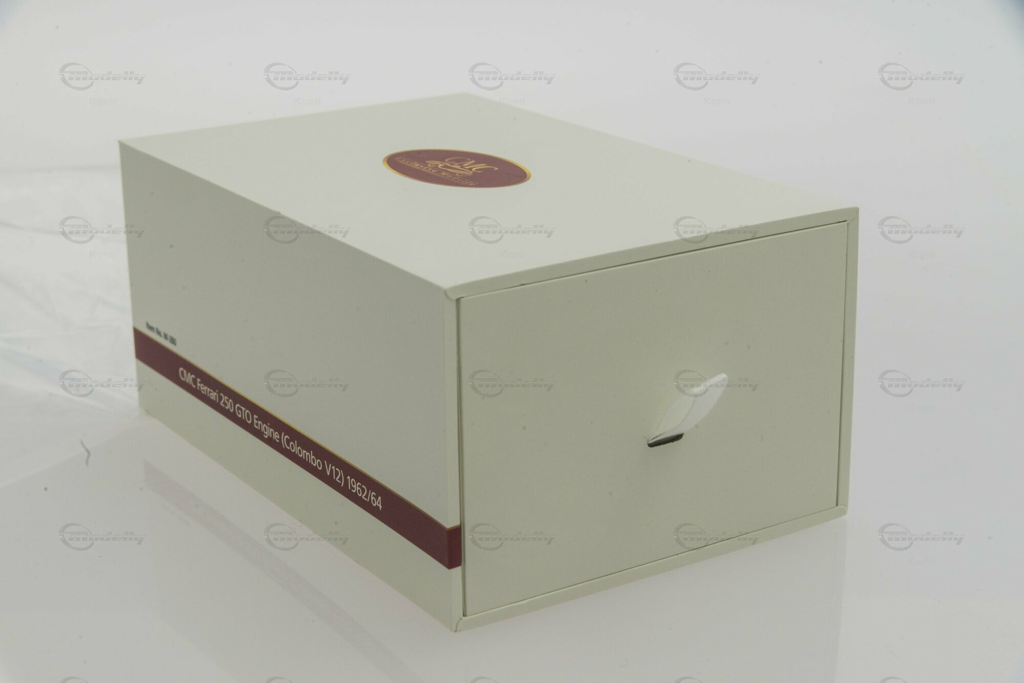 The 1/18 scale model car showcased here is an accurate replica of the Ferrari 250 GTO produced by CMC. This model car is crafted from diecast material, ensuring remarkable detail accuracy and durability. The meticulously replicated Colombo V12 engine, displayed in a special showcase, is particularly noteworthy. The precision and craftsmanship put into this model make it a standout piece for any collection. It is a collector's item from Modelly member "Koen."