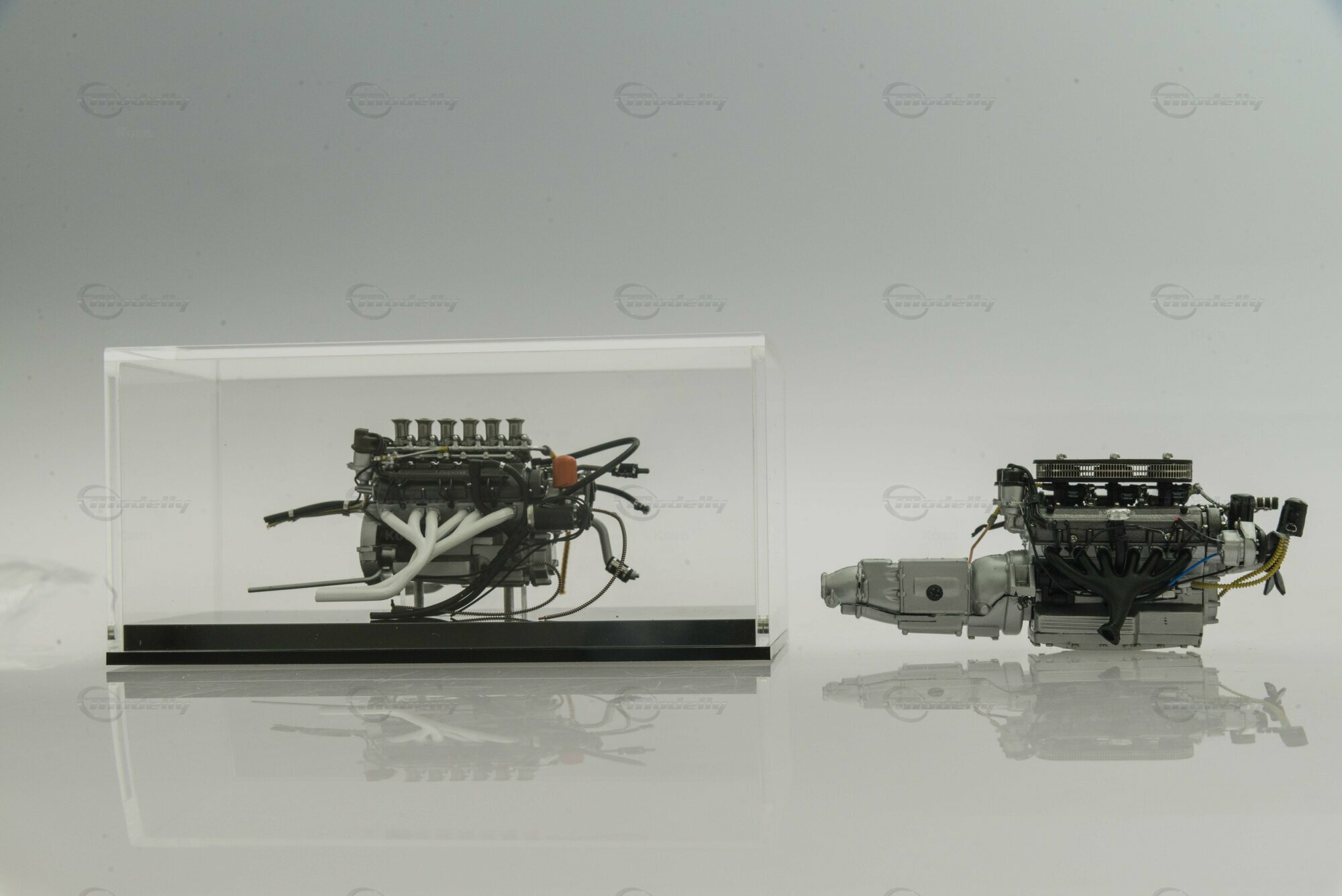 The 1/18 scale allows for the faithful representation of many details of the original car. This is evident in the precise reproduction of the Colombo V12 engine, which is showcased in all its facets in the CMC model. The engine becomes a real eye-catcher in the display case. The clean lines and sophisticated technology are perfectly highlighted in this manner. This model car deserves its place in any high-quality model car collection.