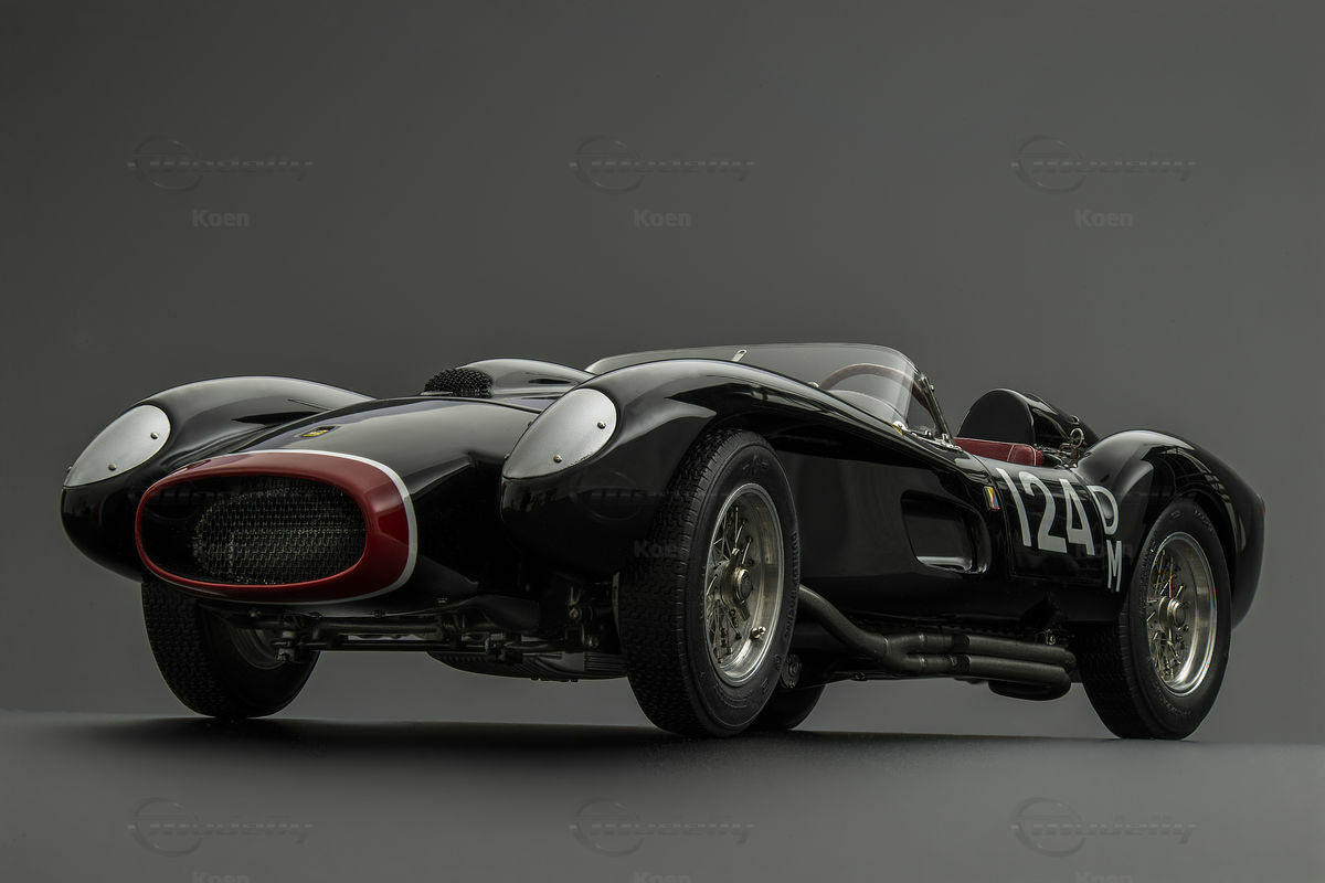 Perfekt restauriert, mit tiefschwarzer Lackierung und einer auffallend rot-weißen "Banderole" an der Nase wurde dieses Traumauto mit der Startnummer DM124 bei einer im Mai 2009 in Maranello/Italien veranstalteten Auktion unter dem Motto "Leggenda e Passione" zu einem bis dahin unvorstellbaren Höchstpreis von 9,02 Millionen Euro an einen neuen Besitzer veräußert. Gibt es einen besseren Beweis dafür, dass die Faszination des Fahrzeugs bis heute ungebrochen ist ?