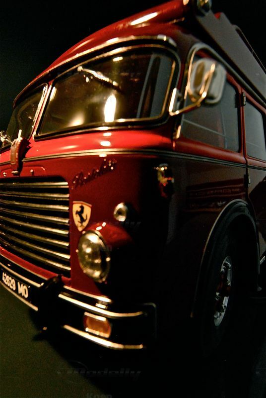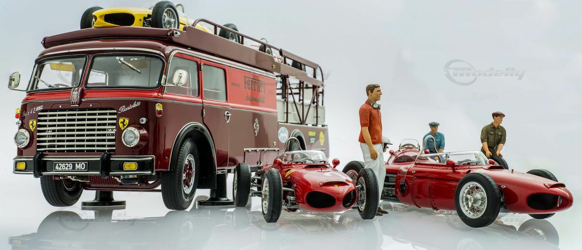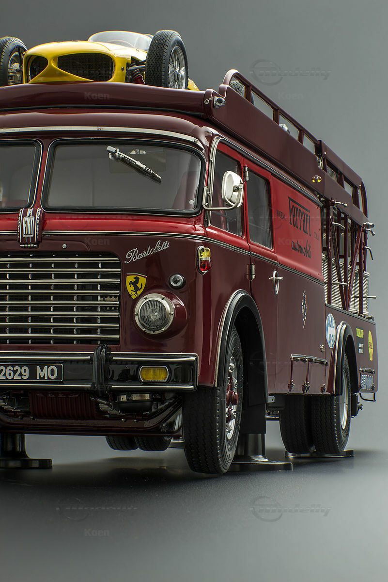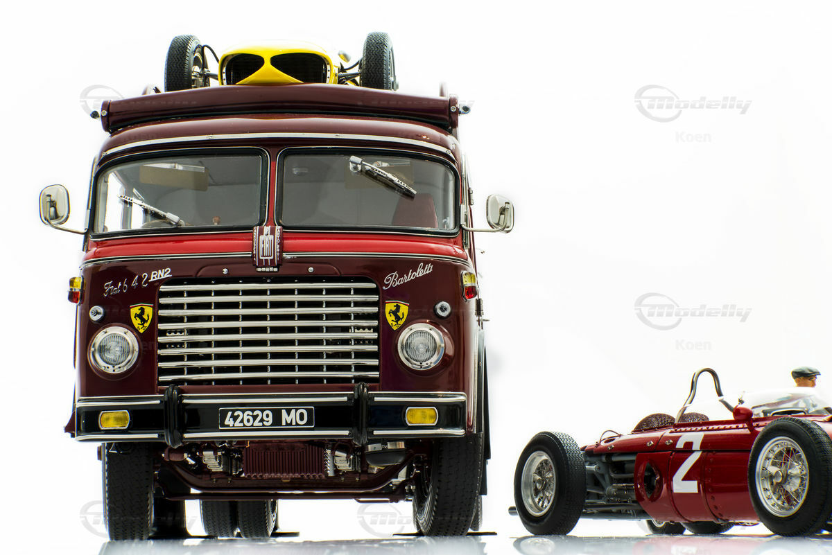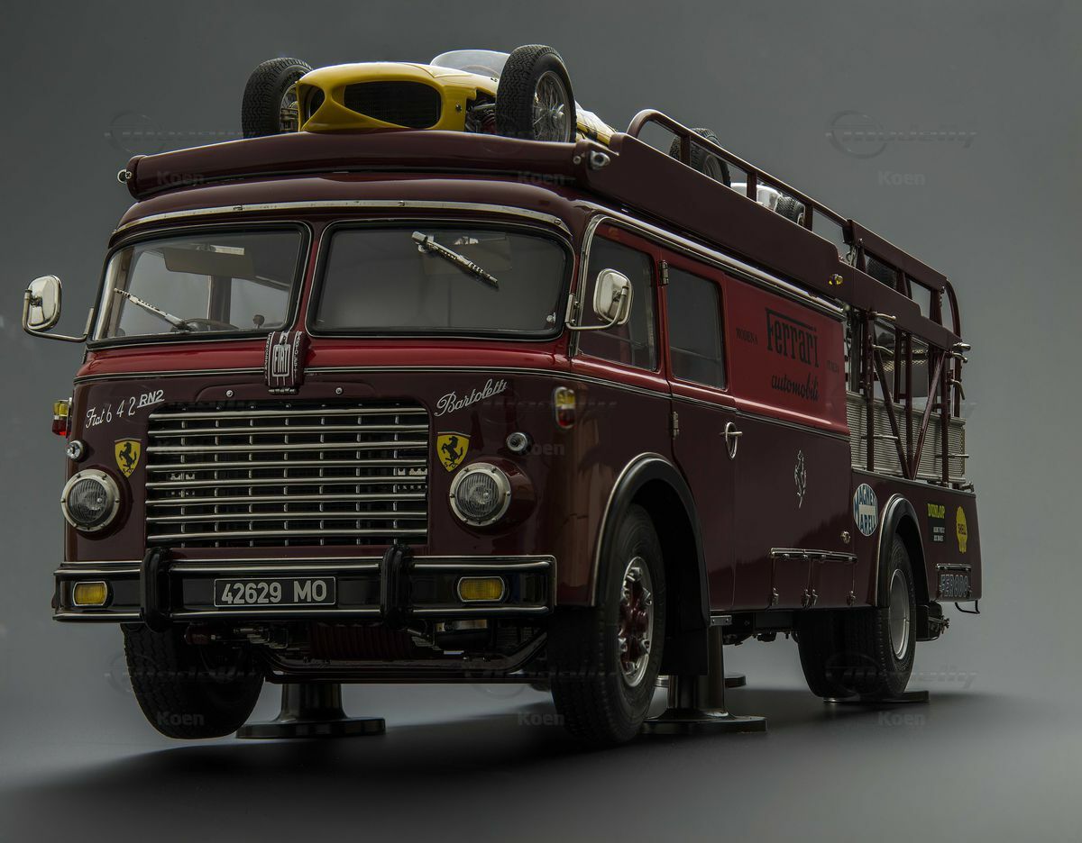 Die fünfziger und sechsziger Jahre waren die Blütezeit der heute immer noch hoch angesehenen - oder wieder neu entdeckten - Renntransporter. Die weitgehend baugleichen Fahrzeuge der Scuderia Ferrari und Maserati gehörten wohl zu den bekanntesten und technisch ausgereiftesten Renntransportern jener Tage. Als Basis diente ein Bus-Chassis von Fiat - der Typ Fiat 642 RN2, dem später der leistungsstärkere Fiat 682 RN folgte. Zum Renntransporter für drei Boliden wurde er durch einen offenen Aufbau des Karosseriebauers Bartoletti. Die mit einem 92 PS starken Sechszylinder-Diesel-Reihenmotor ausgestatteten "Lastesel" der Rennställe unterschieden sich beim ersten Hinsehen eigentlich nur durch ihre Außenlackierung und die Werbeaufschriften. Erst auf den zweiten Blick stellte man fest, dass der Maserati-Renntransporter - CMC arbeitet gerade am Miniatur-Replik - sich doch in manchem vom Ferrari-Bruder unterscheidet.