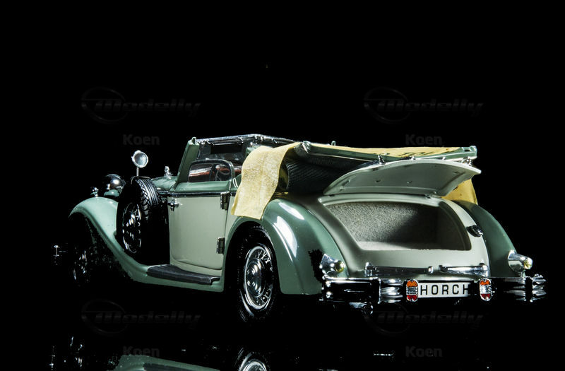Den legendären Typ 853, damals ein exquisites Luxusfahrzeug hat CMC als geschlossenes oder offenes Cabriolet in rot und weinrot mit goldfarbener Zierlinie und handbemalten Weißwandreifen im Maßstab 1:24 nachgebaut - originalgetreu bis ins kleinste Detail.