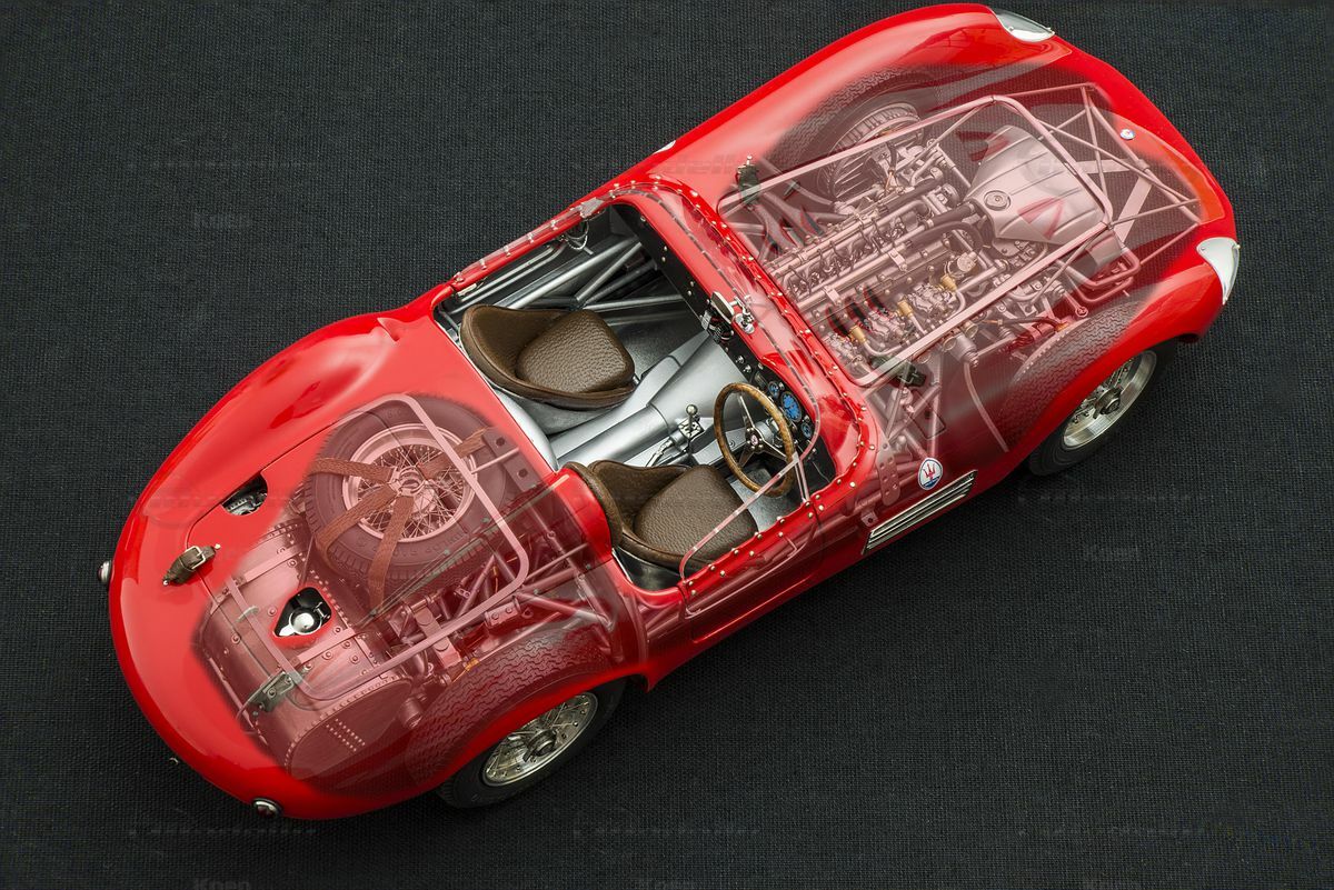 Der Maserati 300 S, mit vielen Komponenten des erfolgreichen Formel 1-Rennwagens 250 F ausgestattet, erwarb sich sehr schnell den Ruf ein sehr guter Sportwagen zu sein. Zudem hat ihm die Carrozzeria Fantuzzi noch ein wunderschönes Blechkleid verpasst, so daß auch die Optik gestimmt hat. Zahlreiche private Rennteams und berühmte Fahrer der damaligen Zeit feierten beeindruckende Erfolge mit dem 300 S und seinem bärenstarken 260 PS Reihen-Sechszylinder Motor.
