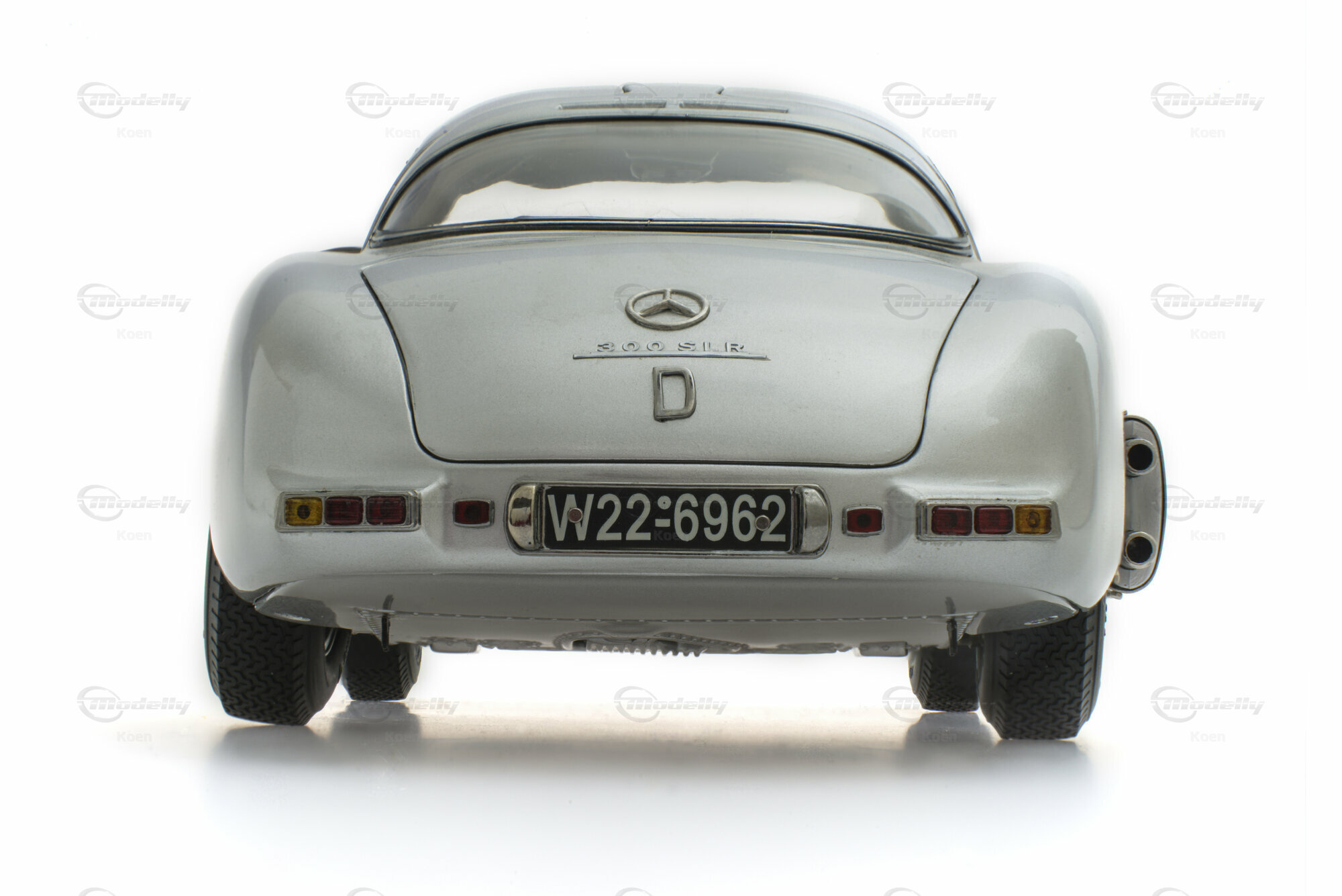 Gelungene Heckpartie mit Mercedes-Stern, 300-SLR-Schriftzug und D-Schild