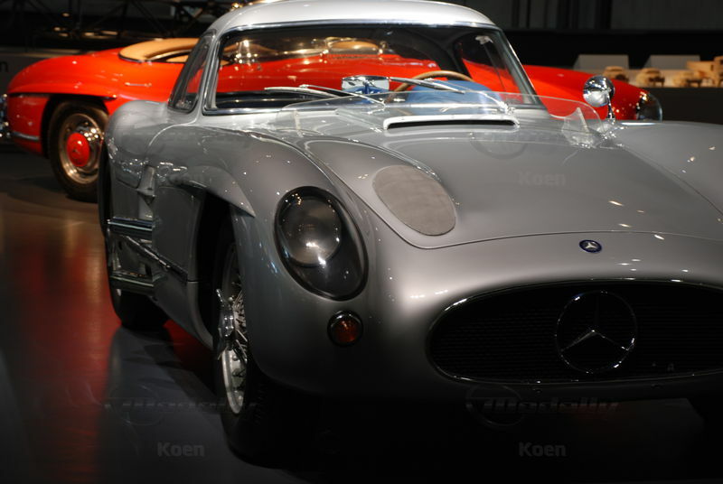 Kein Wunder: Unter dem Blechkleid findet sich ein auf drei Liter vergrößerter Formel-1-Motor. Denn eigentlich wurden die beiden Coupés für den Renneinsatz gebaut; sie sollten bevorzugt bei Langstreckenrennen eingesetzt werden, wie z.B. bei der Mille Miglia und 1956 beim 24-Stunden-Rennen von Le Mans. Doch weil Daimler-Benz sich Ende 1955 überraschend vom Rennsport zurückzog, kam alles anders.