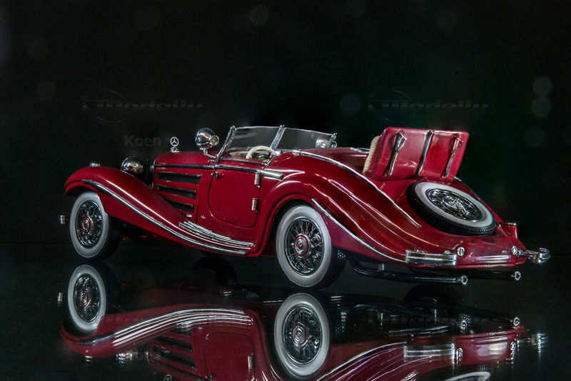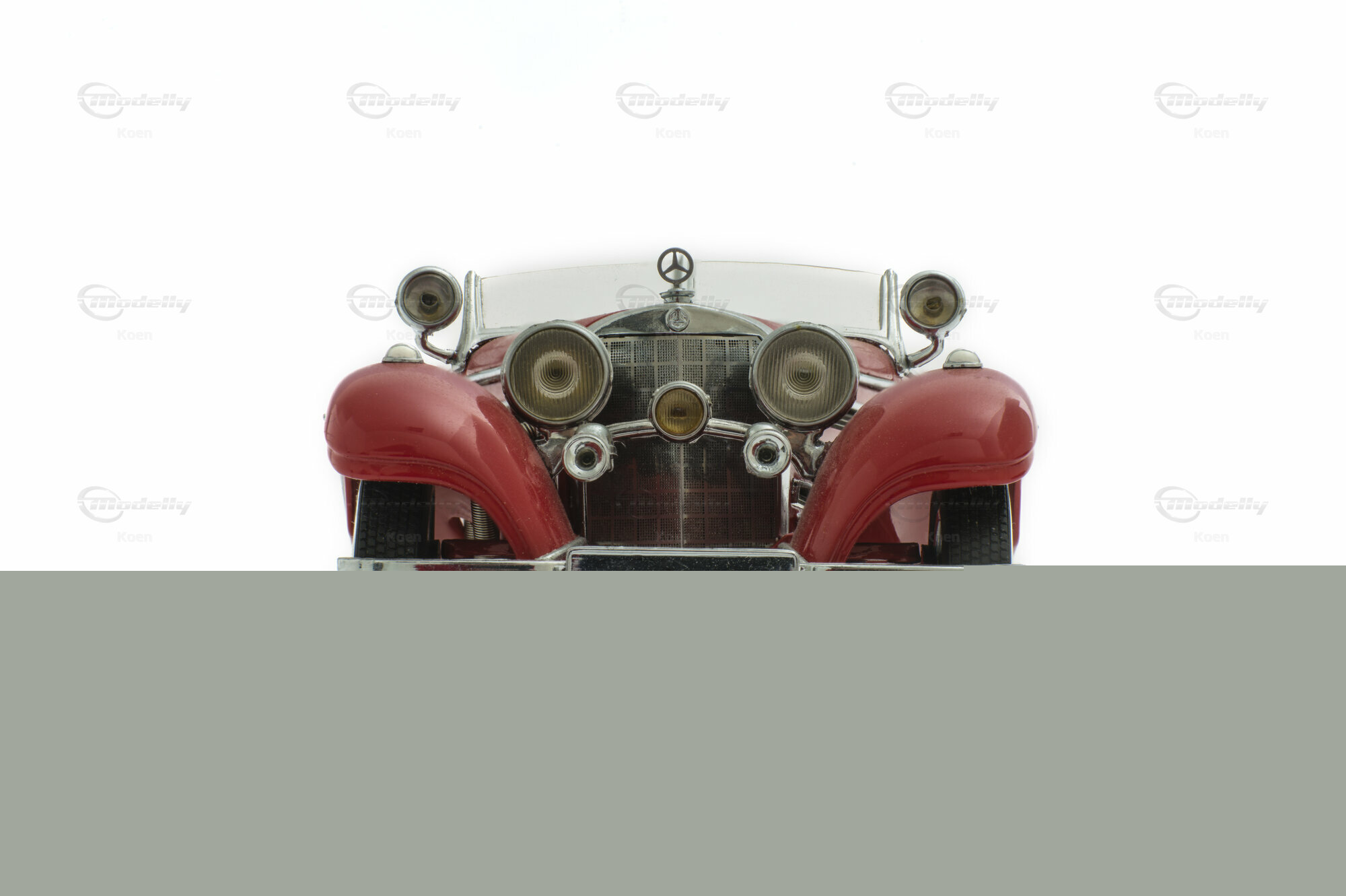 The model car shown here in 1/24 scale, made by CMC, is a faithful reproduction of the Mercedes-Benz 500K Special Roadster. The model showcases high precision and attention to detail. Remarkable details include the fine wire-spoke wheels, the authentic reproduction of the radiator grille, as well as the accurately shaped headlights and mirrors. Additionally, the spare tire at the rear and the distinctive bumpers are faithfully replicated. The model's paint job also reflects the style of the era – the red bodywork combined with the shiny chrome elements vividly showcases the elegance of the original vehicle. This high-quality miniature is part of Modelly member "Koen’s" collection and represents the dedication and care that CMC puts into crafting their models.