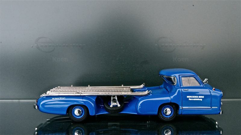 1954 entstand in der Daimler-Benz Versuchsabteilung ein von Hand gefertigtes Unikat: der Mercedes-Benz Renntransporter. Mit seiner tiefblauen Daimler-Benz-Lackierung, den weich geschwungenen Formen der Karosserie und einer Höchstgeschwindigkeit von 170 km/h erregte "das blaue Wunder" ebenso viel Aufmerksamkeit wie die Rennwagen W 196 und 300 SLR auf seiner Ladefläche.