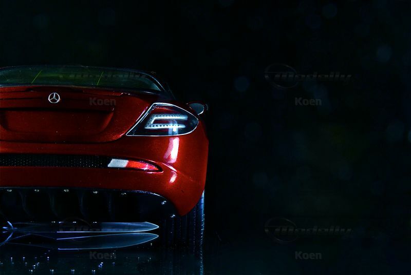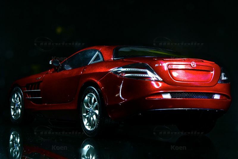 Detaillierte Nachbildung der Bi-Xenonscheinwerfer und der Heckleuchten mit von Hand eingesetzten LED-Imitaten als Leuchtdioden