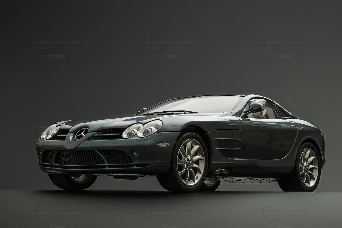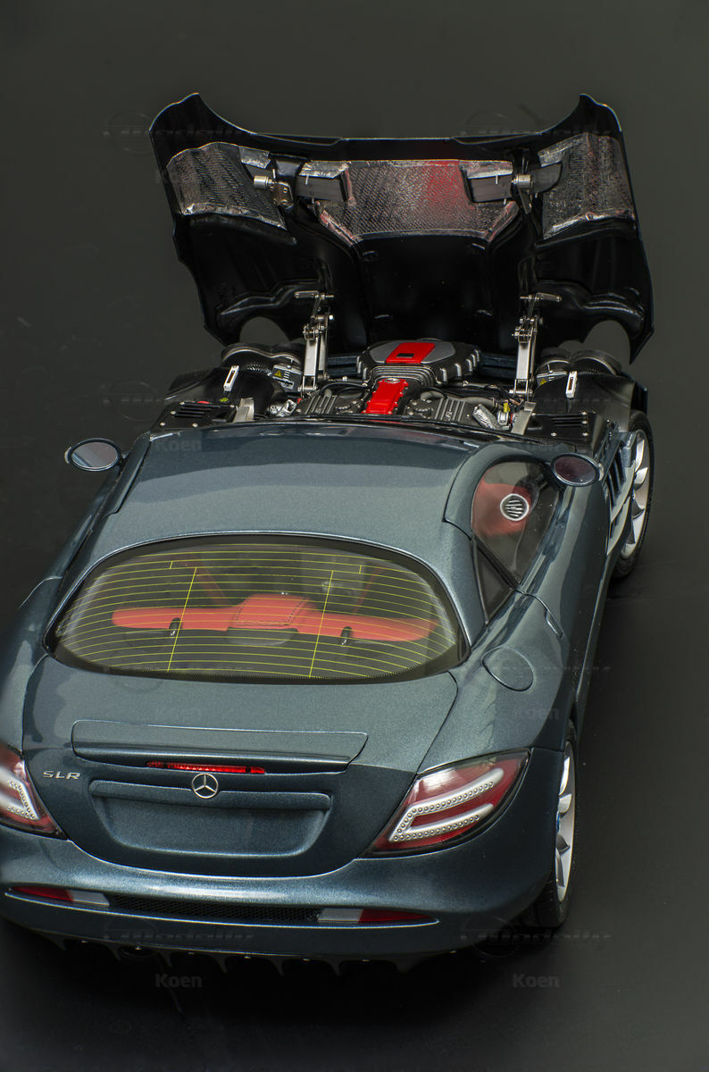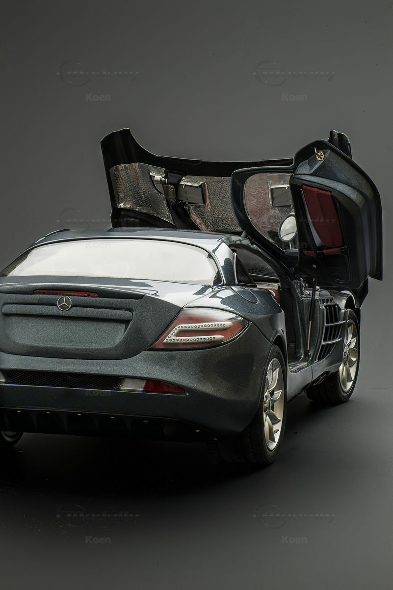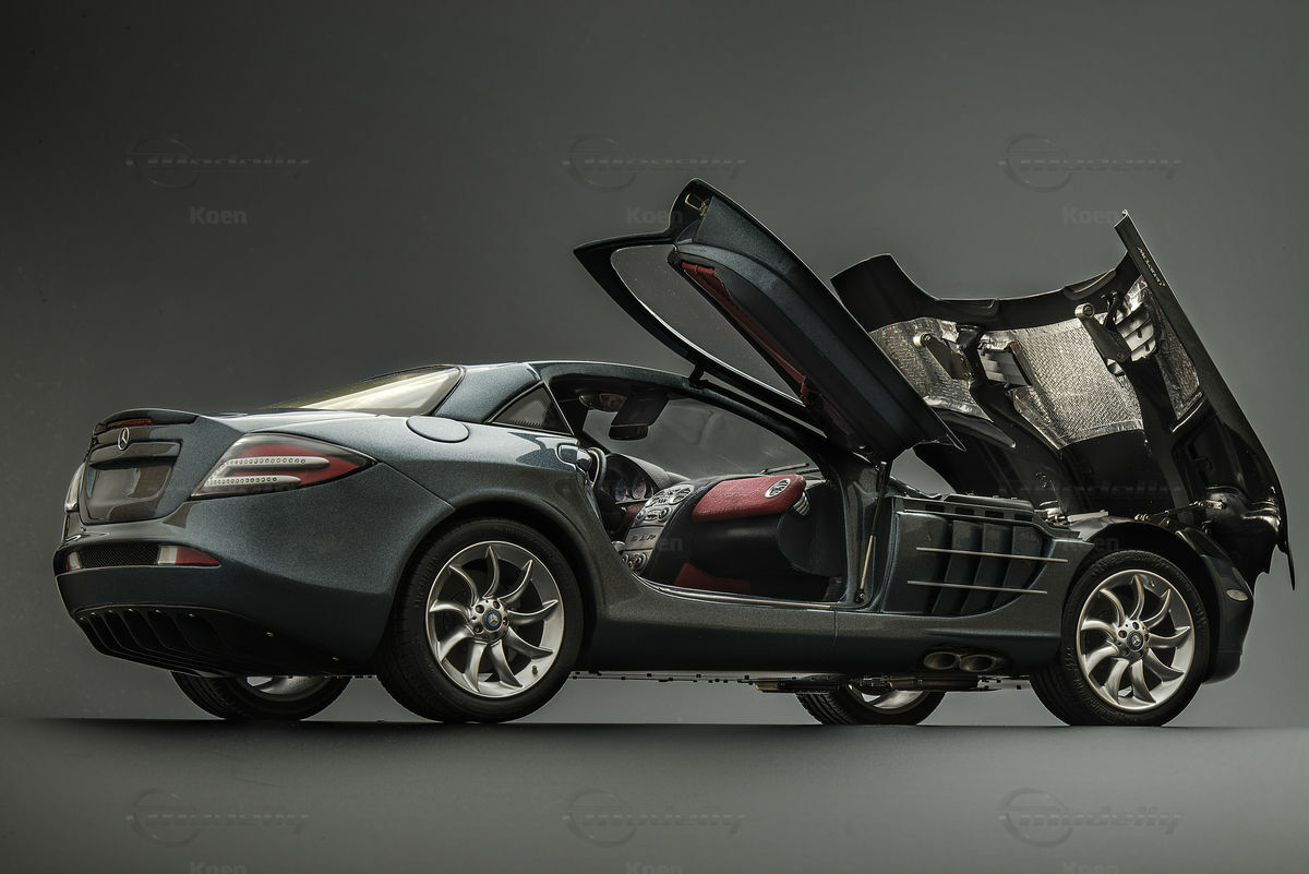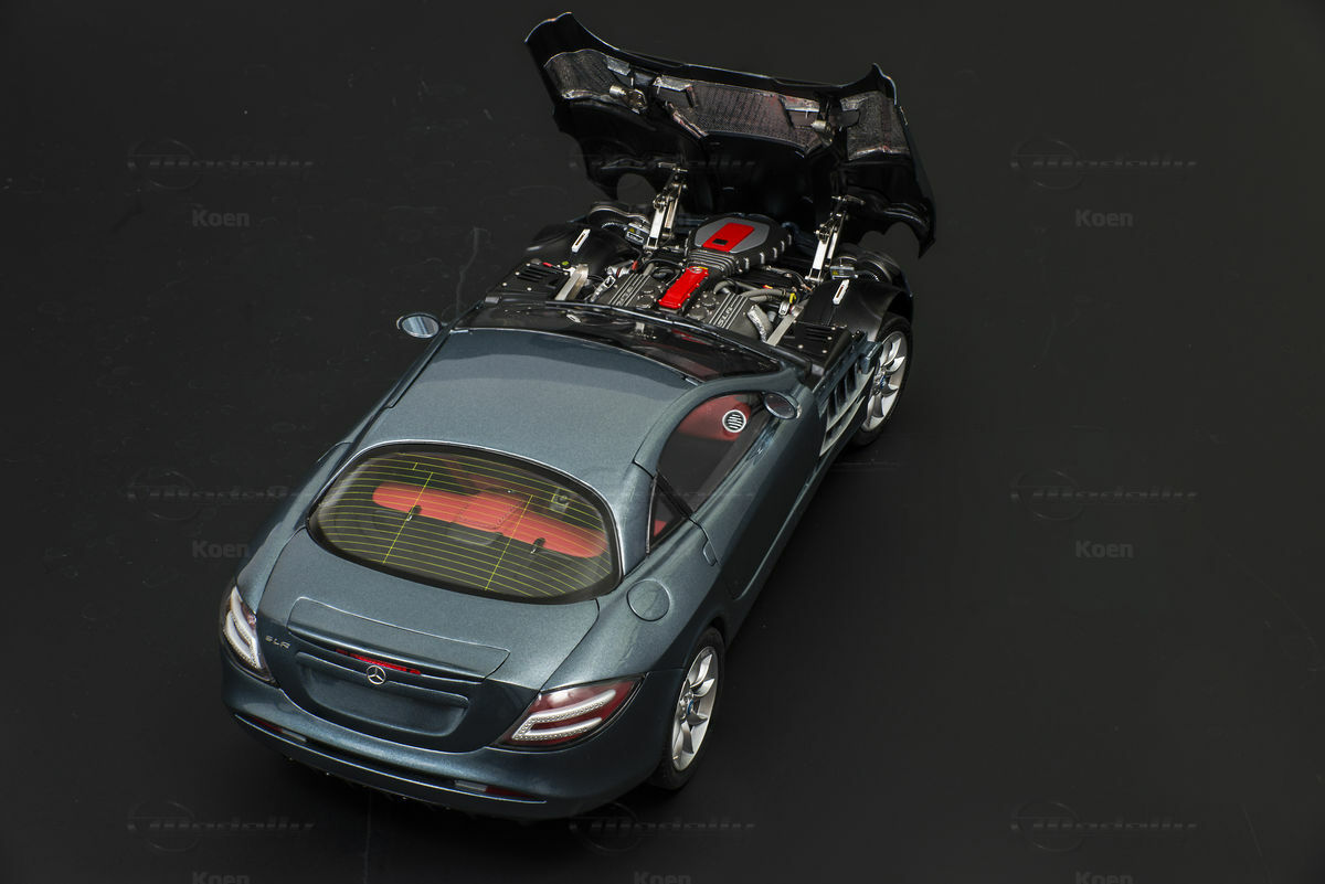 Wissenswert ist dass das CMC-Modell derzeit gegen Aufpreis von die Eigener einer SLR in die gleiche Ausführung und Farbe als deren 1:1 Fahrzeug bestellt worden konnte. Für uns, "down to earth"-Sammler gab's 2 Standardlackierungen im Programm und 4 Sonderfarben allen in Kombination mit eine die 3 verschiedene Lederfarben für der Innenausstattung: