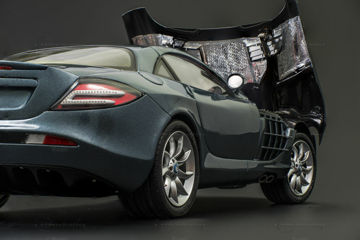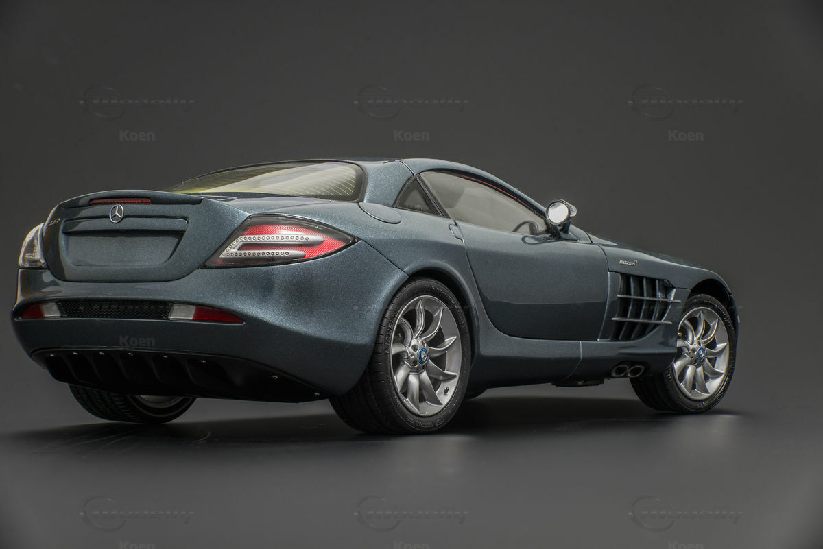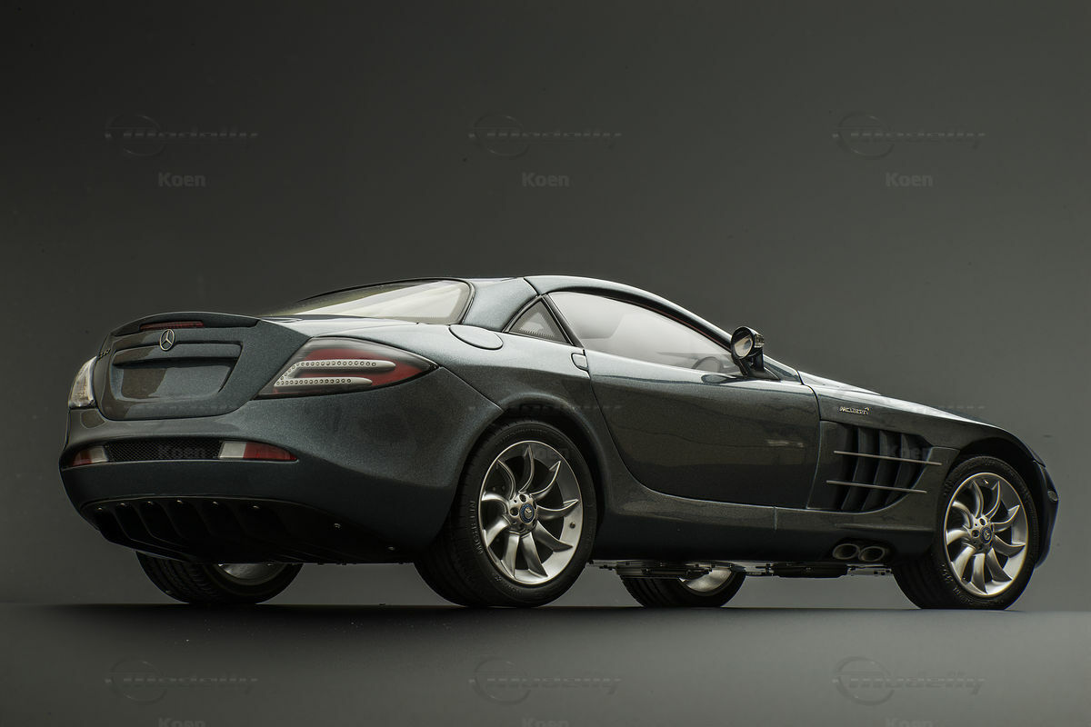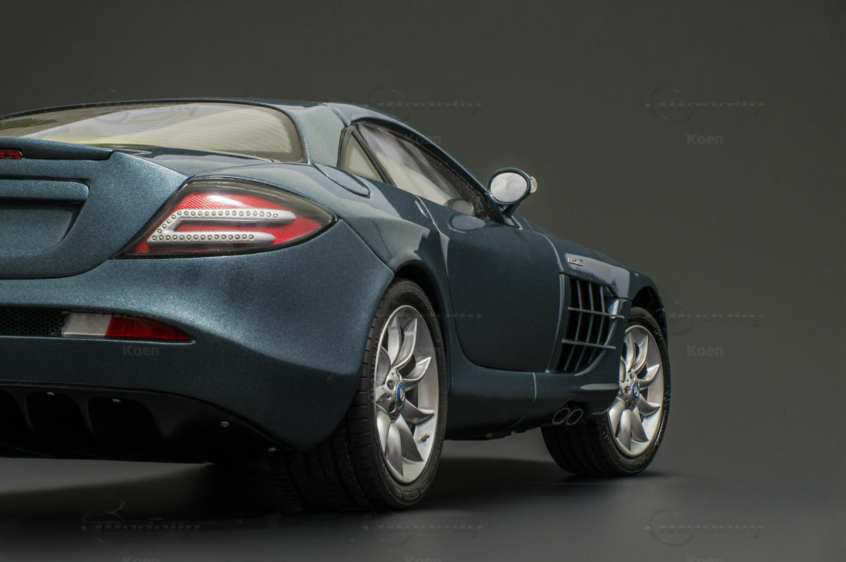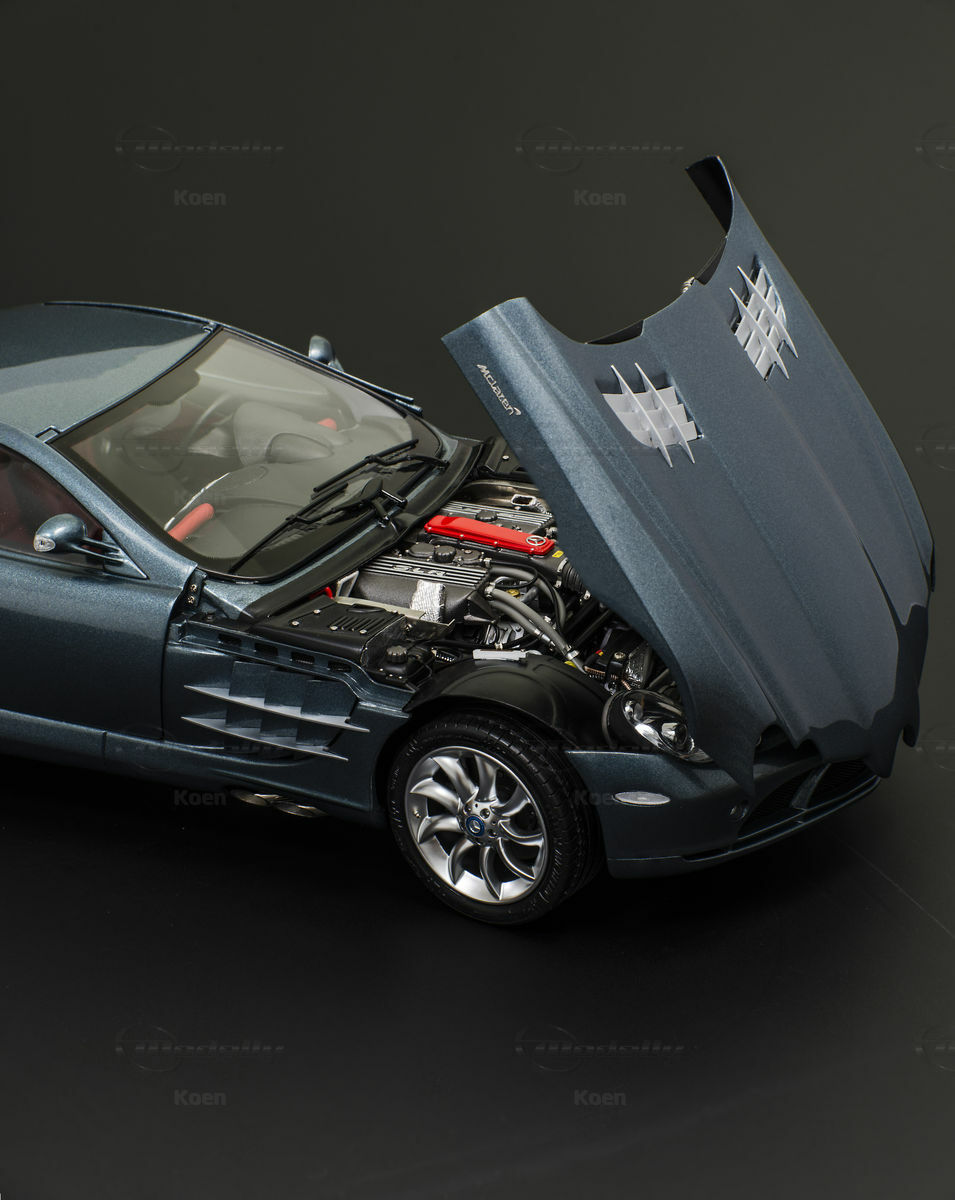 Wissenswert ist dass das CMC-Modell derzeit gegen Aufpreis von die Eigener einer SLR in die gleiche Ausführung und Farbe als deren 1:1 Fahrzeug bestellt worden konnte. Für uns, "down to earth"-Sammler gab's 2 Standardlackierungen im Programm und 4 Sonderfarben allen in Kombination mit eine die 3 verschiedene Lederfarben für der Innenausstattung: